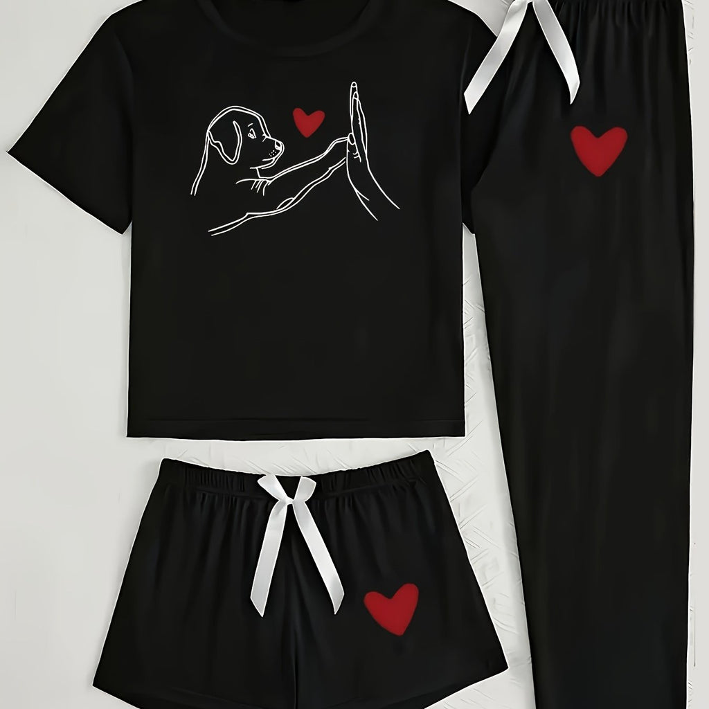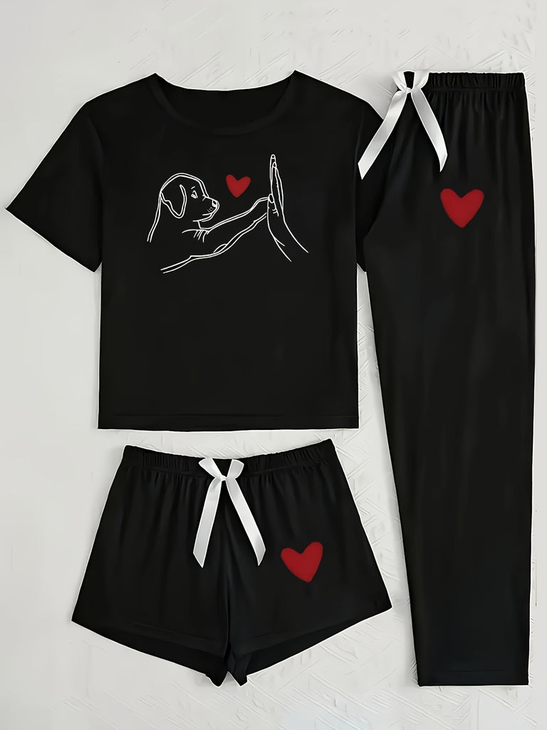 Dog and for Man High Five Super Loving Pattern Black Features Fashionable Casual Loose Sleep Comfortable Large Women's Home Clothes 3pcs Set