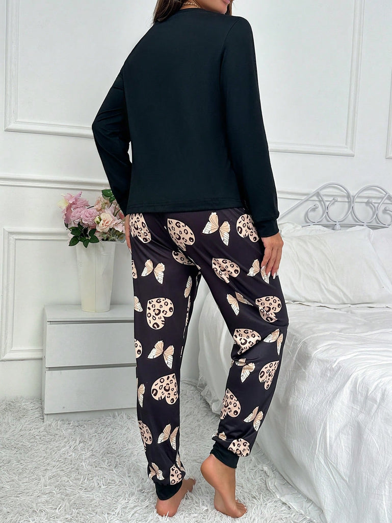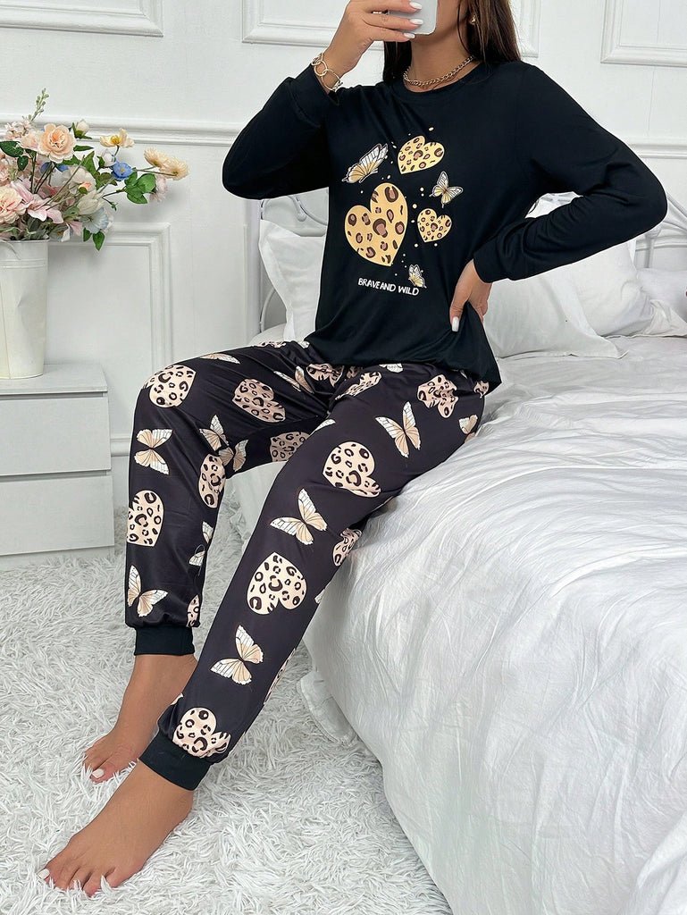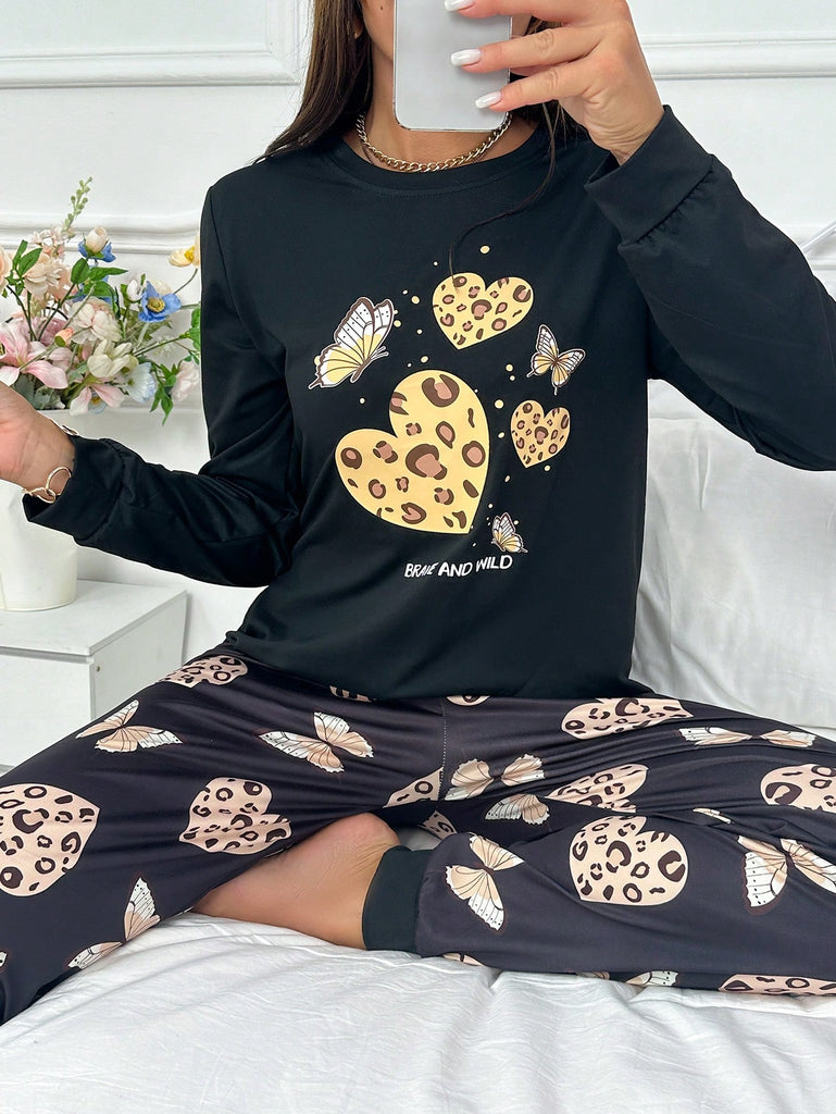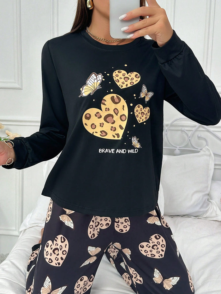 Leopard, Heart, Butterfly Print Long Sleeve Pajamas Set
