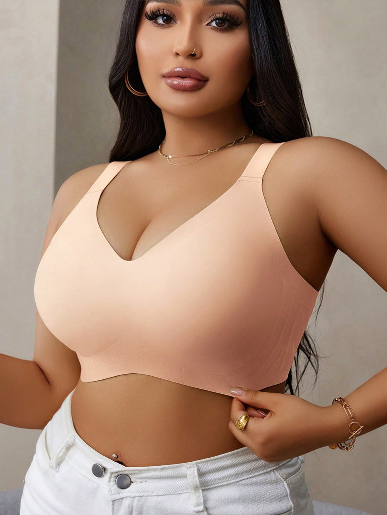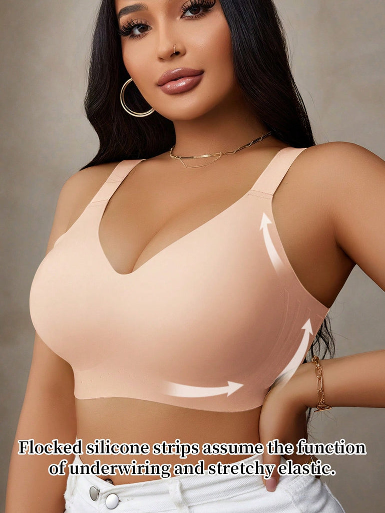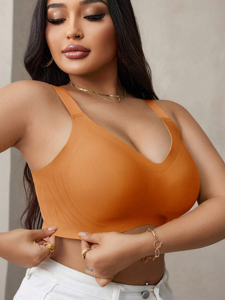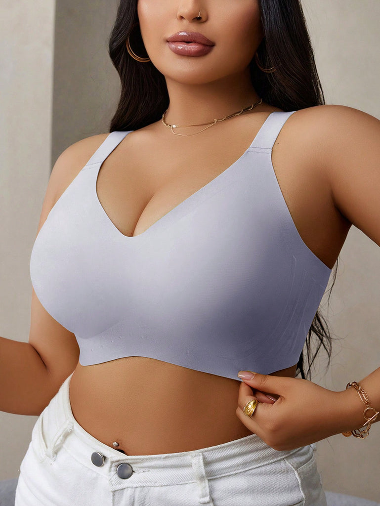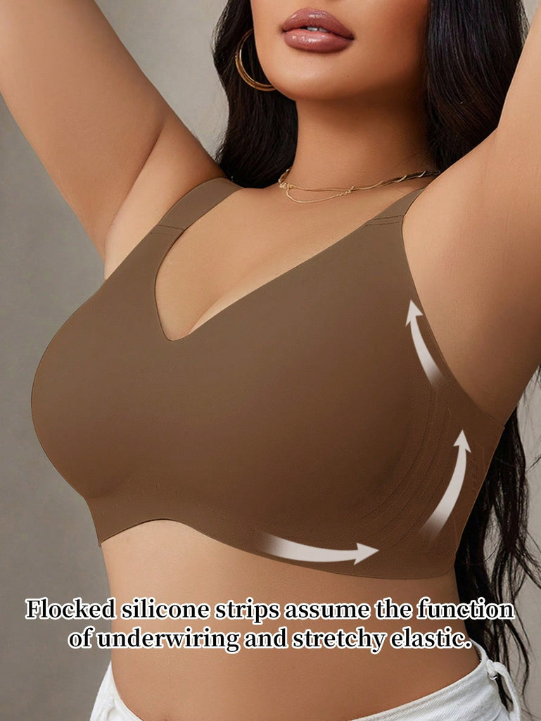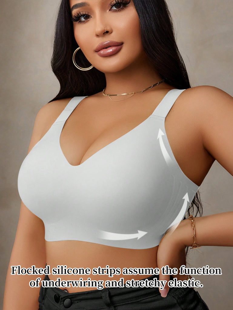 NudeFit Plus Size Women Seamless Jelly Stripe Soft Support Wireless Bra With Molded Cup