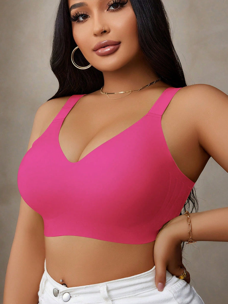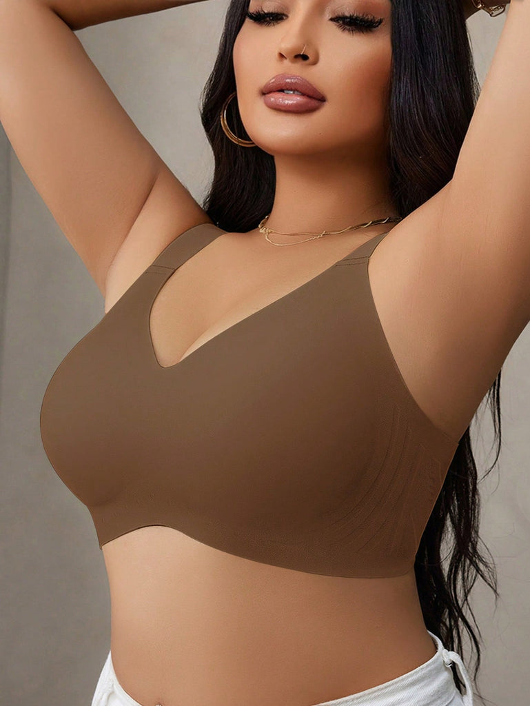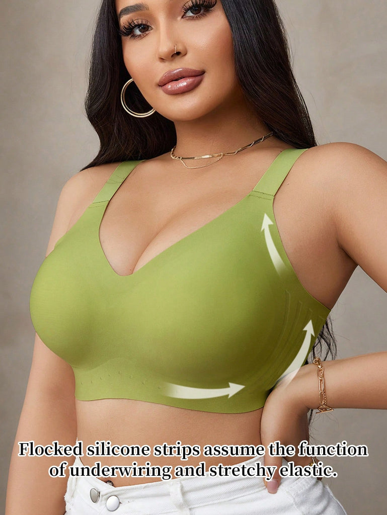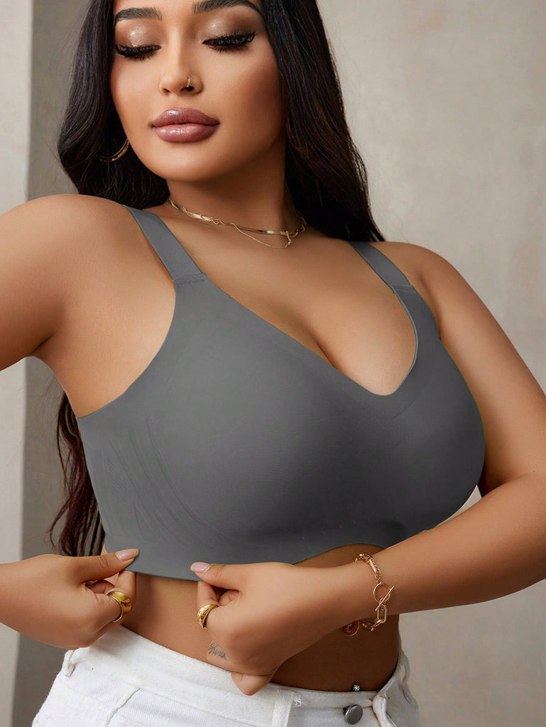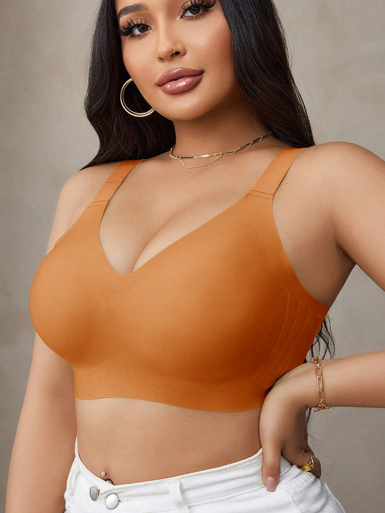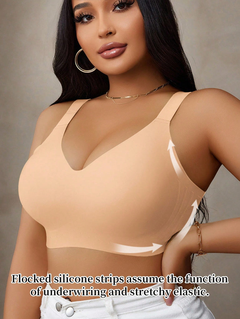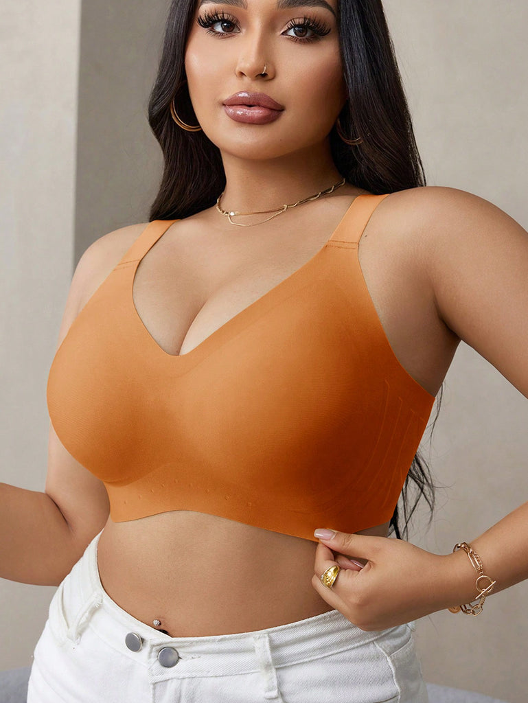NudeFit Plus Size Women Seamless Jelly Stripe Soft Support Wireless Bra With Molded Cup