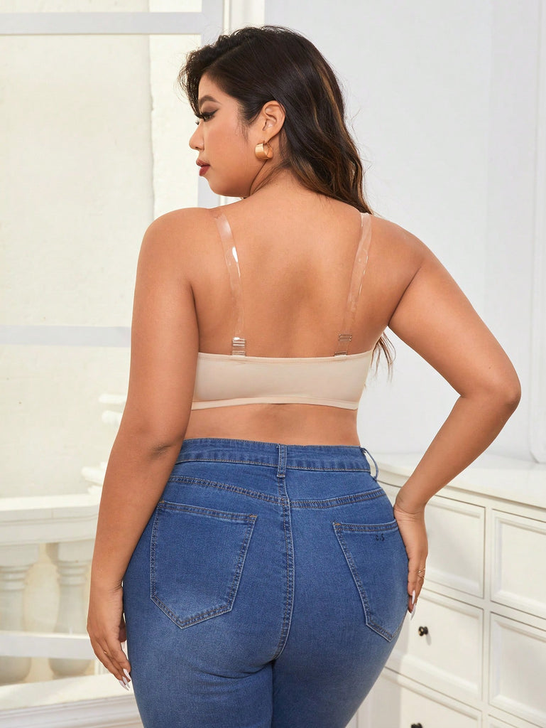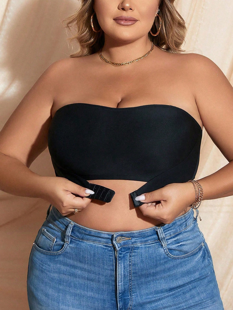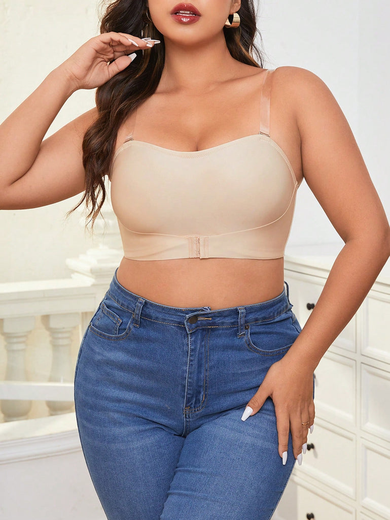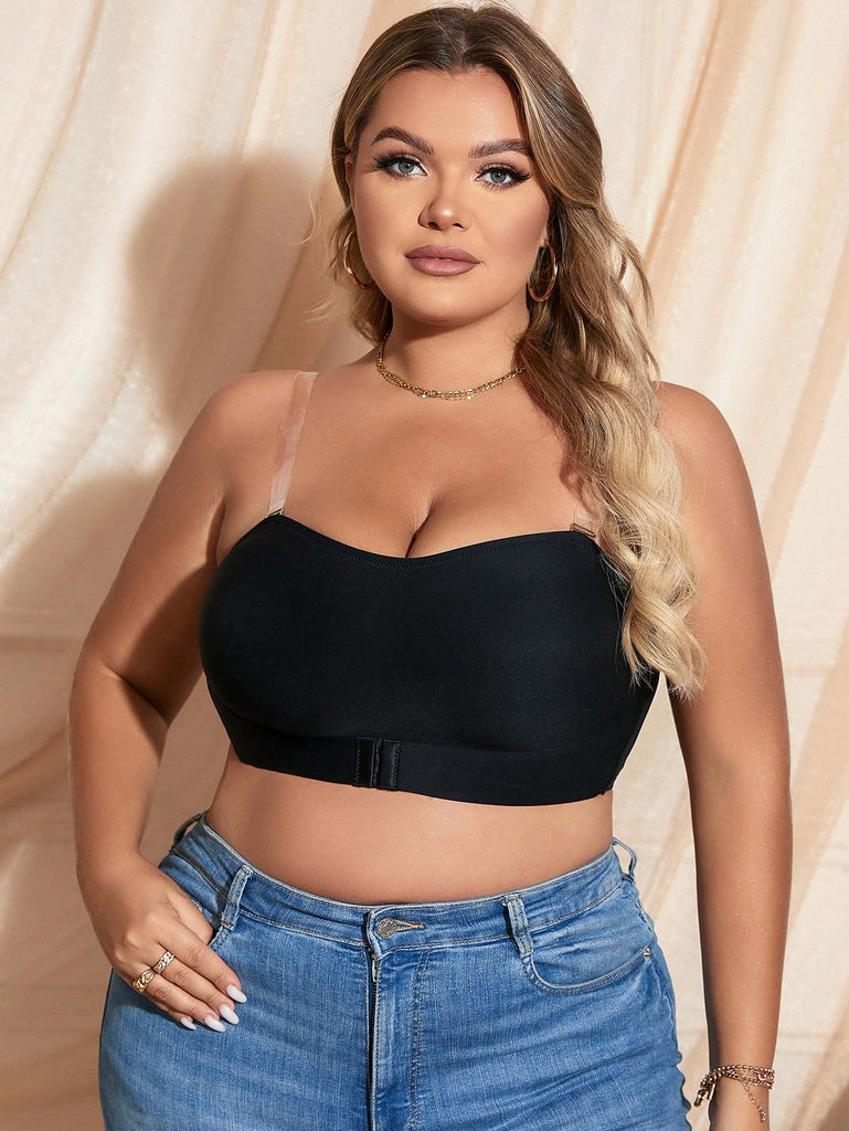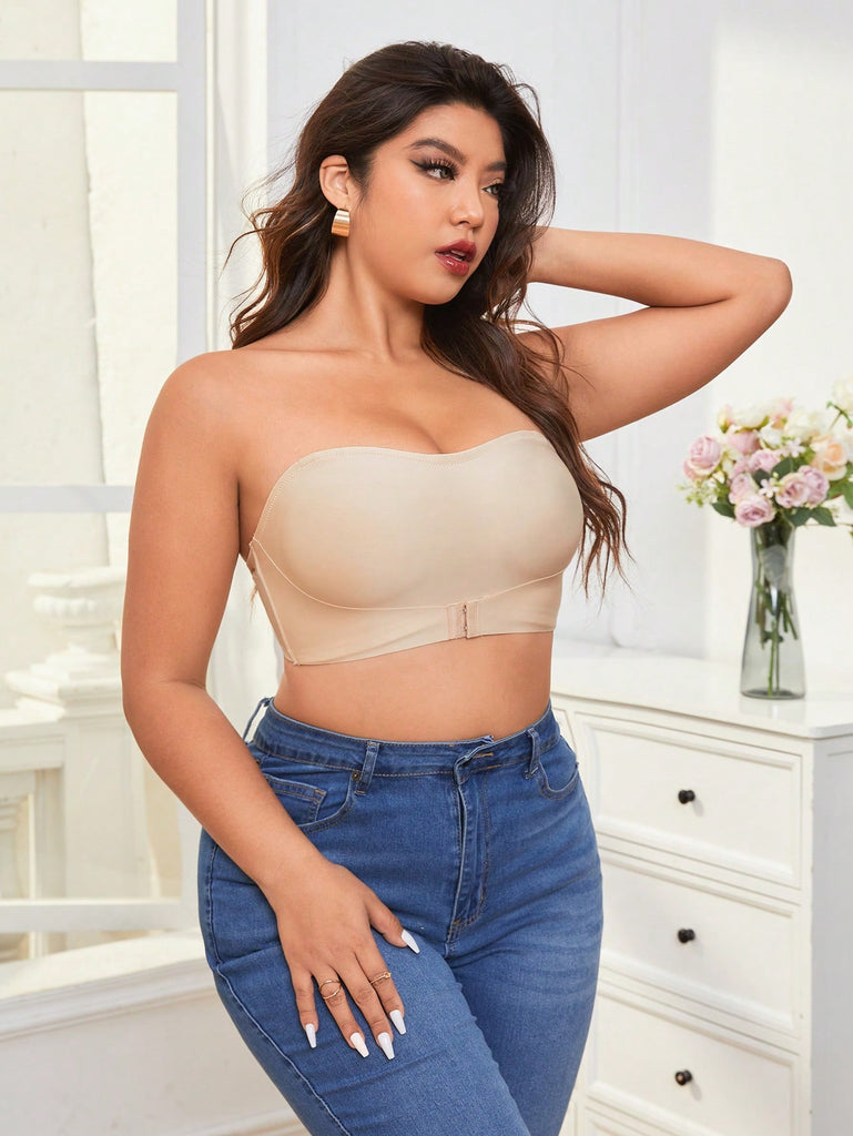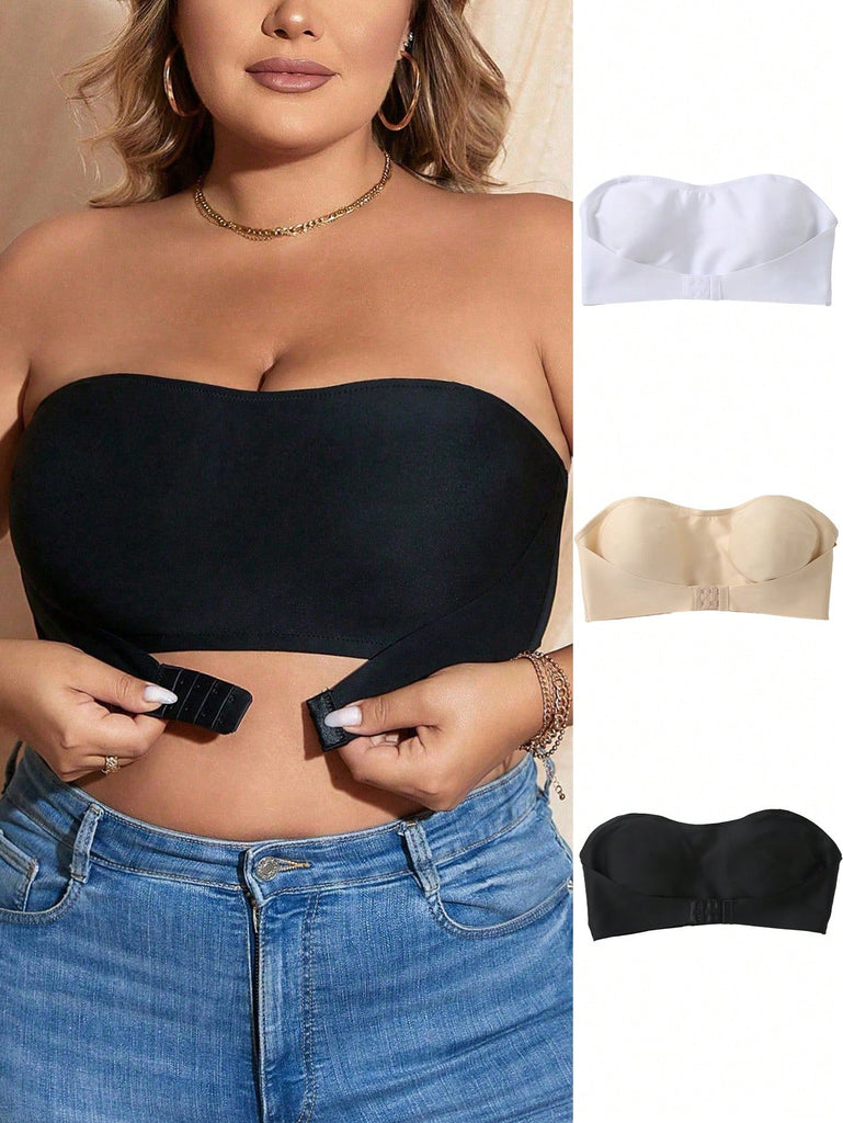 Snug Zone 3pcs/Set Plus Size Strapless Front Closure Lightly Padded Bralette With Anti-Slip Band, Invisible Bustier Bra With Shoulder Strap And Backless Design For Summer