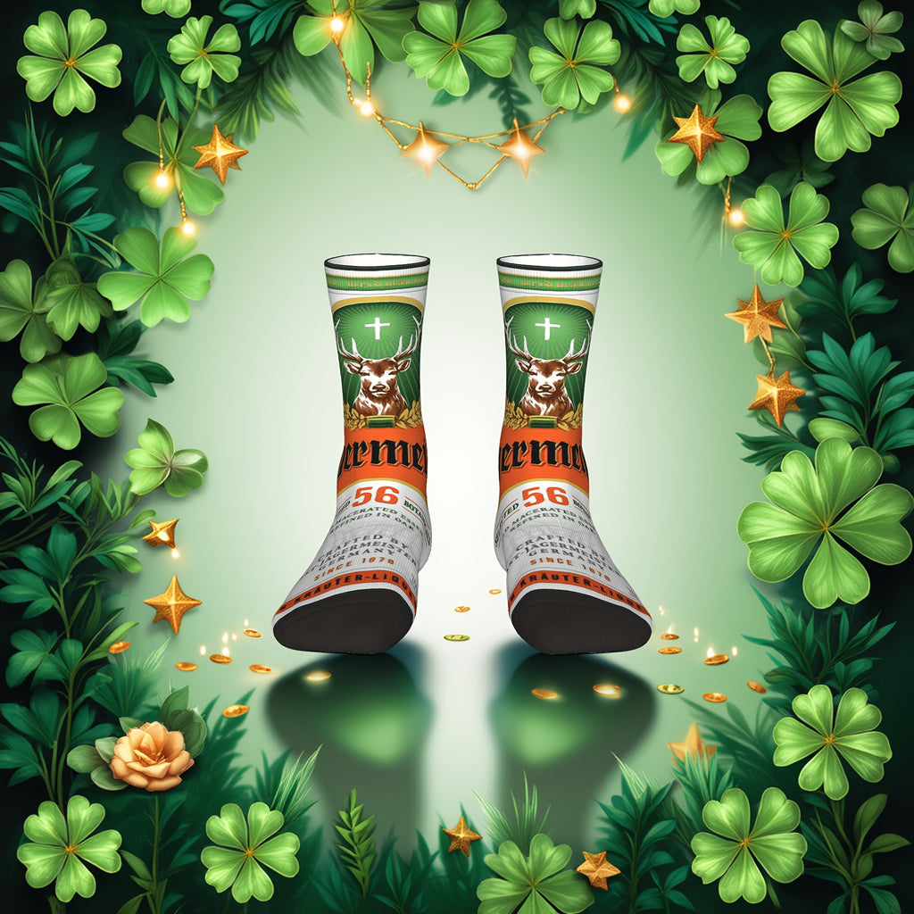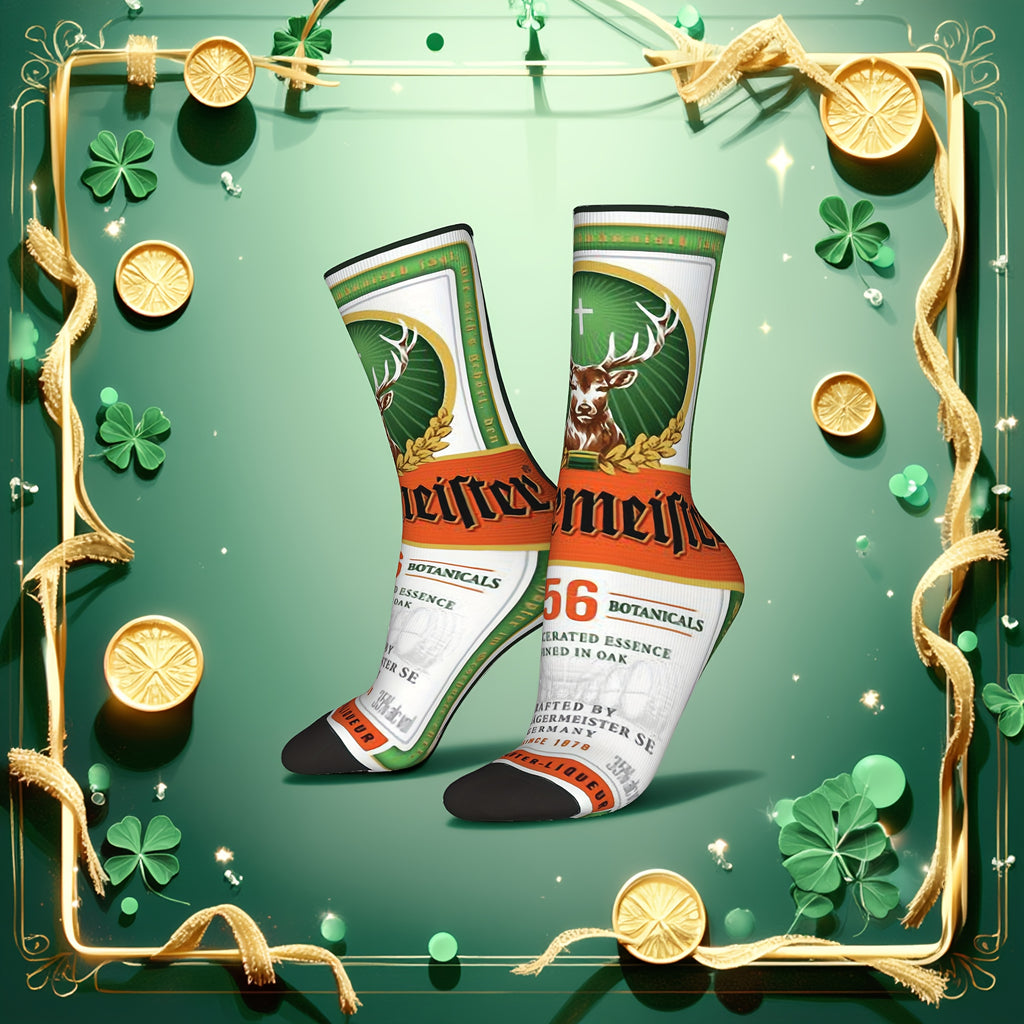 Unisex Deer Head Print Socks - High Elasticity Polyester, All-Season Comfort, Men'S & Women'S Fashion, Novelty Design with "Bavarian Beer" & "Oberschlesien" Graphics, Casual Wear Socks | Playful Sock Design | Knit Texture
