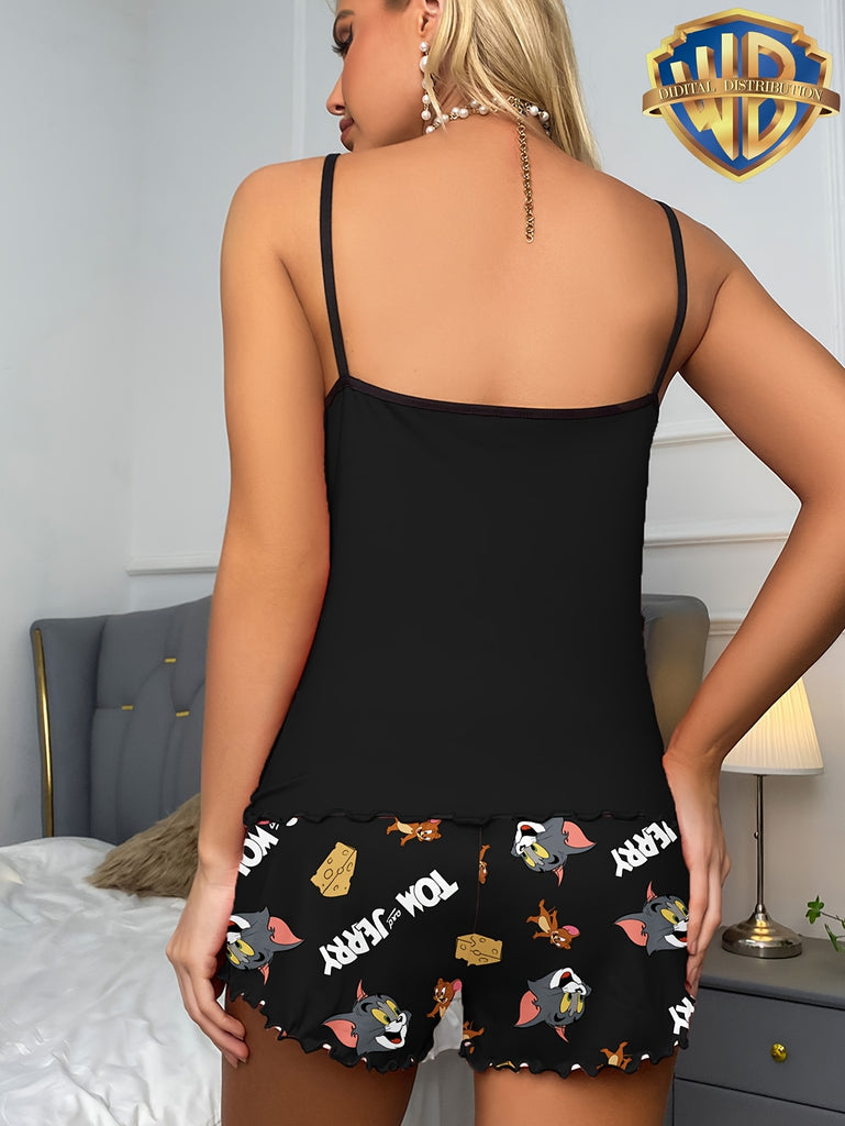 Warner Positioning Cat and Mouse White Letter Print Suspender Shorts Women's Pajama Set