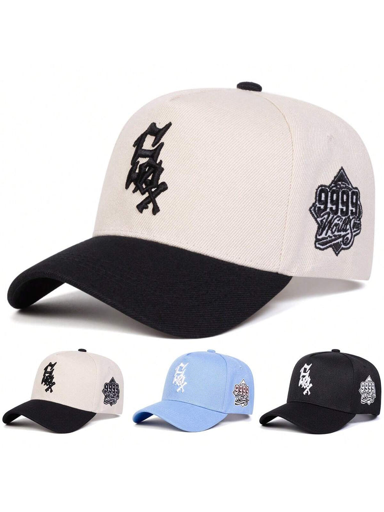1pc Men's Letter Embroidery Baseball Cap, Adjustable Outdoor Sports Sun Protection Casual Five-Panel Hat, Suitable For Spring/Autumn Travel, Beach, Party