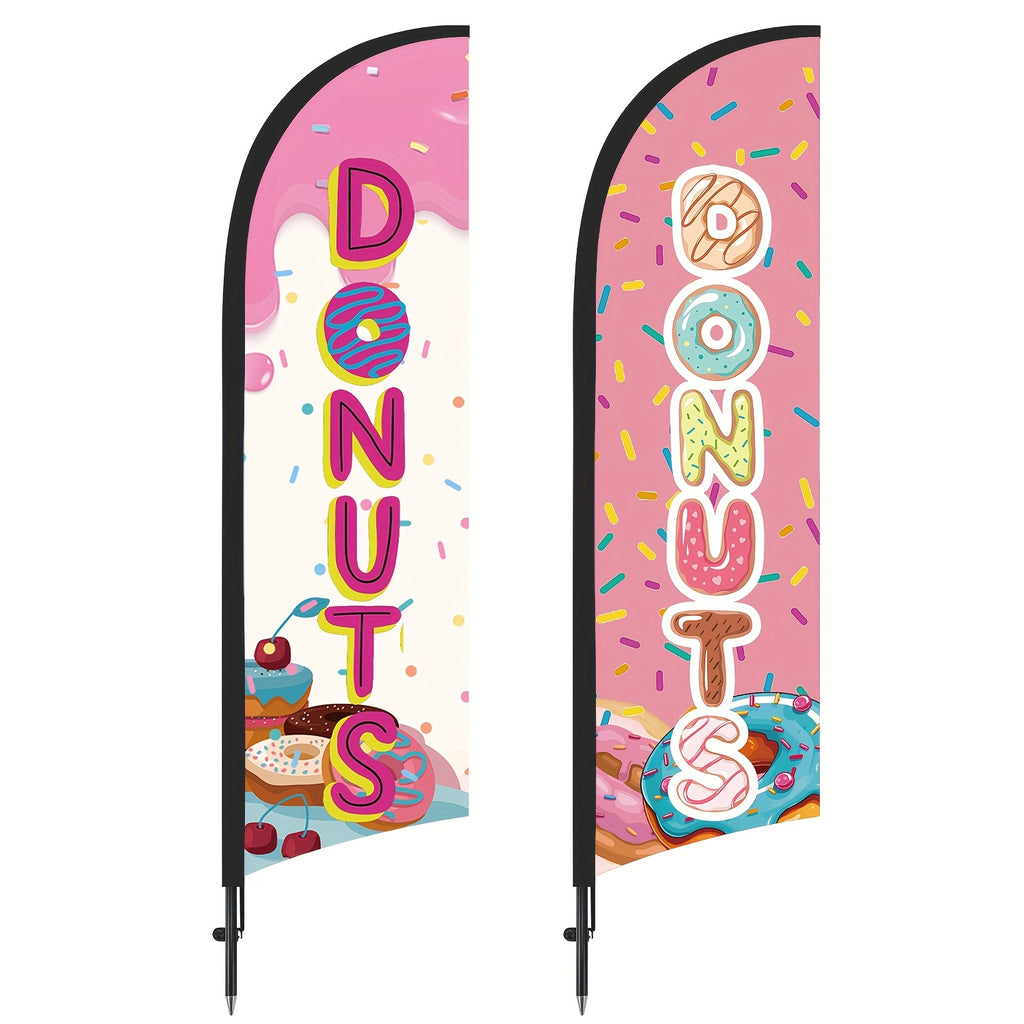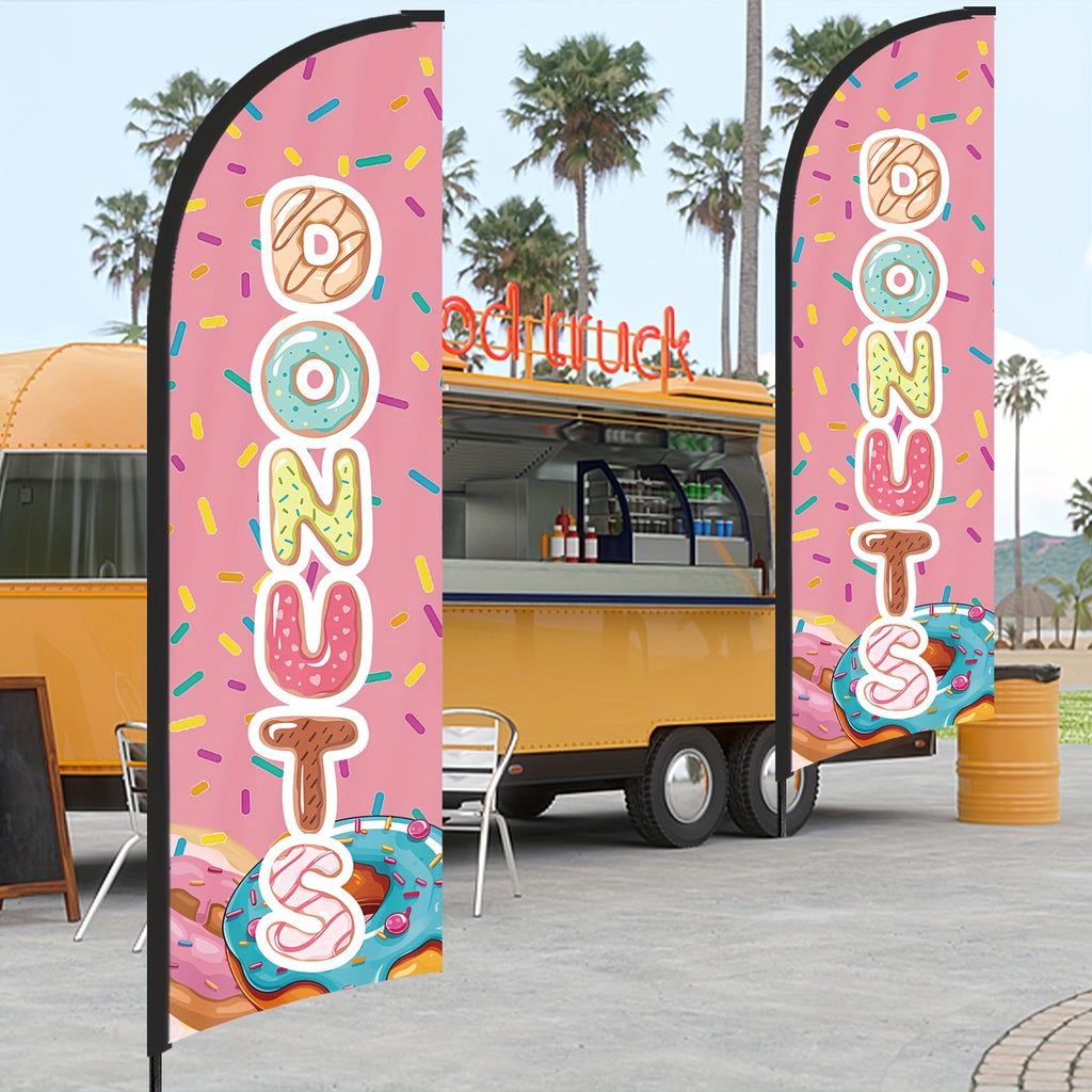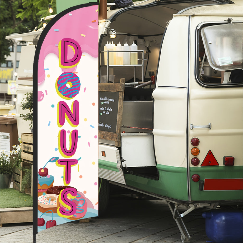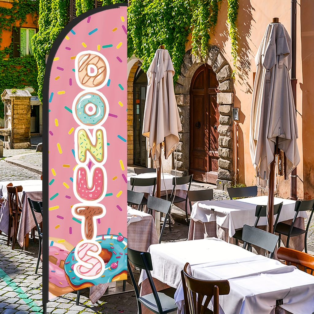 243.84cm MUWEI Donuts Flag, Durable Polyester, Aluminum Material, with Flag Pole and Ground Stake, for Donuts Store, Donuts Banner, Donuts Advertising, Commercial Advertising Display and Promotional Activities
