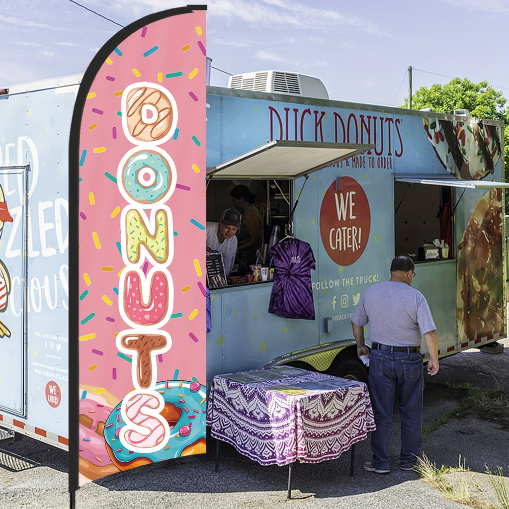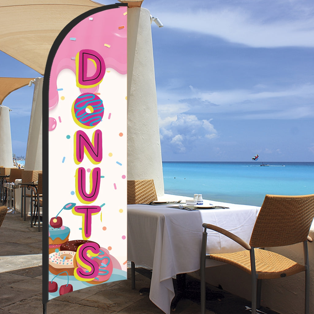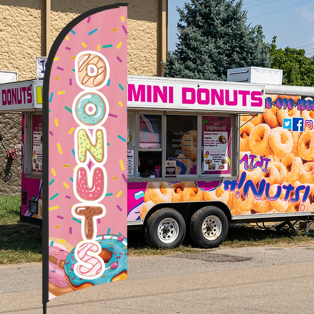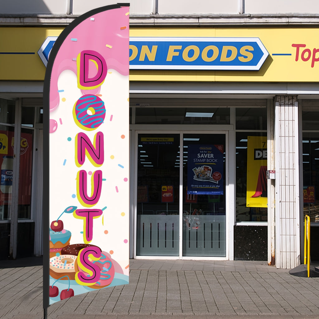243.84cm MUWEI Donuts Flag, Durable Polyester, Aluminum Material, with Flag Pole and Ground Stake, for Donuts Store, Donuts Banner, Donuts Advertising, Commercial Advertising Display and Promotional Activities