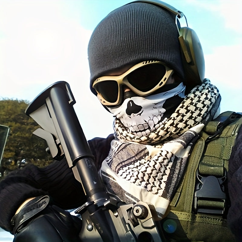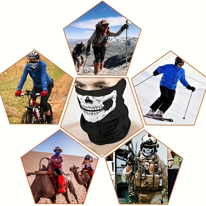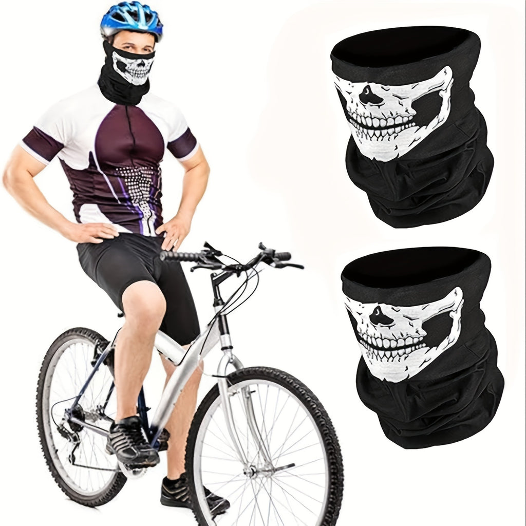 2pcs Skull Mask Balaclava Neck Gaiter - Breathable, Seamless Polyester for Outdoor Cycling, Windproof & Sun Protection, Black with White Skull Design, Cool & Stylish Riding Gear, Cycling Accessories