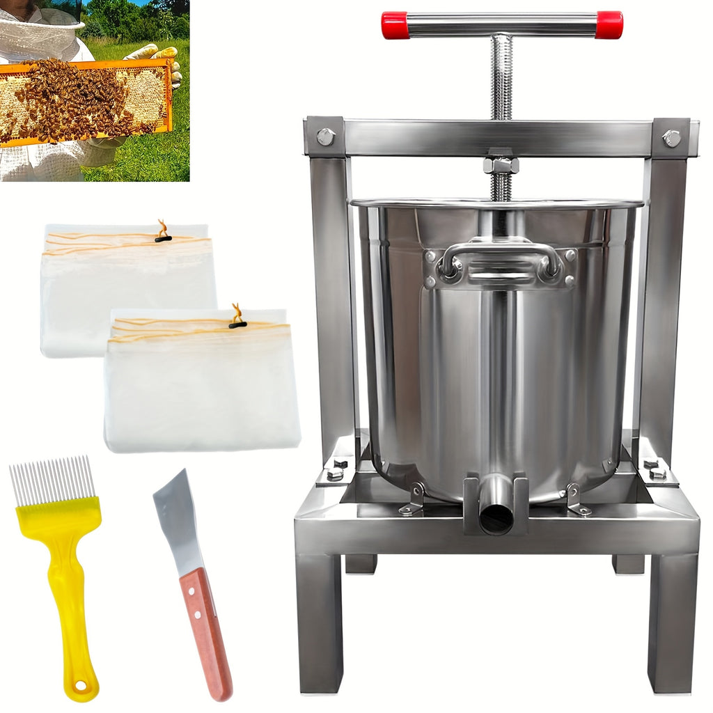 5-in-1 Beekeeping Equipment Set: Fully Enclosed Wax Extractor, Stainless Steel Honeycomb Press, and Beekeeping Tools