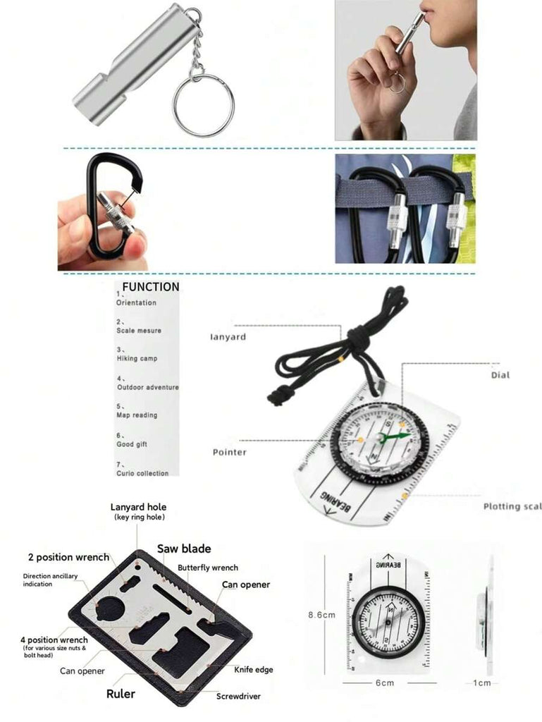 8/12pcs Outdoor Survival Gear, Wilderness Survival Kit, SOS Survival Set, Essential Equipment For Camping, Hiking, Climbing, Cycling