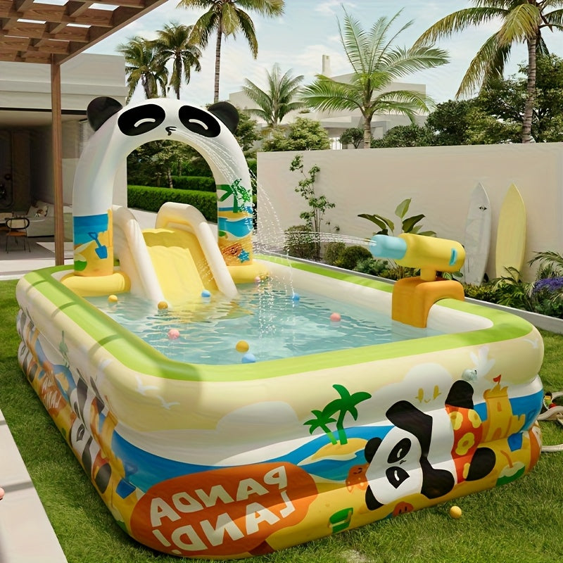 Large Inflatable Swimming Pool with Slide - Heavy-Duty 3-Layer Construction, Holds 1-3 People, Quick Setup Outdoor/Indoor Backyard Pool with Slide, Tropical Palm Tree Design in Yellow, Green, Blue - Birthday Party, Vacation, Family Gathering Pool for, Po