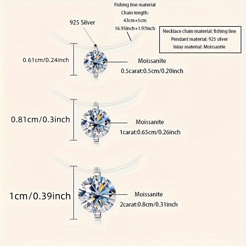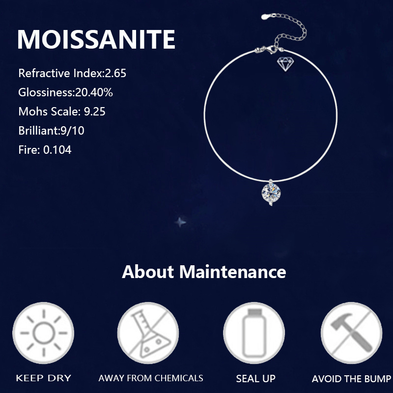 925 Silver 0.5ct 1ct 2ct Moissanite Simple Classic Mermaid's Tear Pendant Collarbone Chain