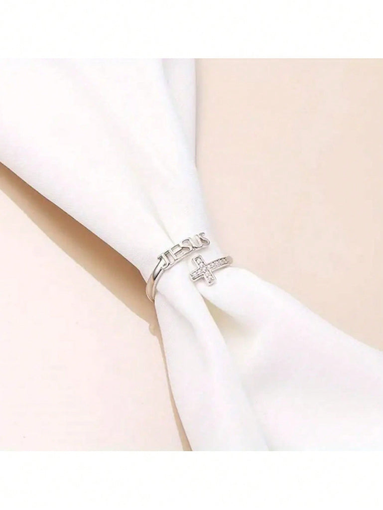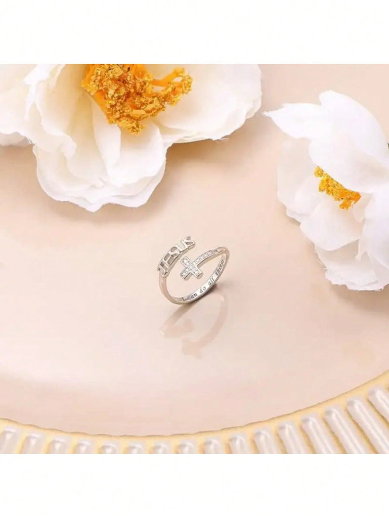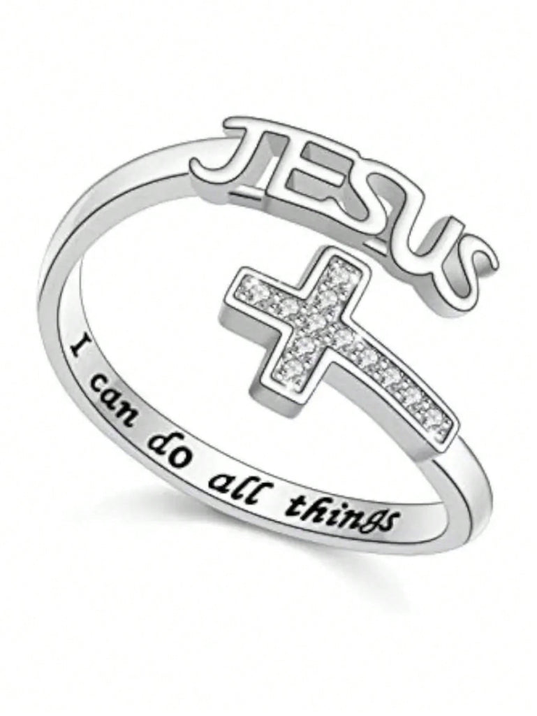 Women's Adjustable 925 Sterling Silver "I Can Do All Things" Jesus Cross Ring