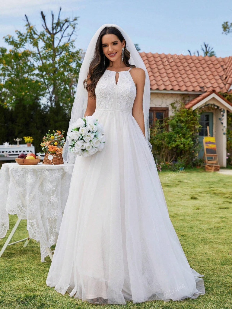 Elisanya Delicate Cold Shoulder Mesh Appliques Wedding Dress White Dress For Summer Garden Weddings Bride Dresses