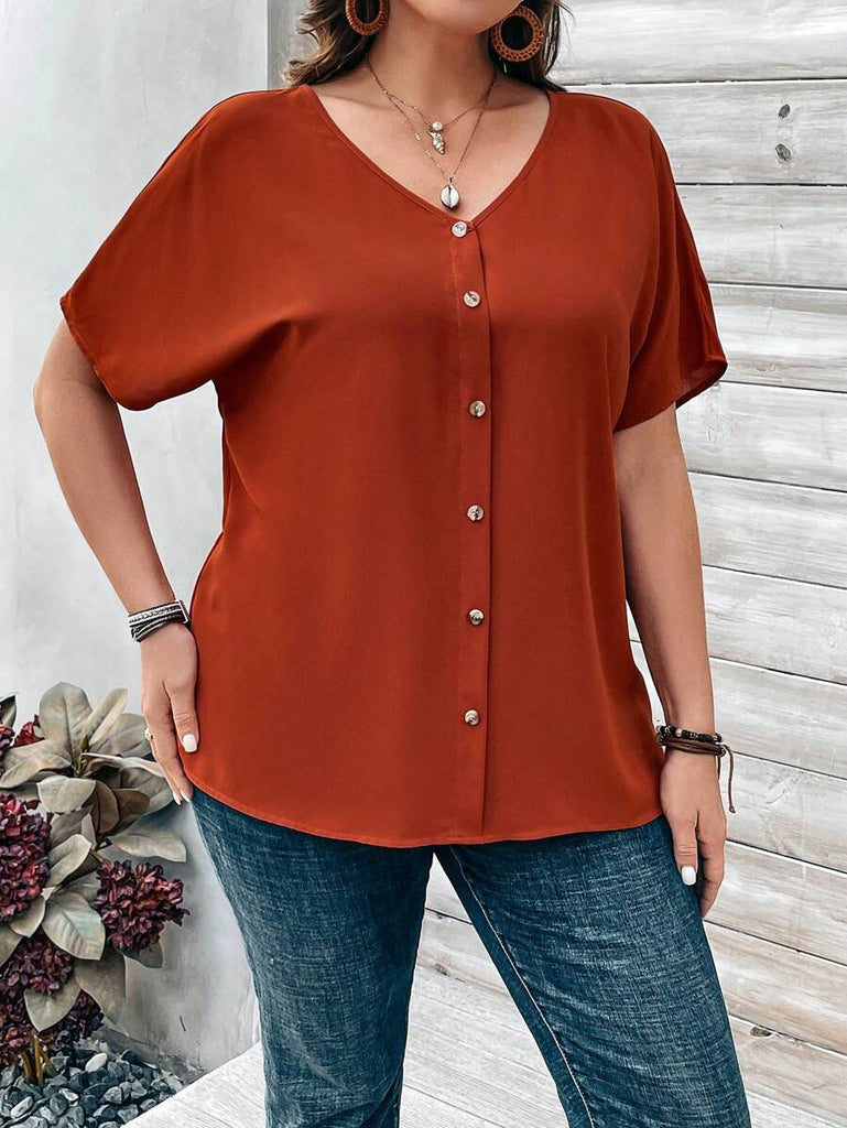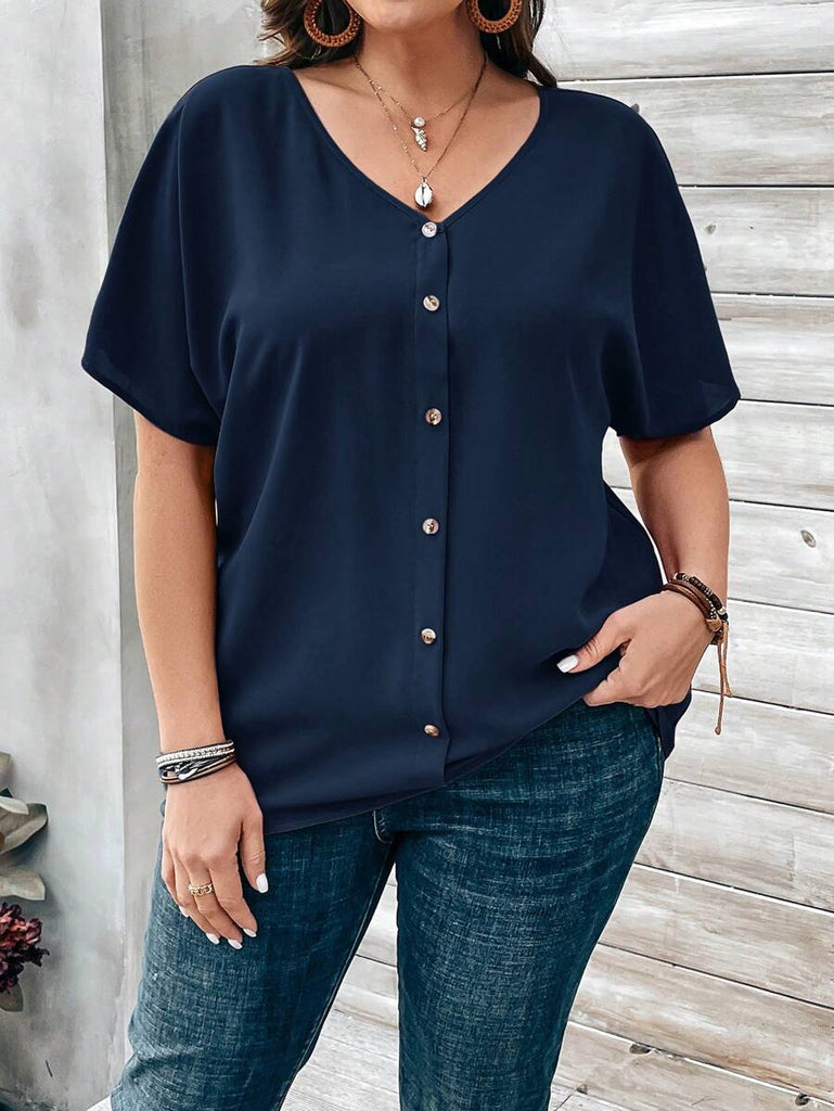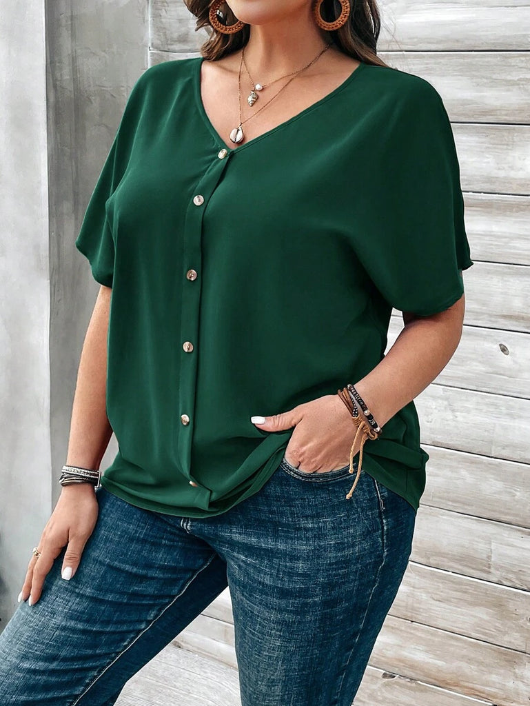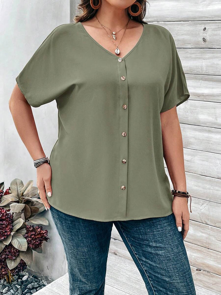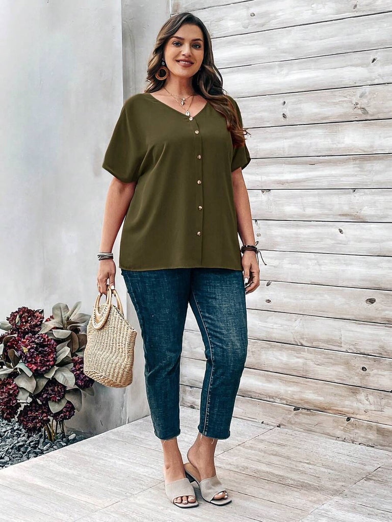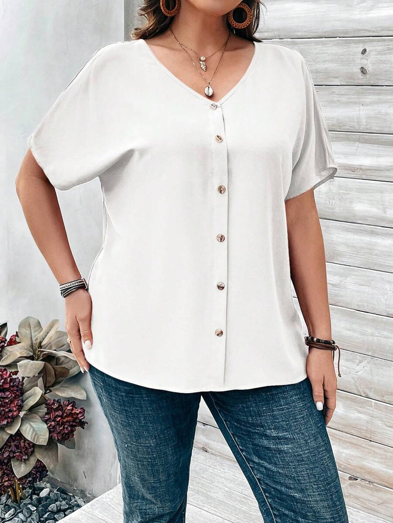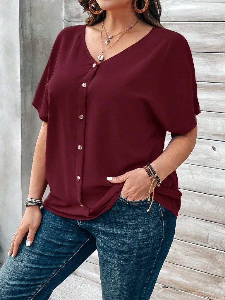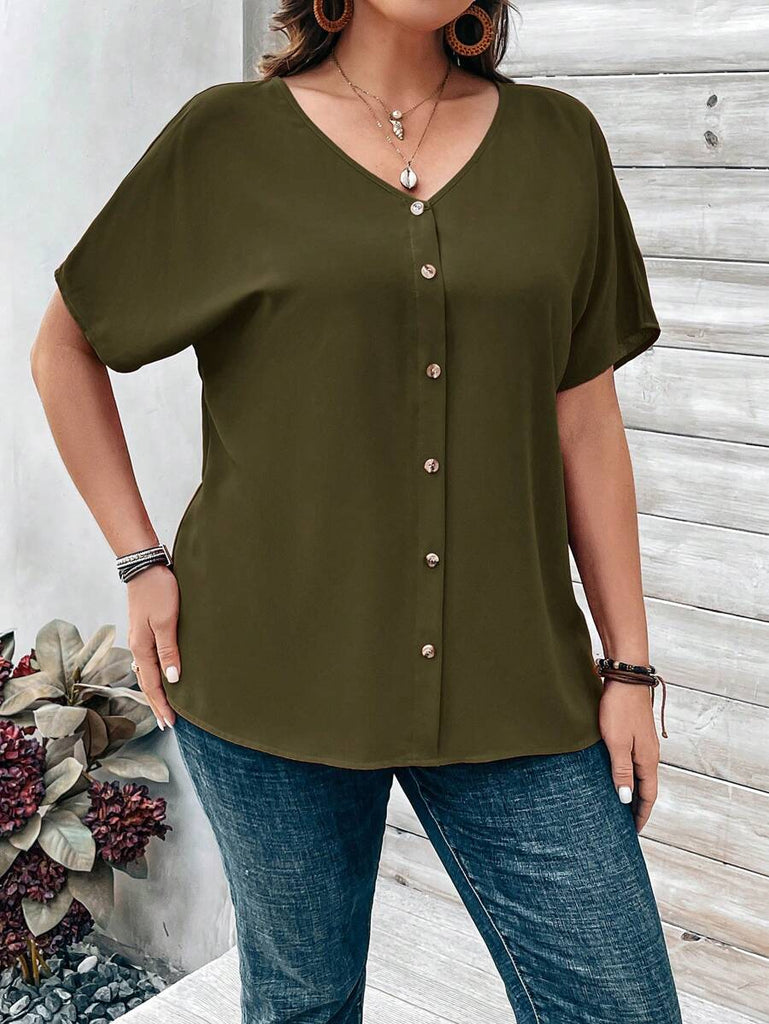Women's Plus Size Plain Batwing Sleeve Buttoned-Up Blouse