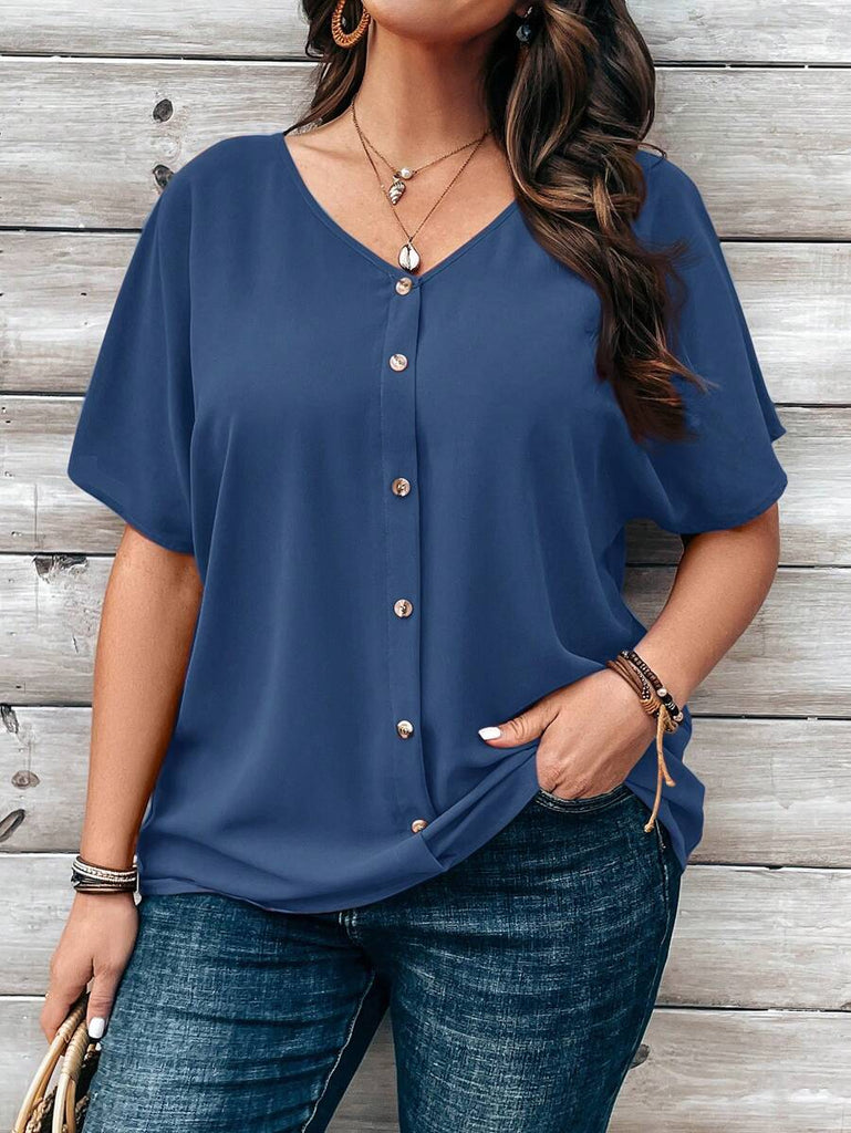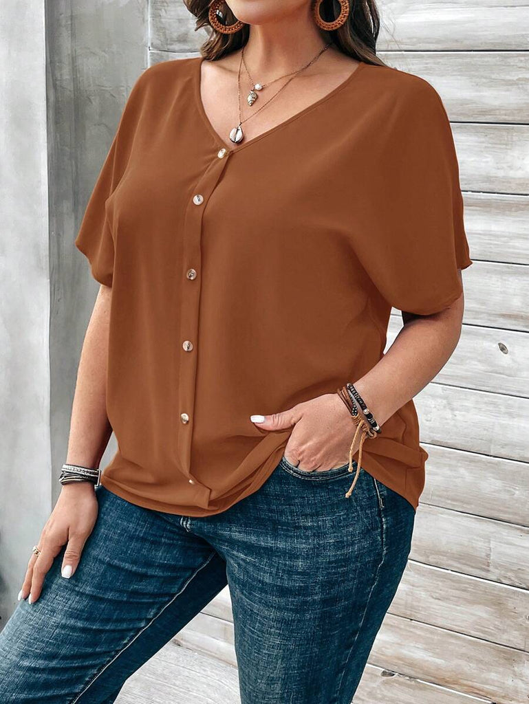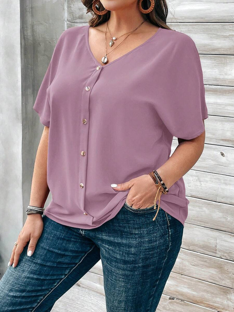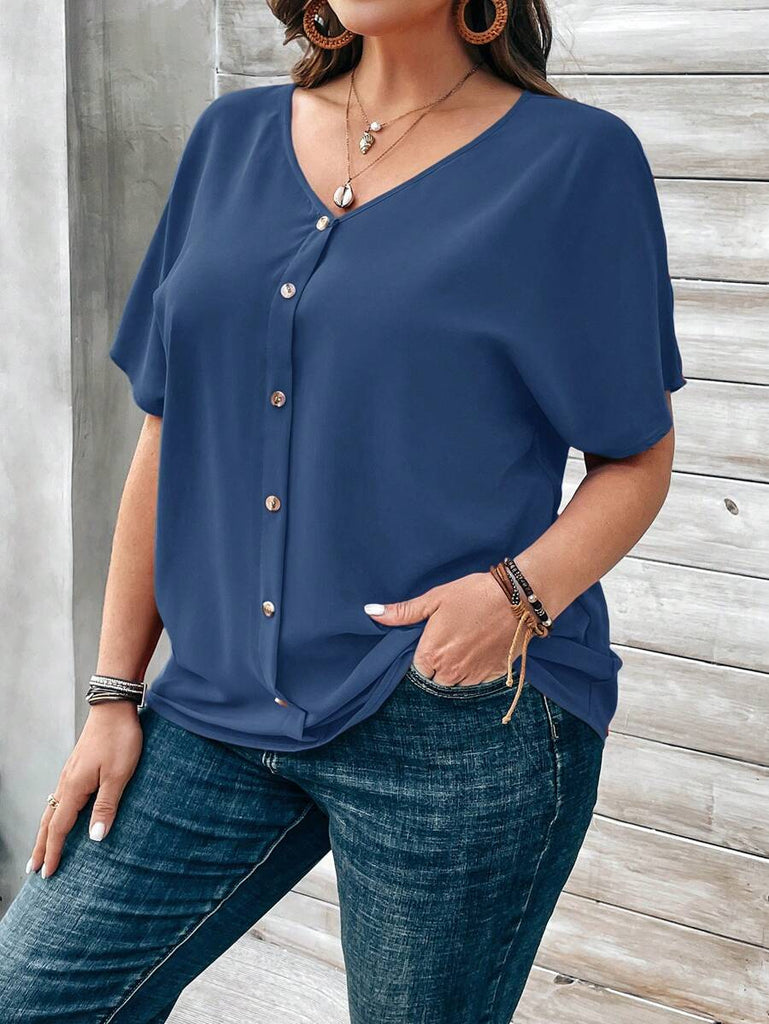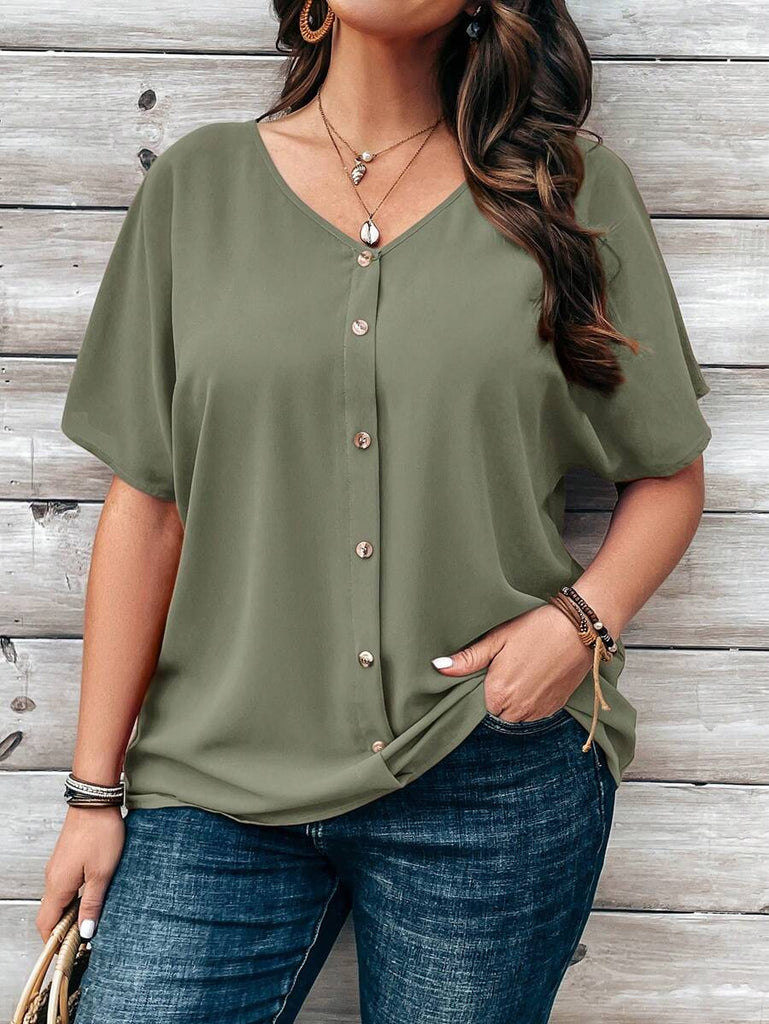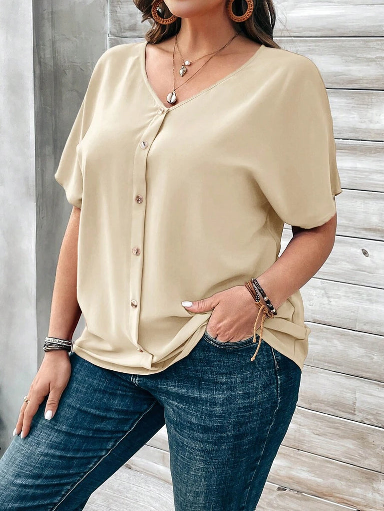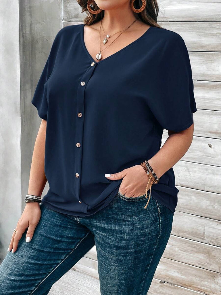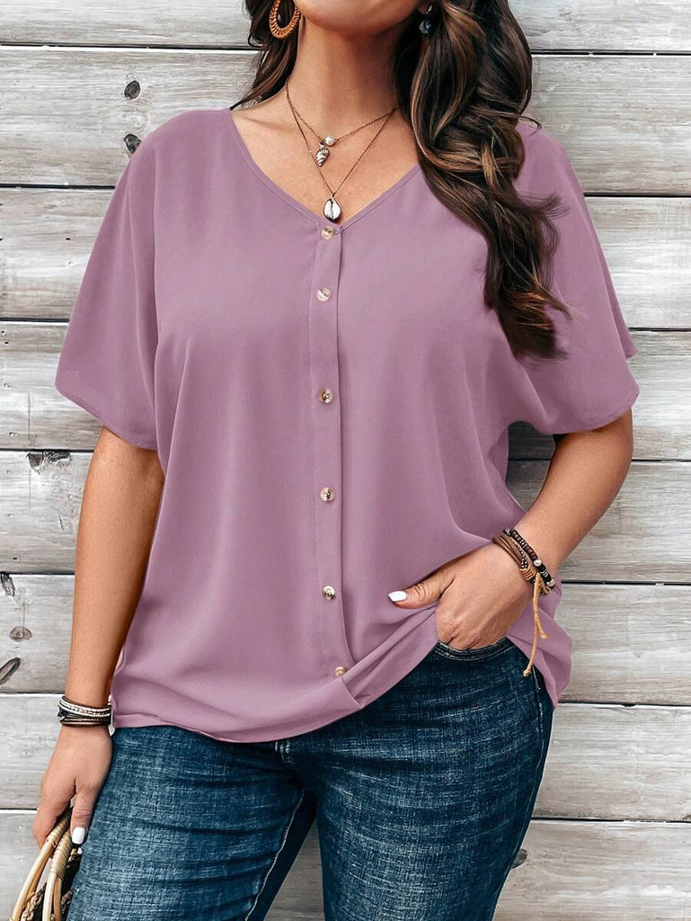 Women's Plus Size Plain Batwing Sleeve Buttoned-Up Blouse