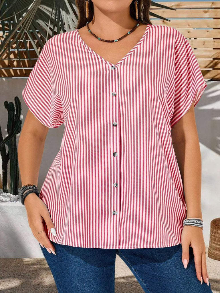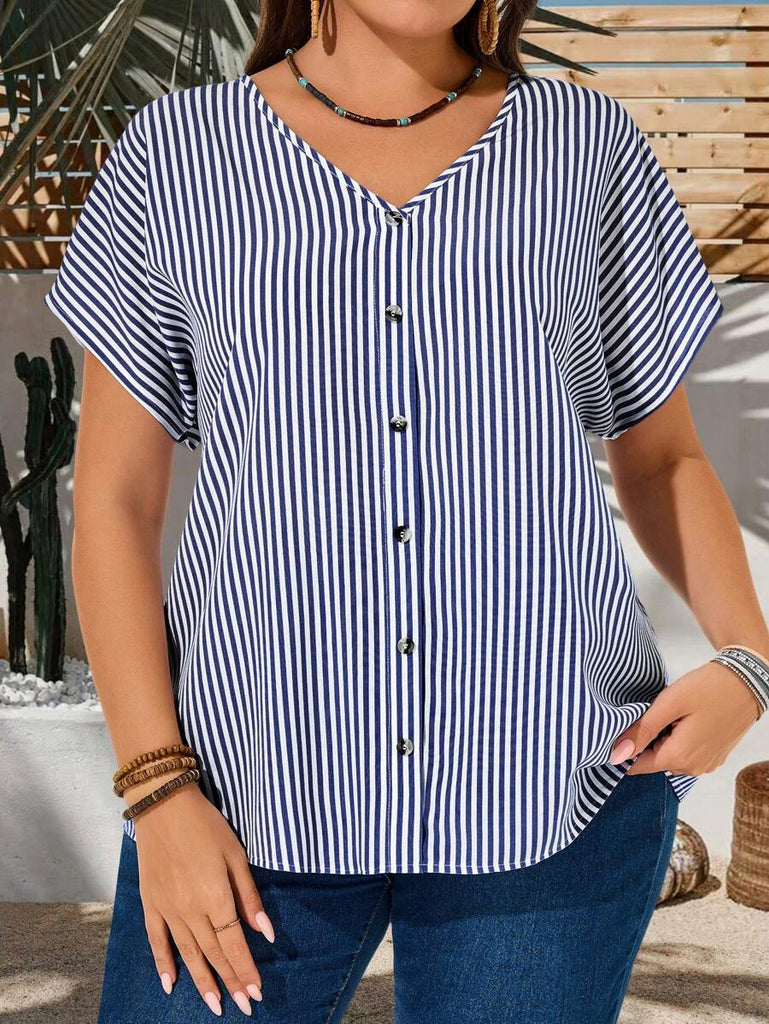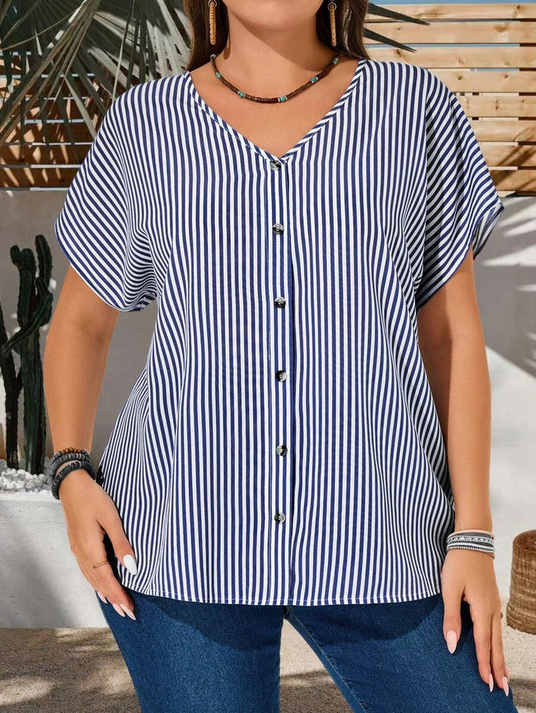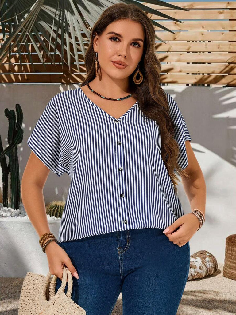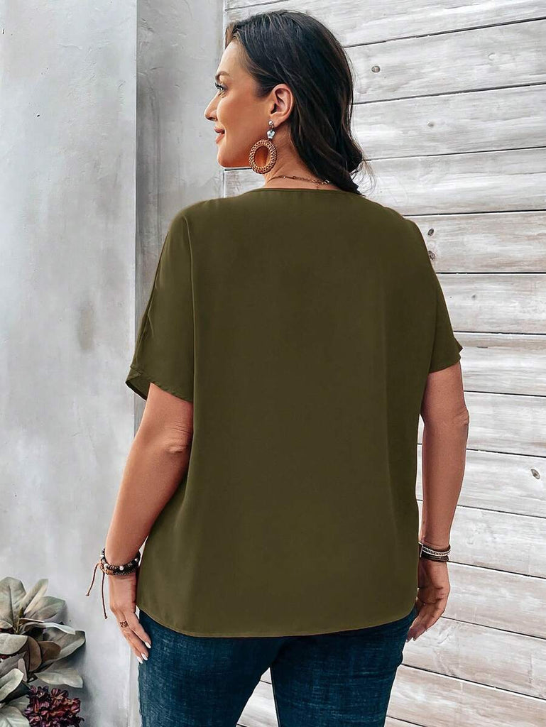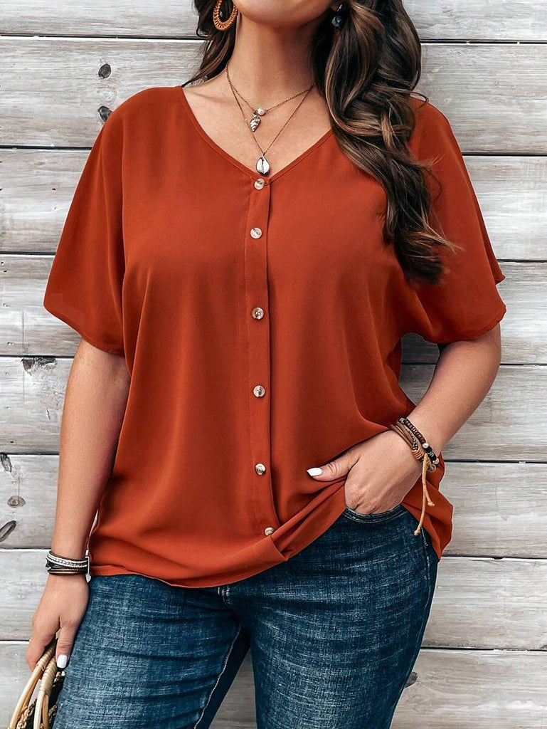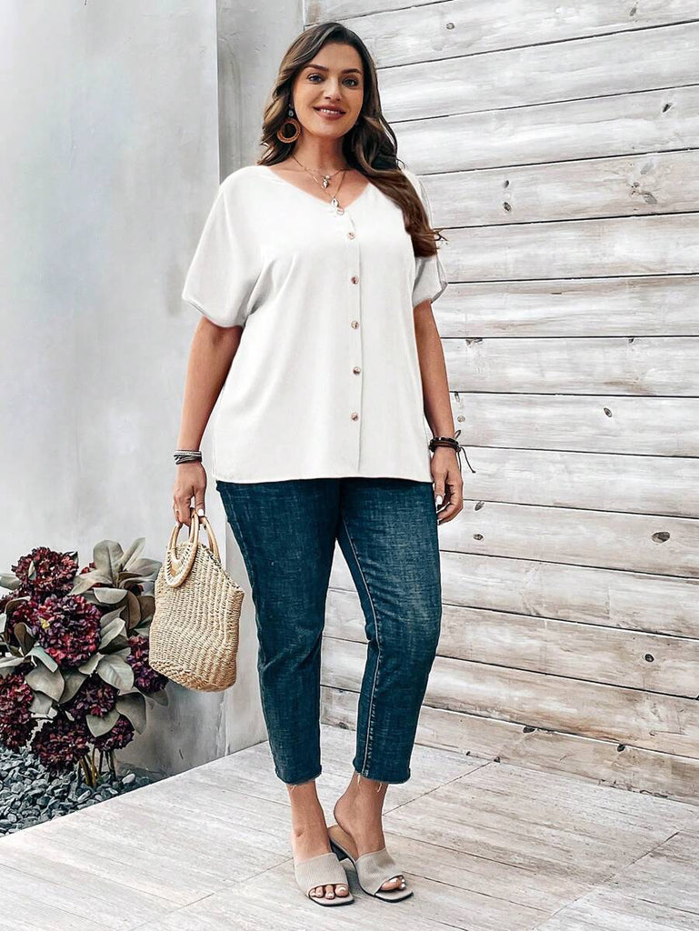 Women's Plus Size Plain Batwing Sleeve Buttoned-Up Blouse