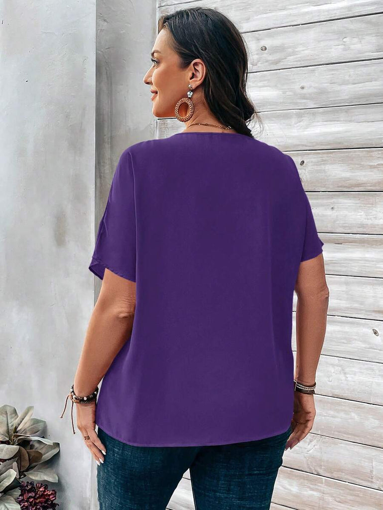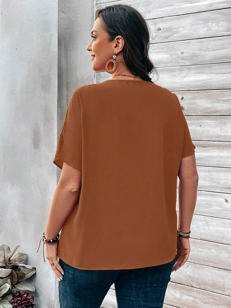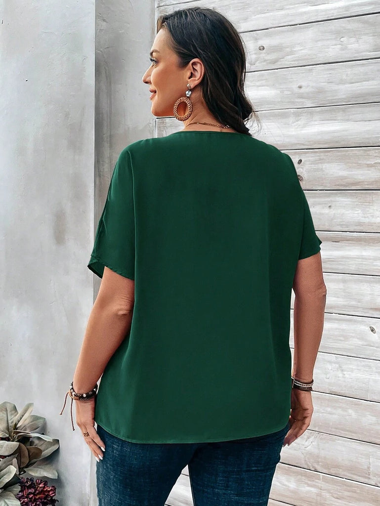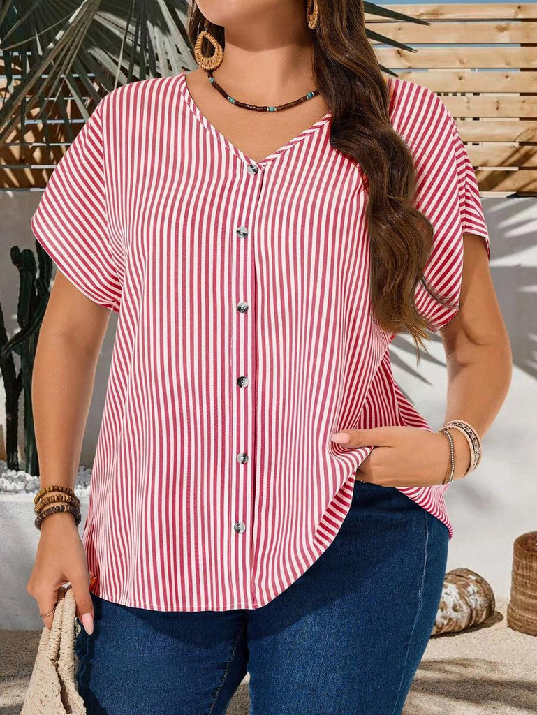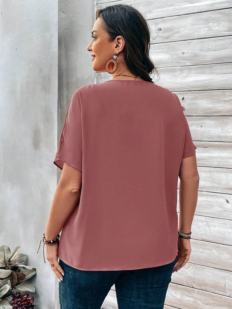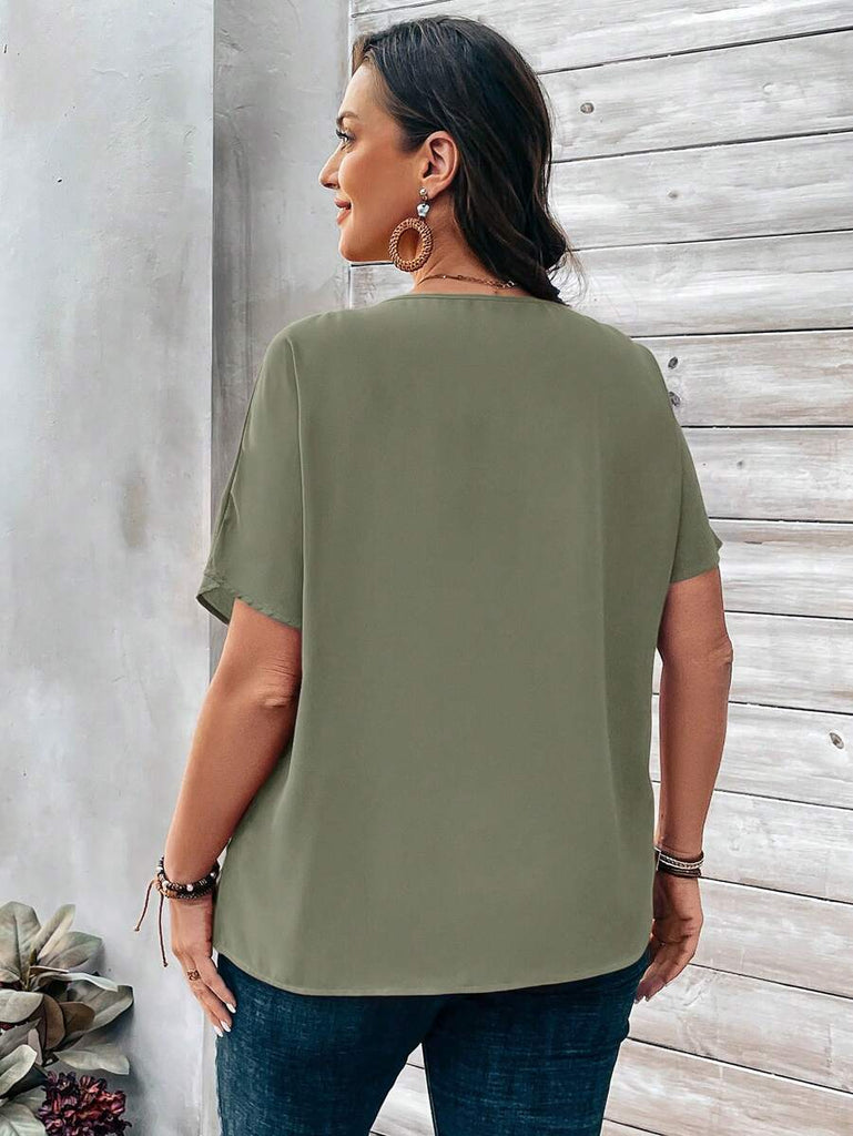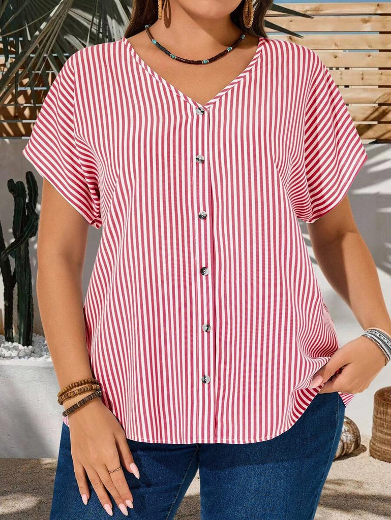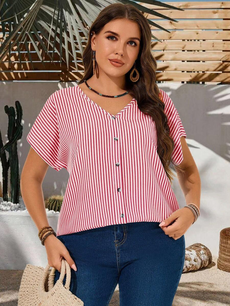 Women's Plus Size Plain Batwing Sleeve Buttoned-Up Blouse