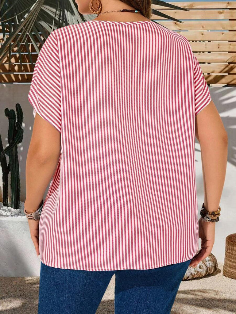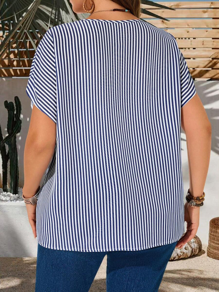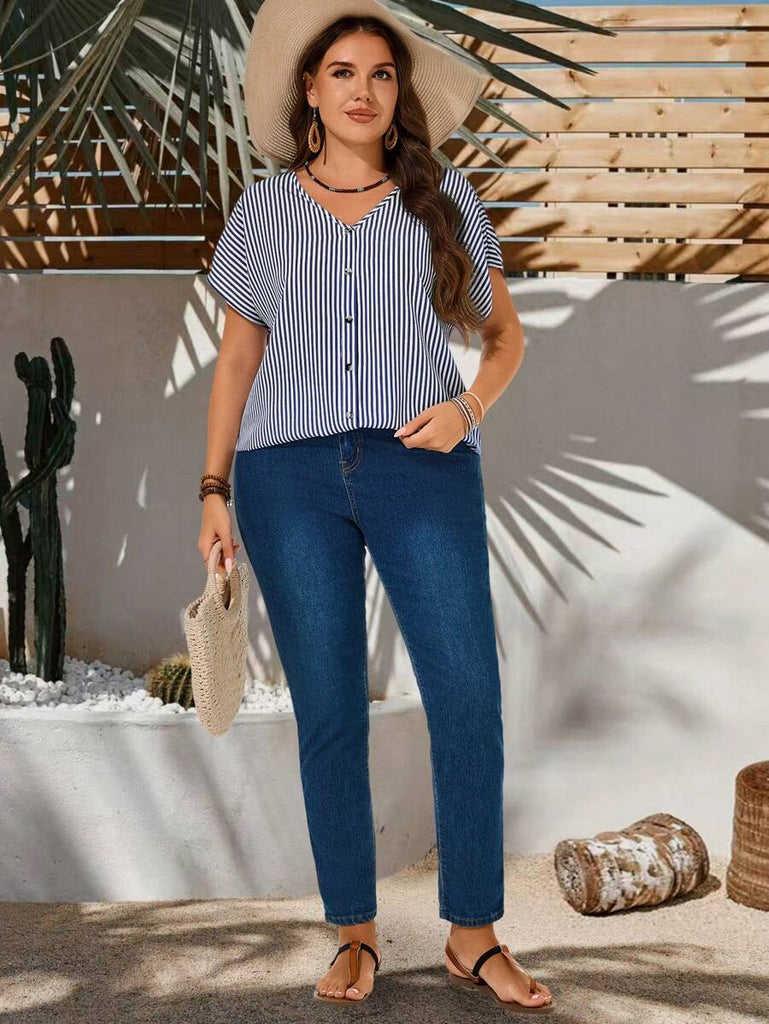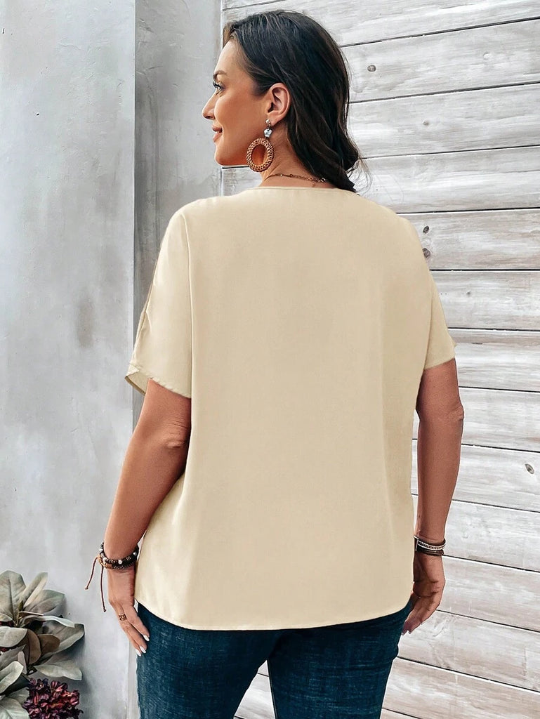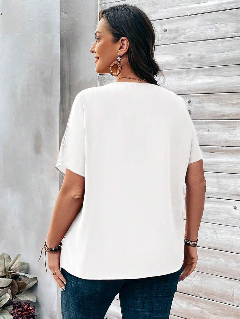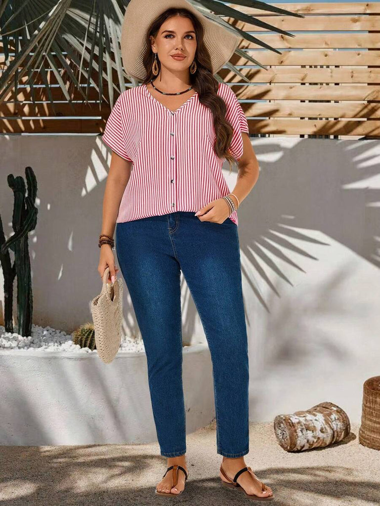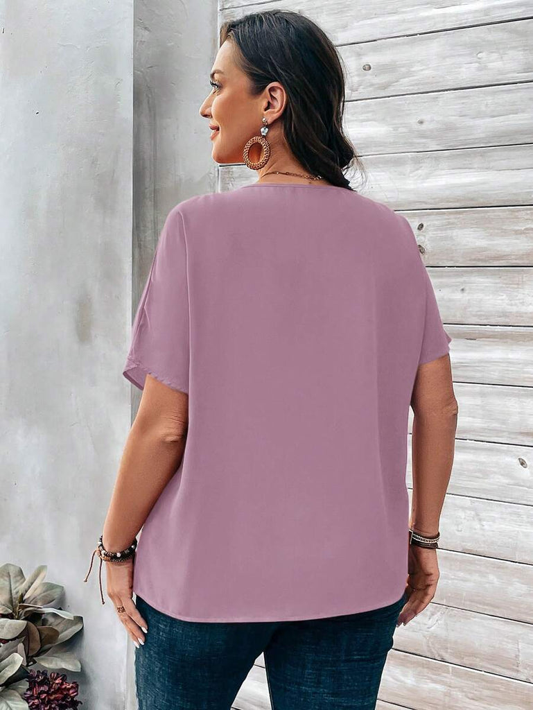 Women's Plus Size Plain Batwing Sleeve Buttoned-Up Blouse