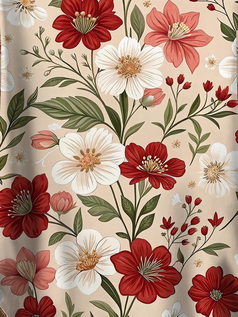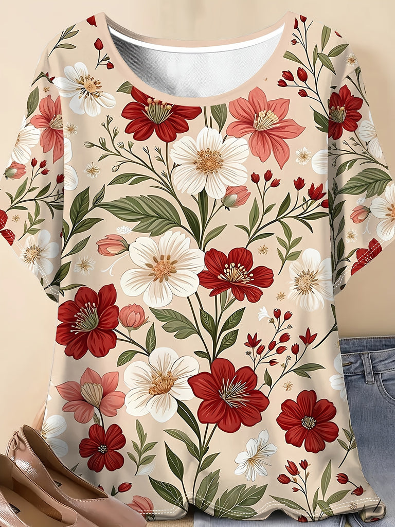 Plus Size Women'S Elegant Double-Sided Floral Print T-Shirt