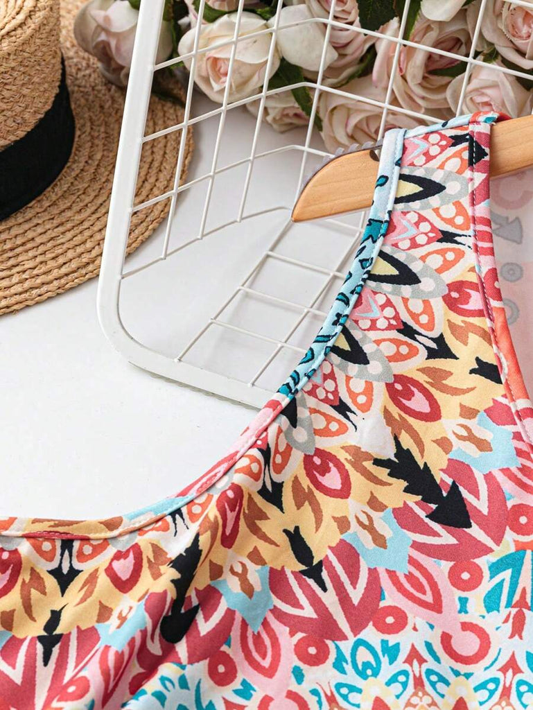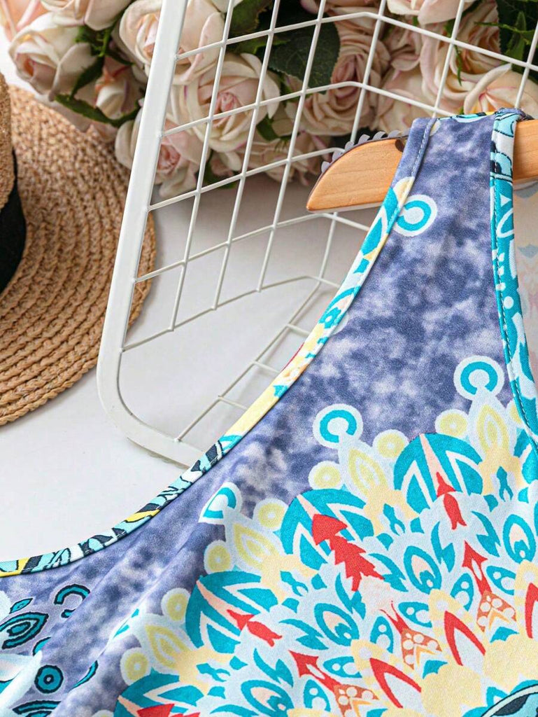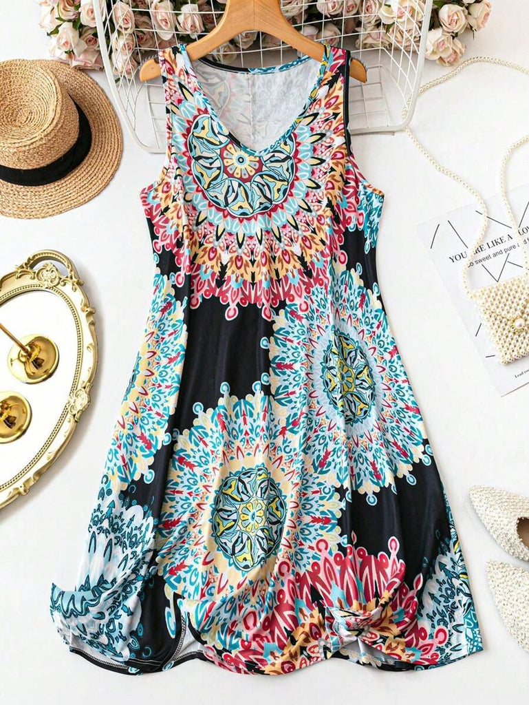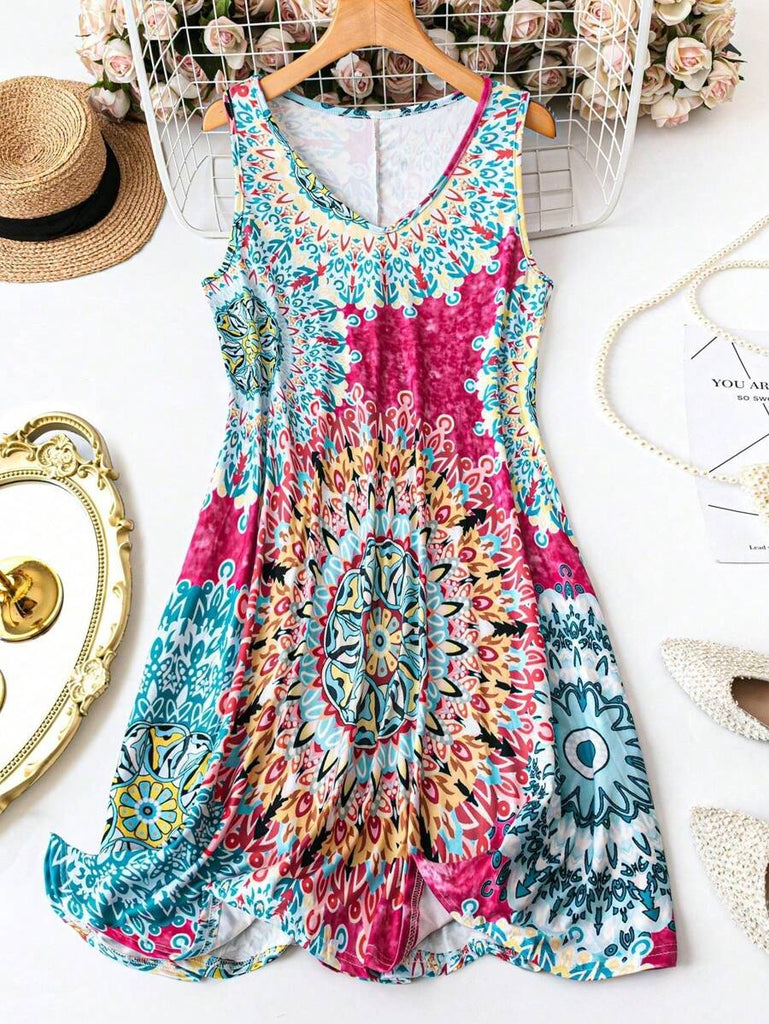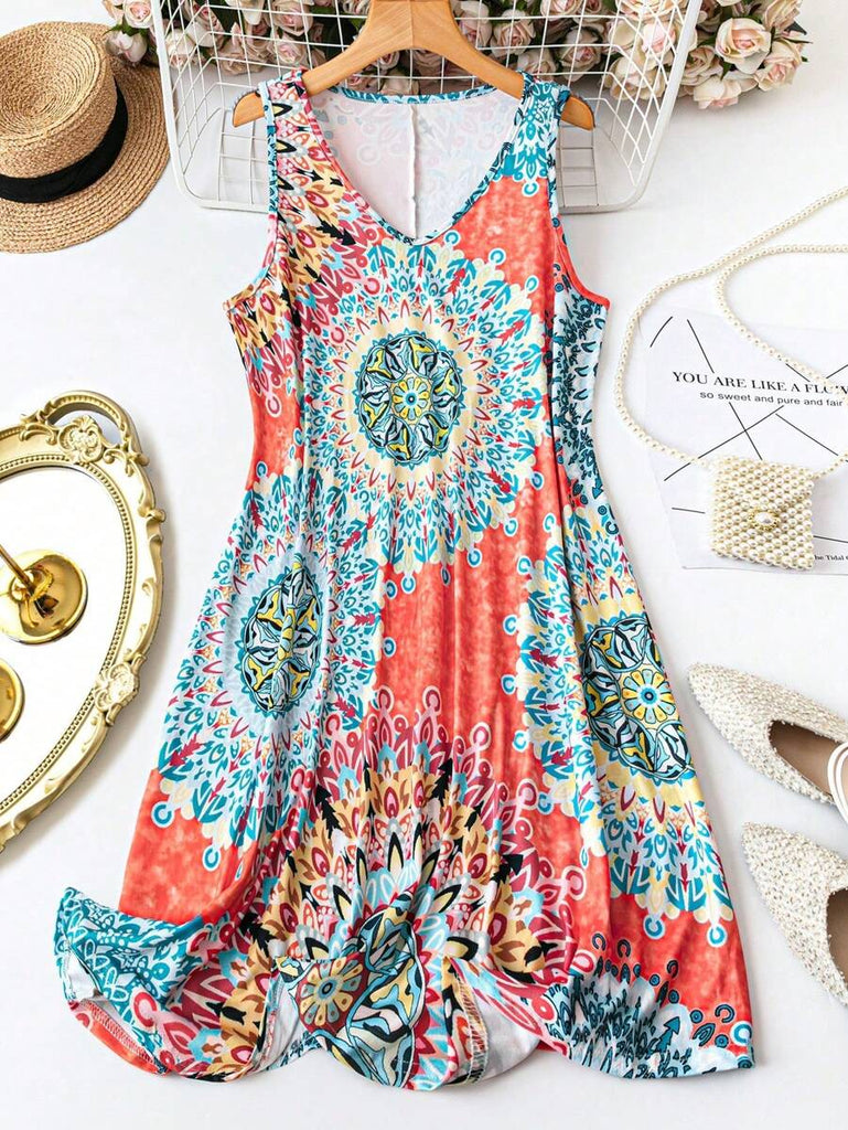 Plus Size Women Floral Print V-Neck Camisole Dress