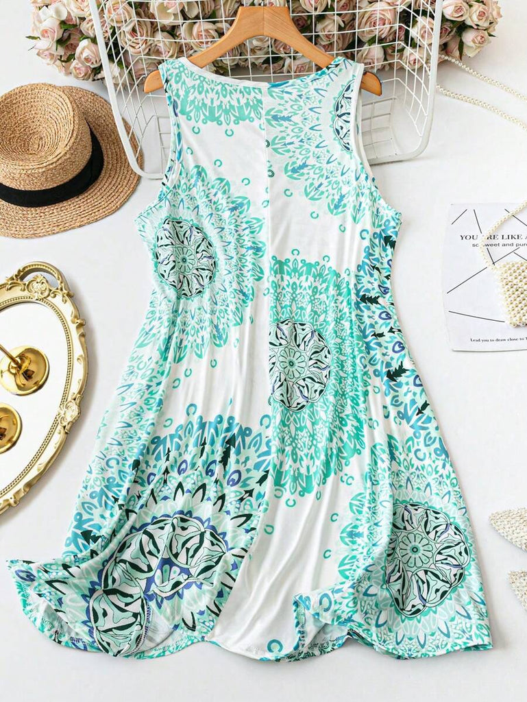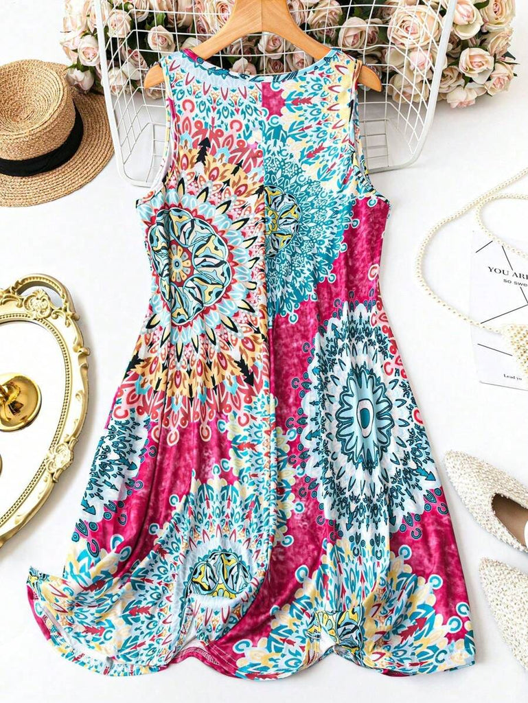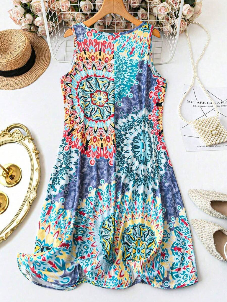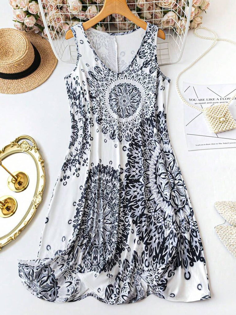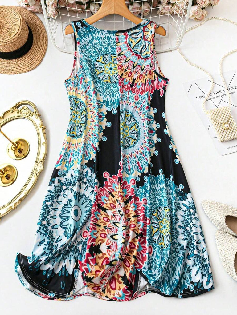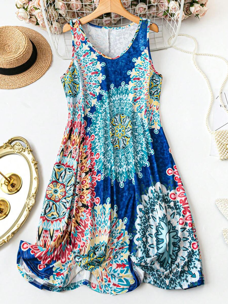 Plus Size Women Floral Print V-Neck Camisole Dress