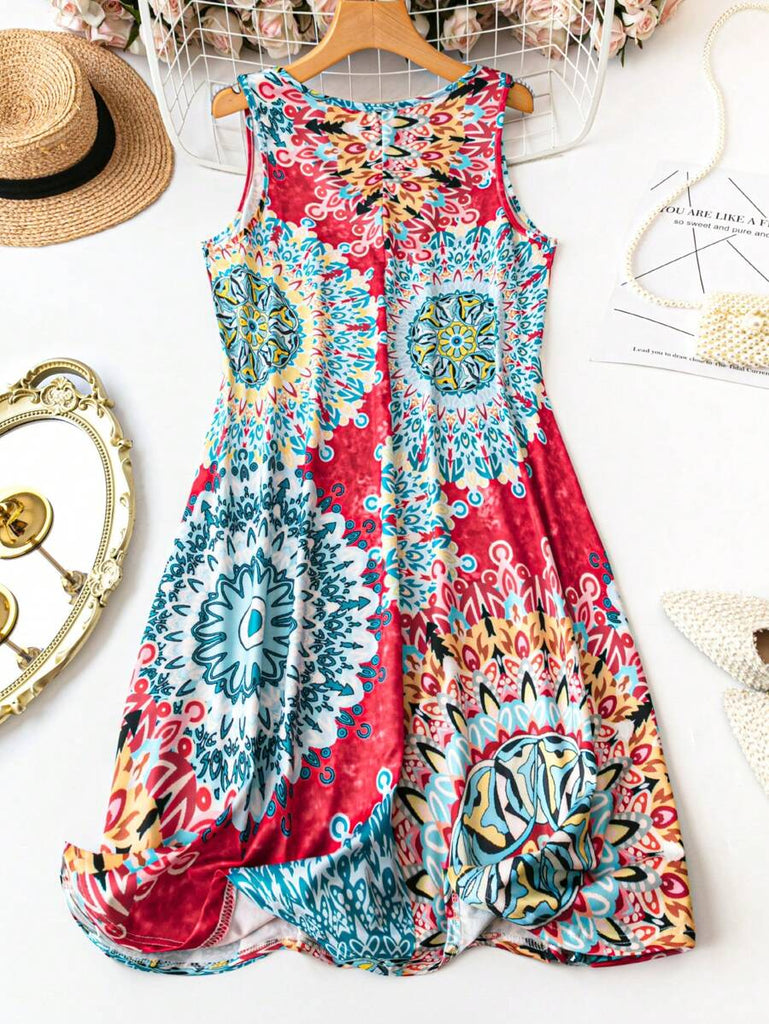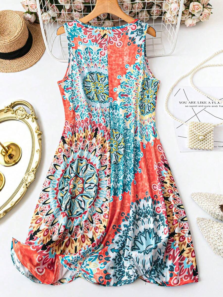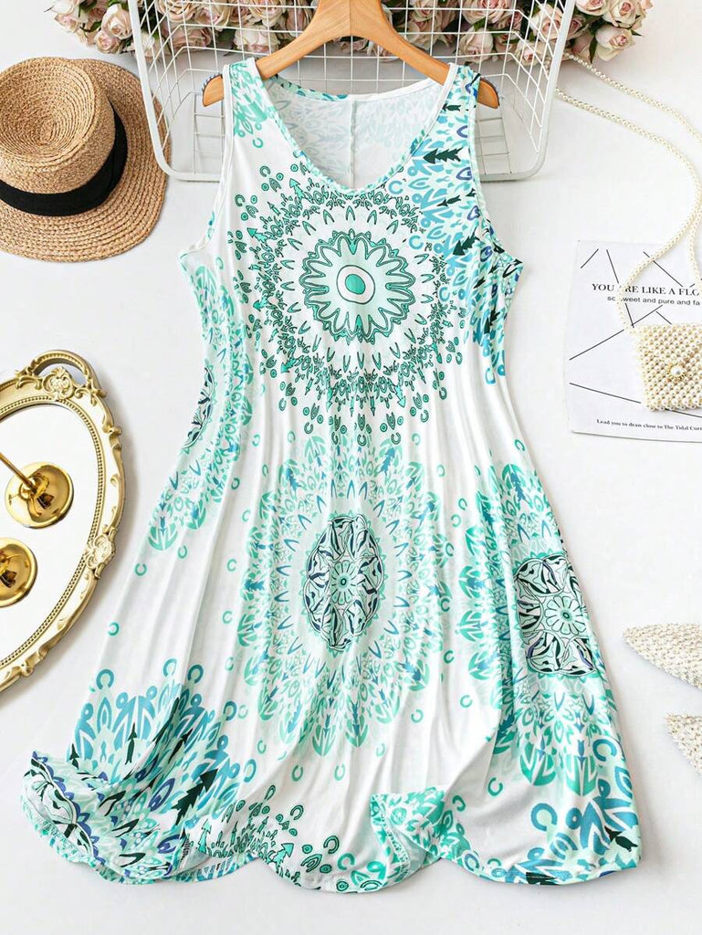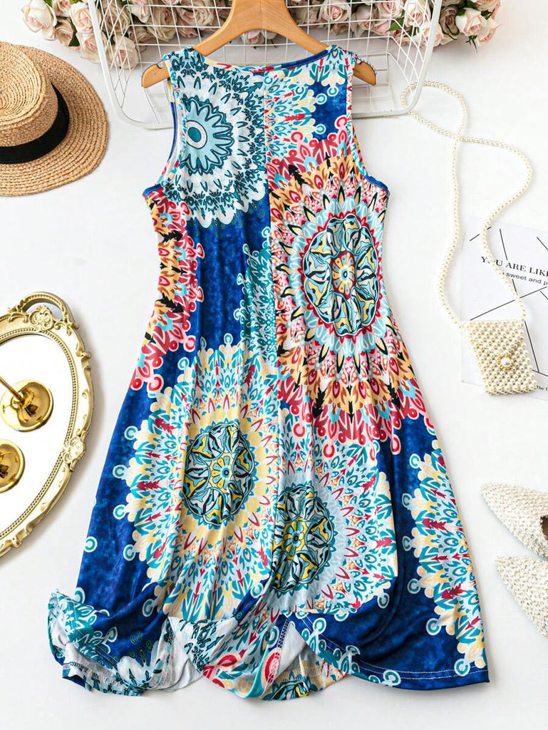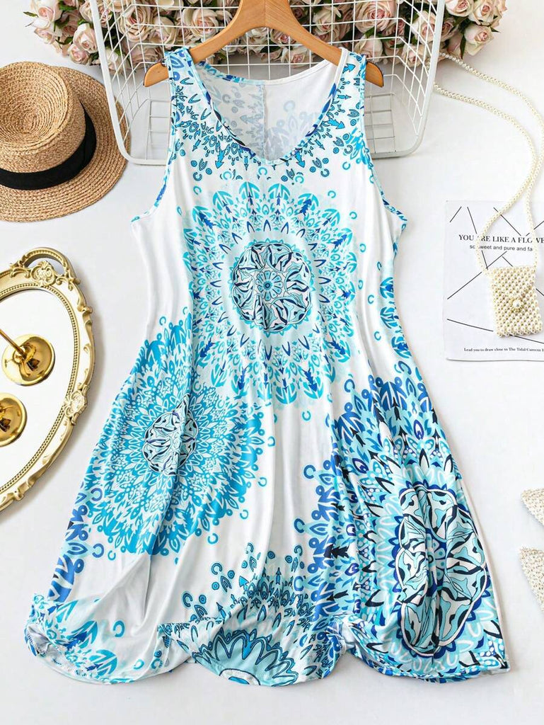 Plus Size Women Floral Print V-Neck Camisole Dress