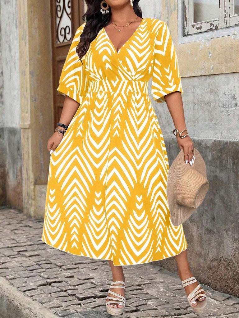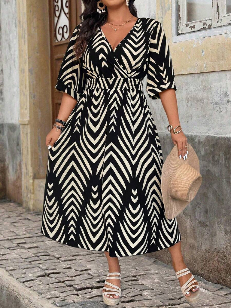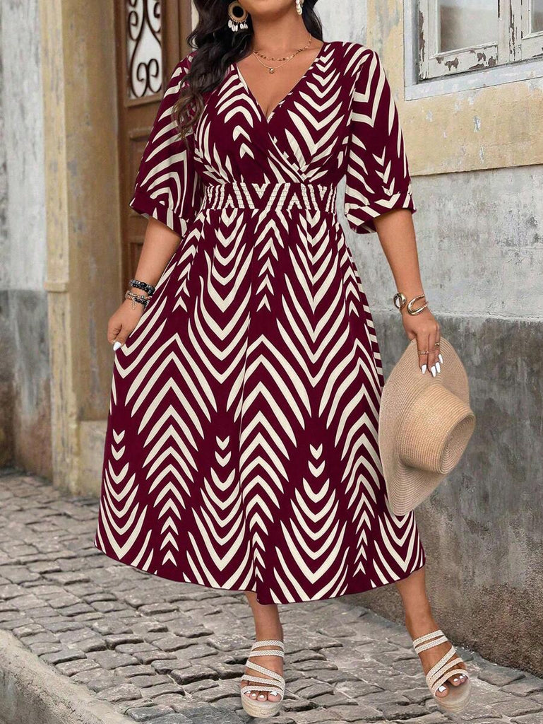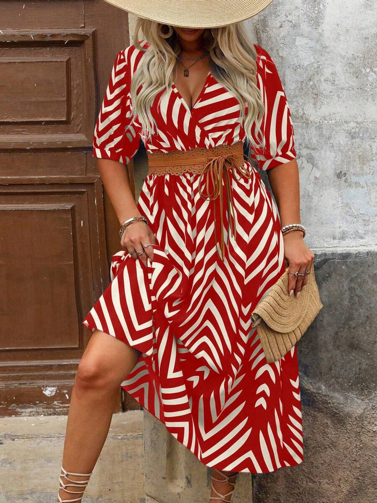 EMERY ROSE Women's Elegant Floral Print Short Sleeve Dress
