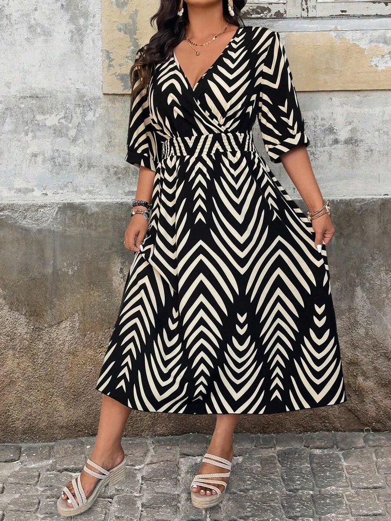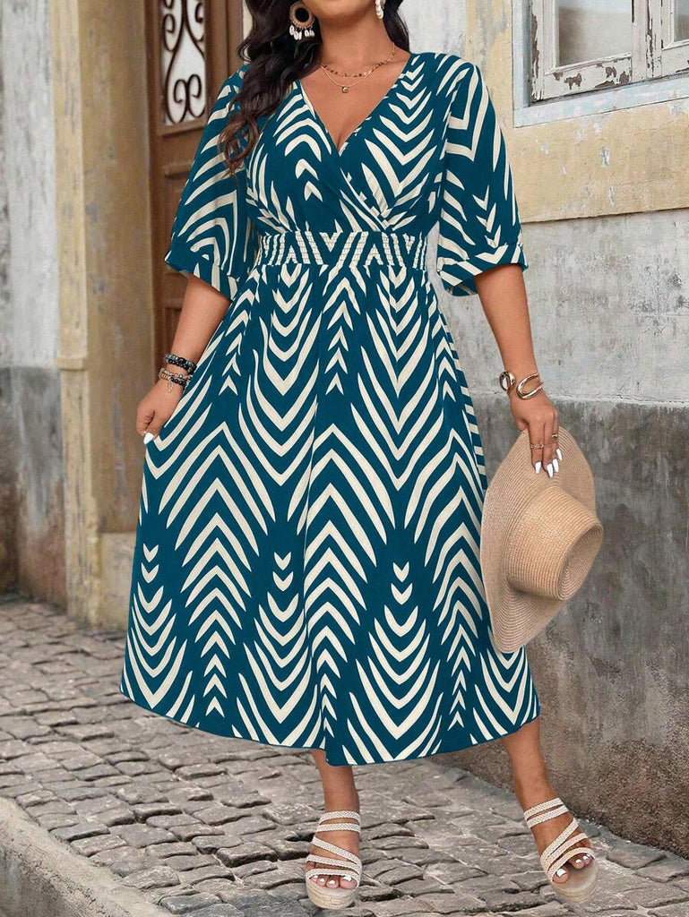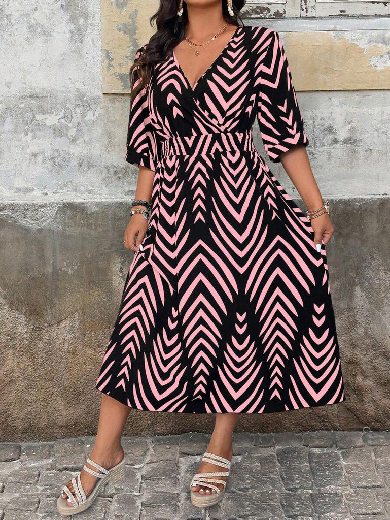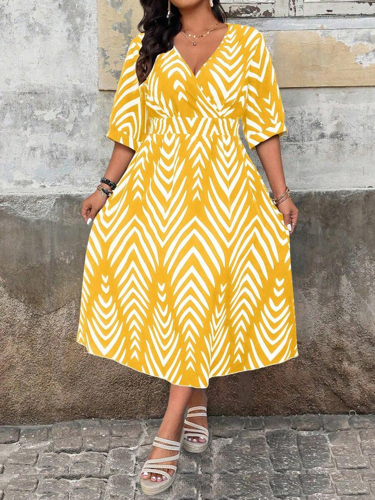 EMERY ROSE Women's Elegant Floral Print Short Sleeve Dress