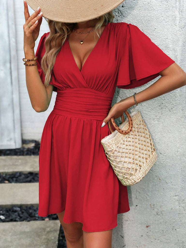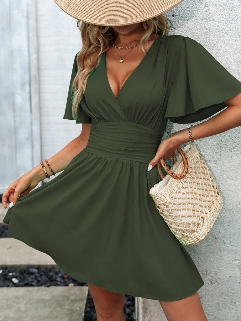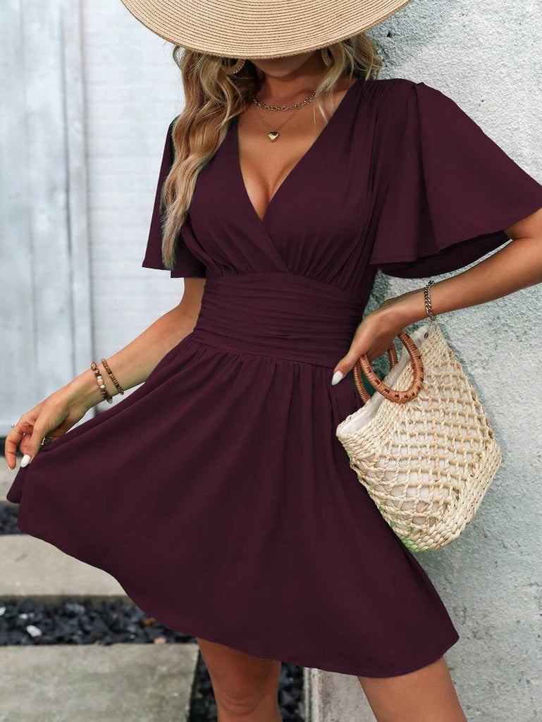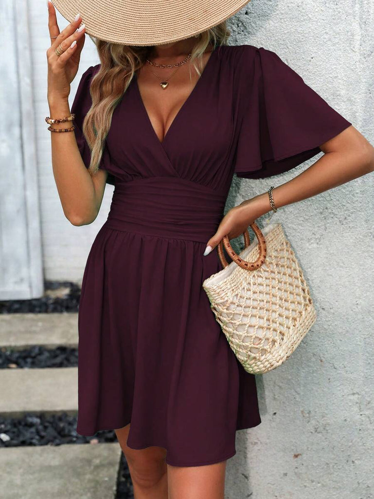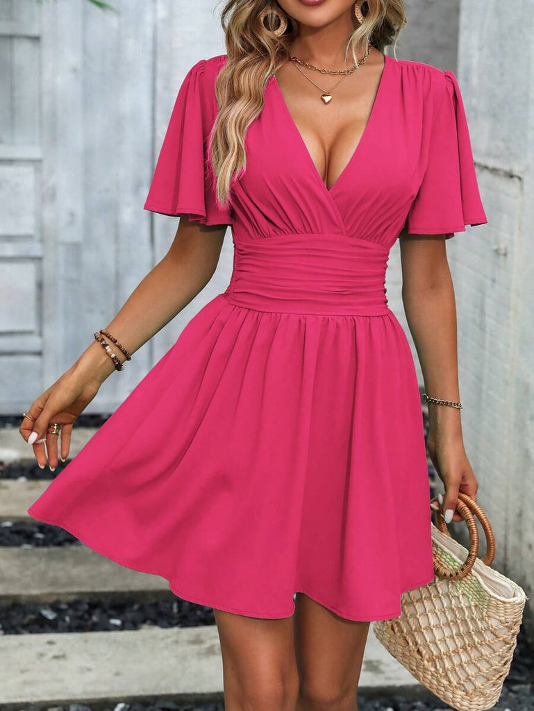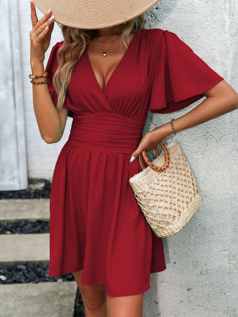 Women's EMERY ROSE Solid Crossed V-Neck Ruffle Sexy Mini Dress