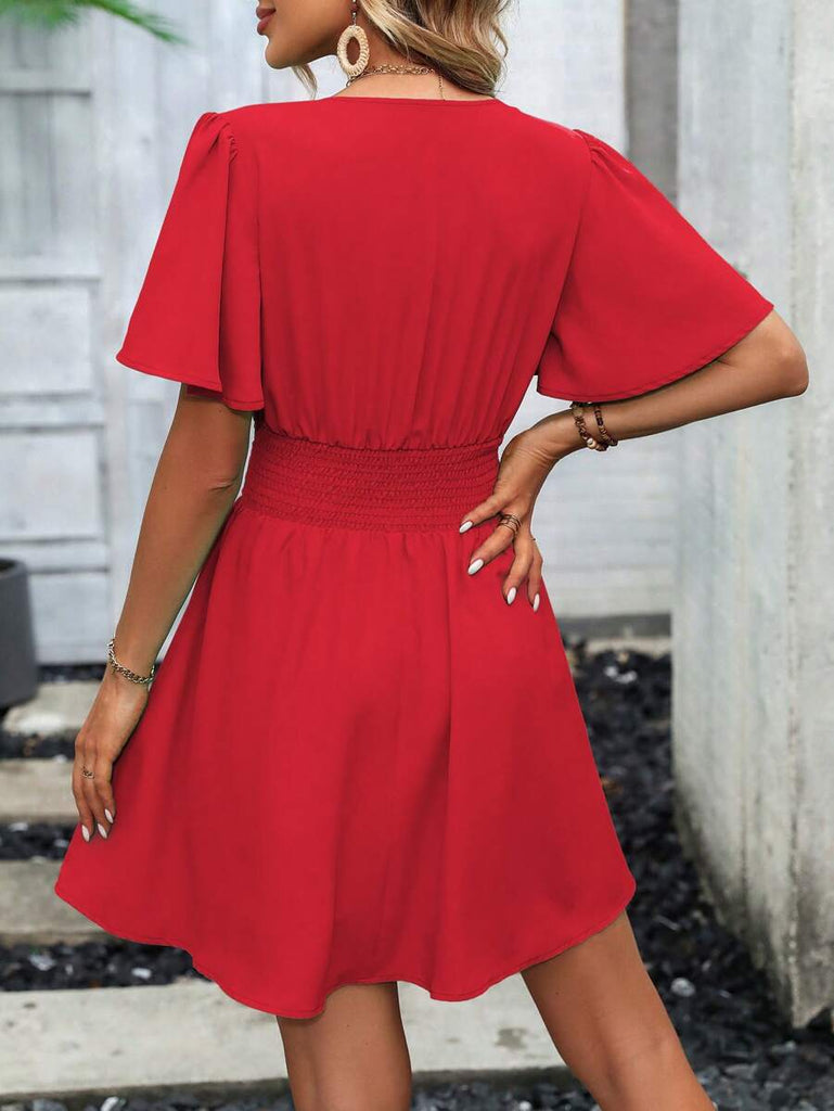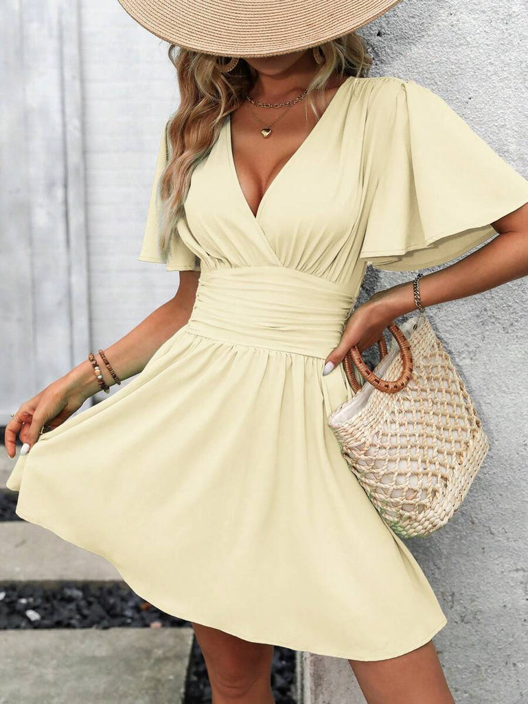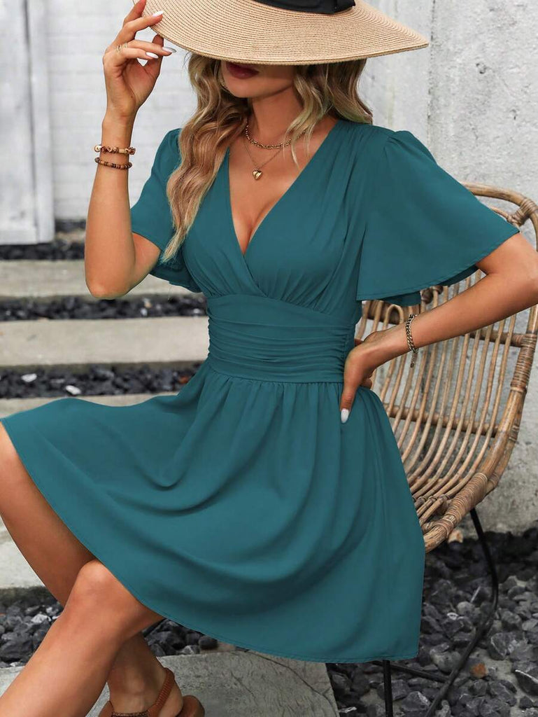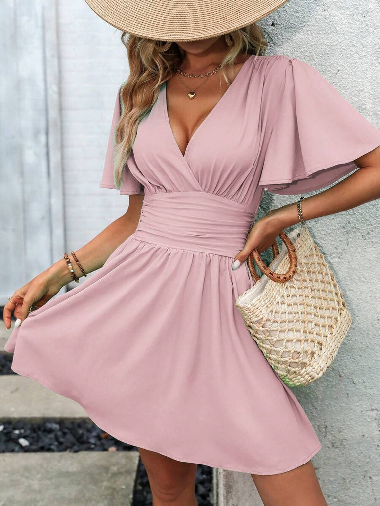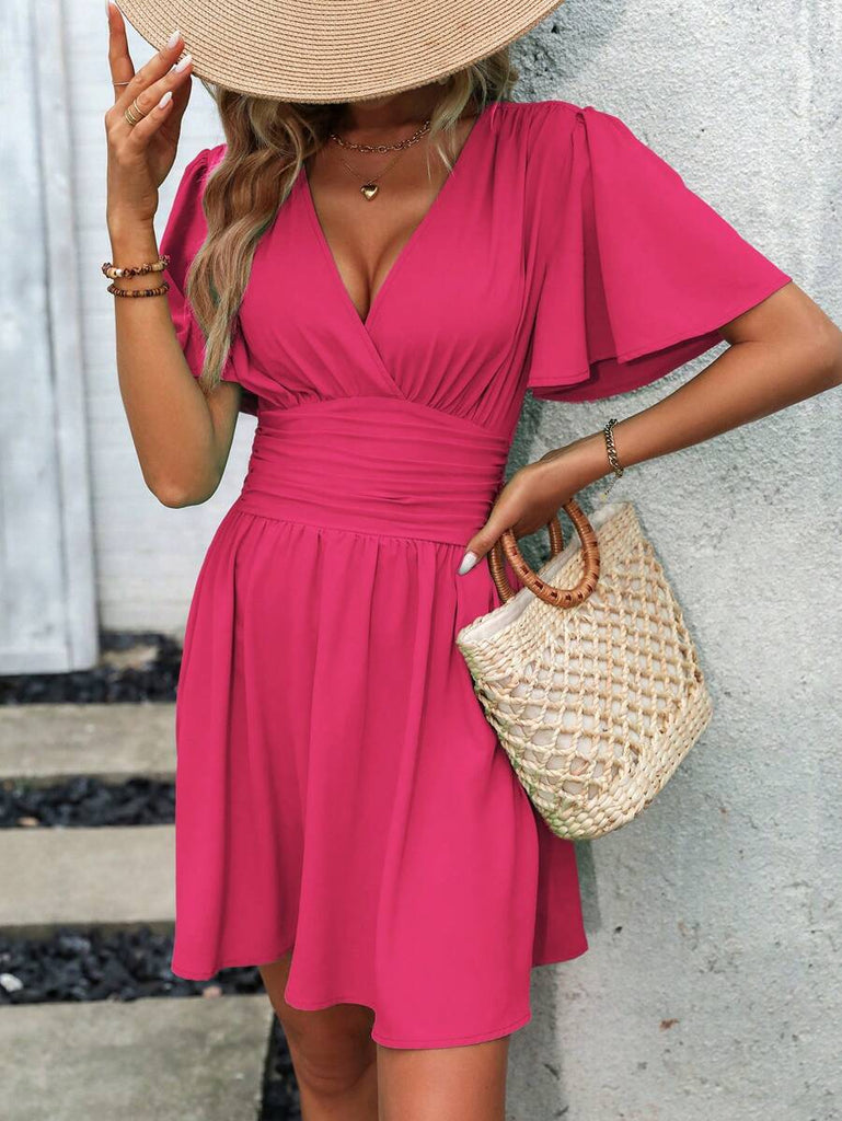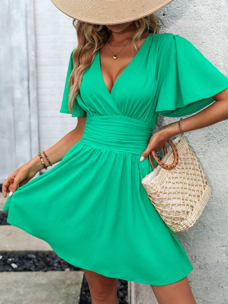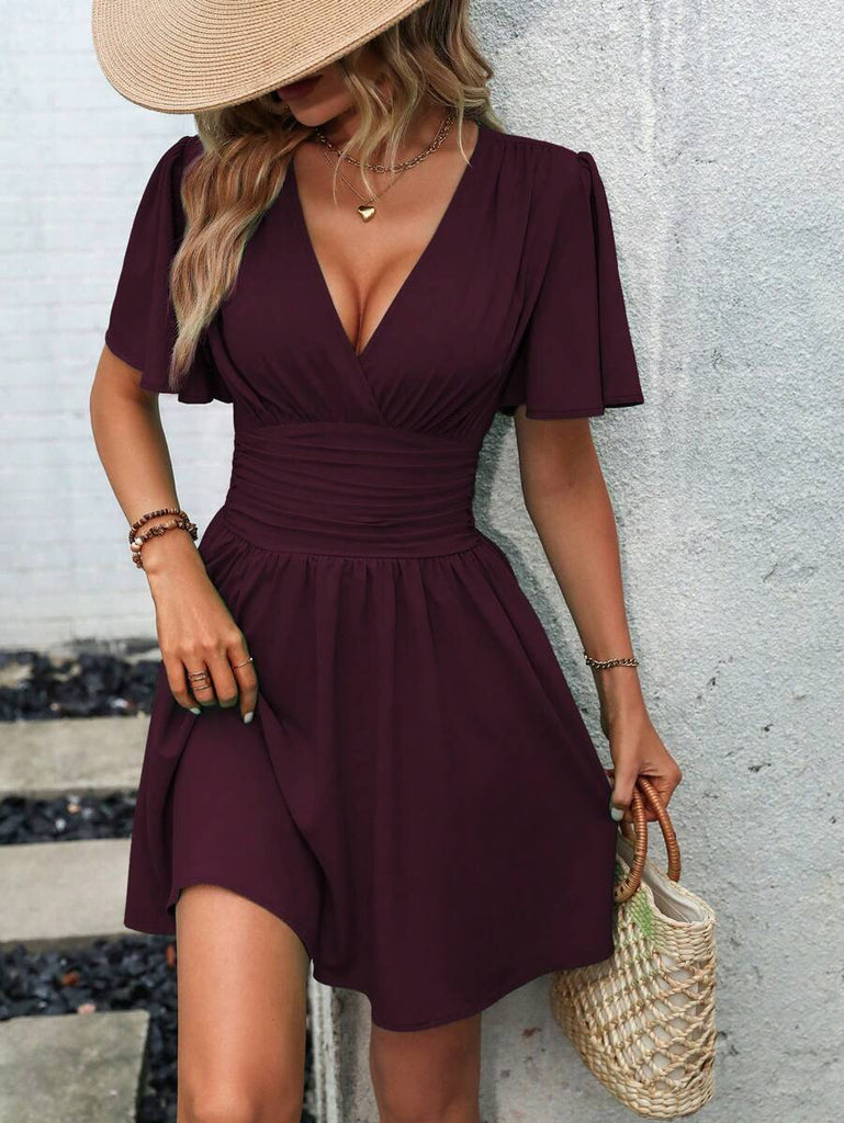 Women's EMERY ROSE Solid Crossed V-Neck Ruffle Sexy Mini Dress
