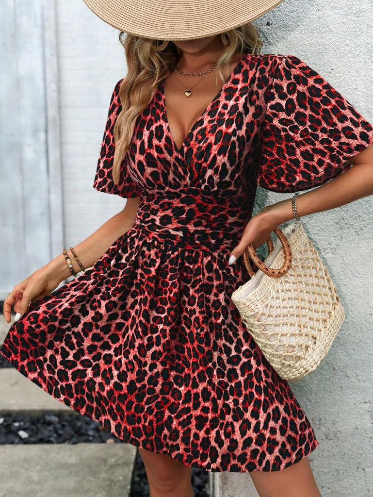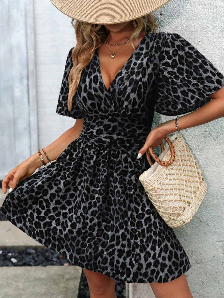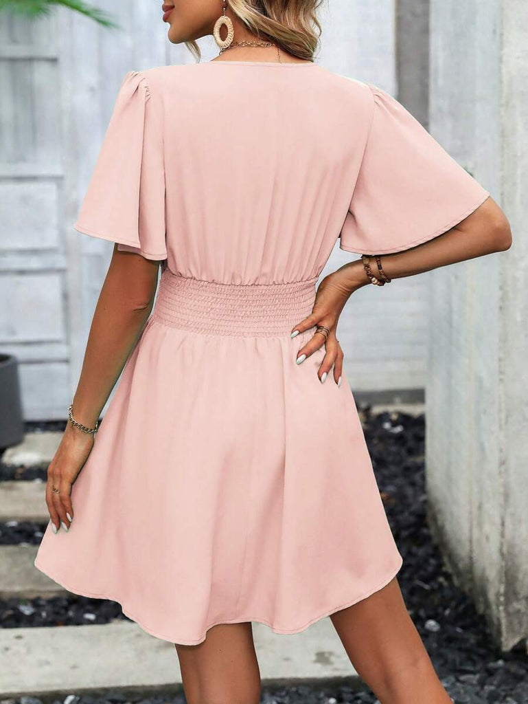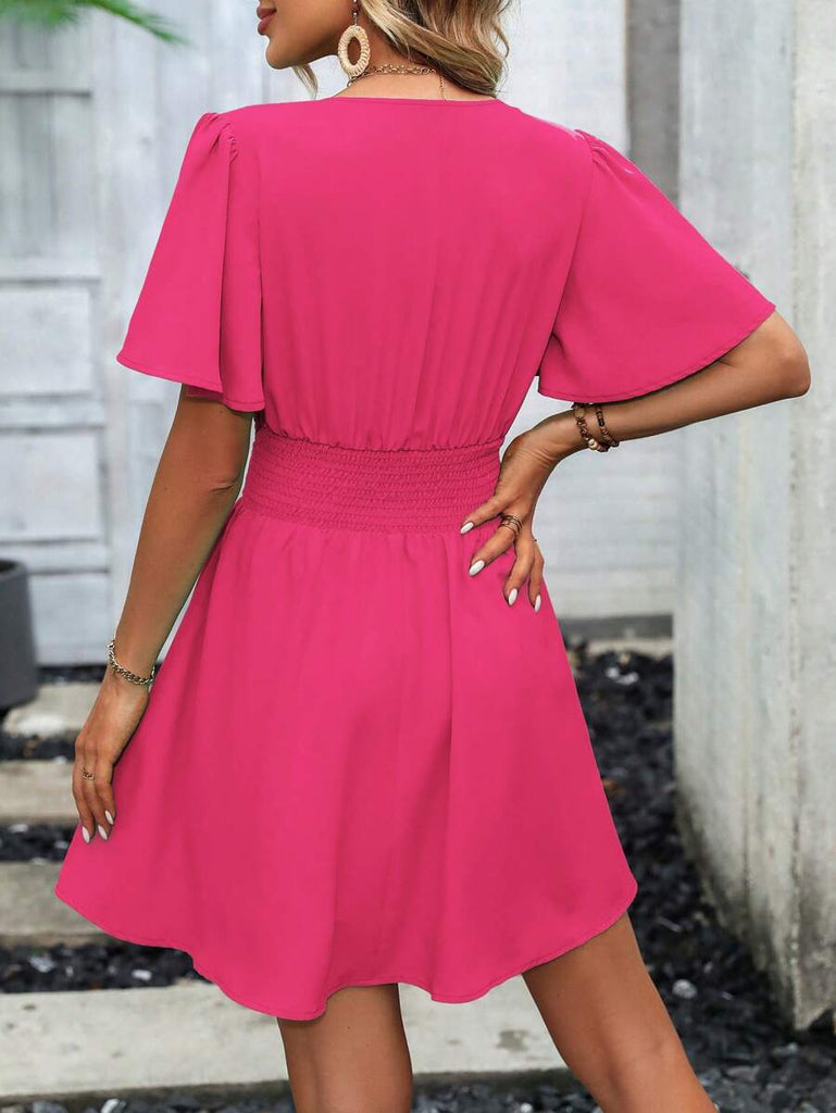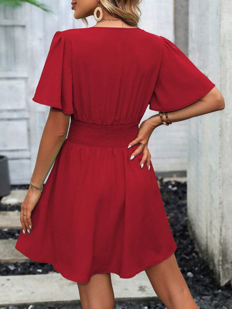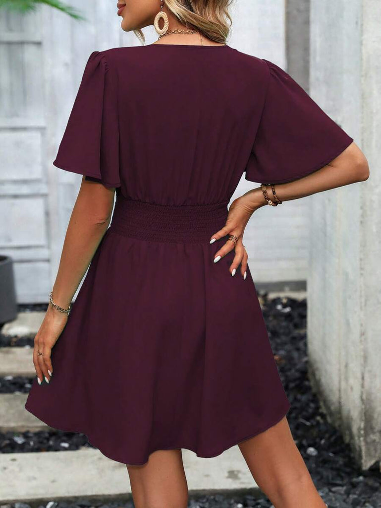 Women's EMERY ROSE Solid Crossed V-Neck Ruffle Sexy Mini Dress