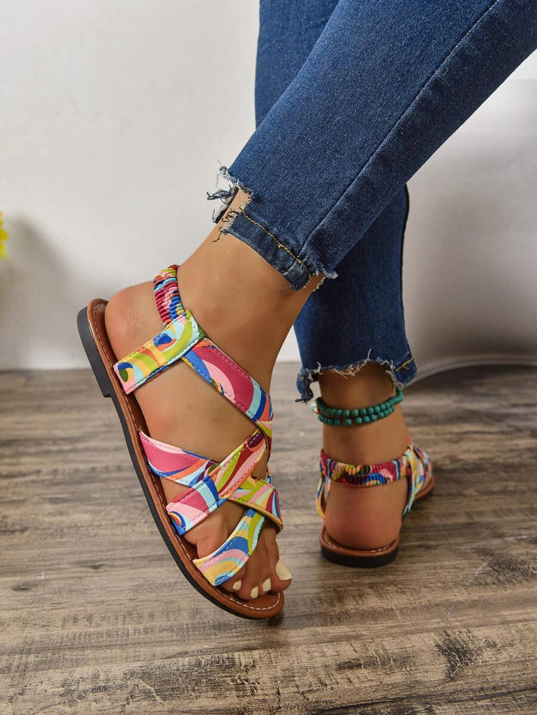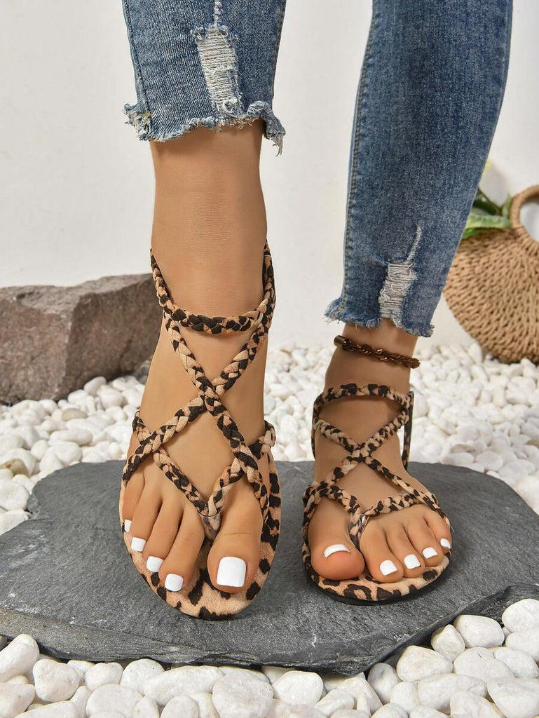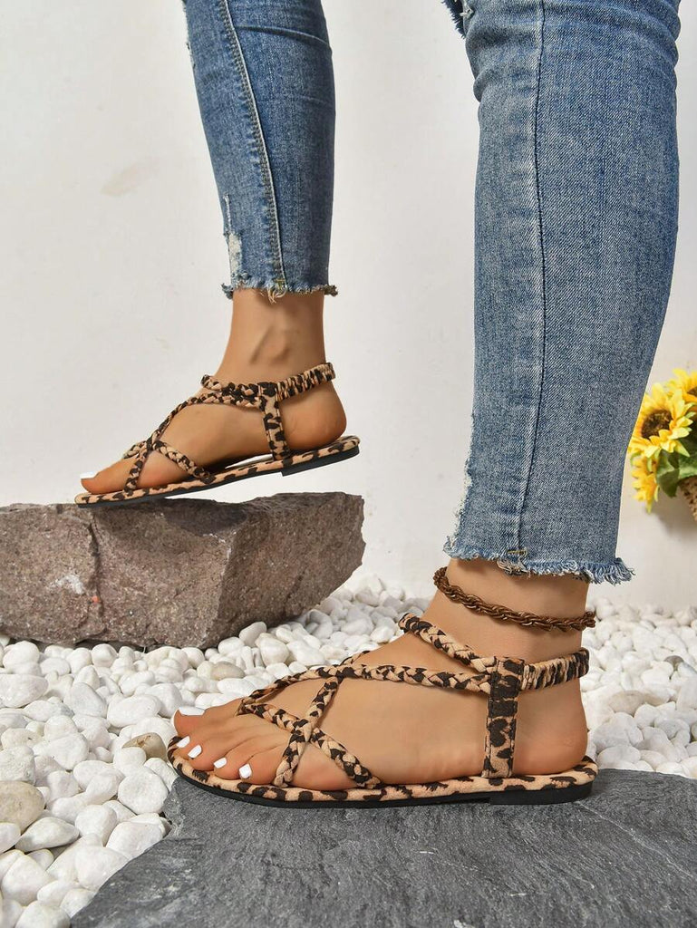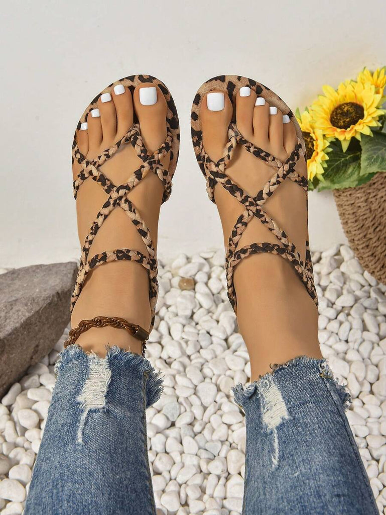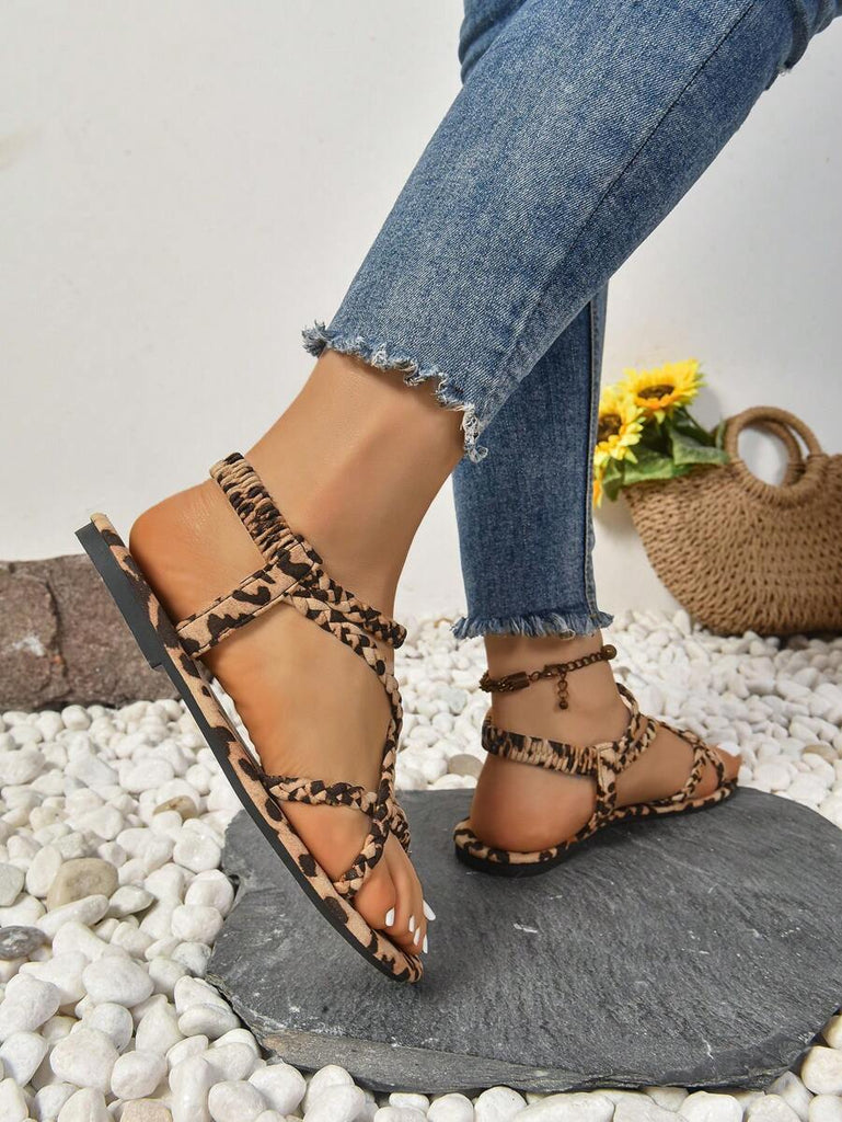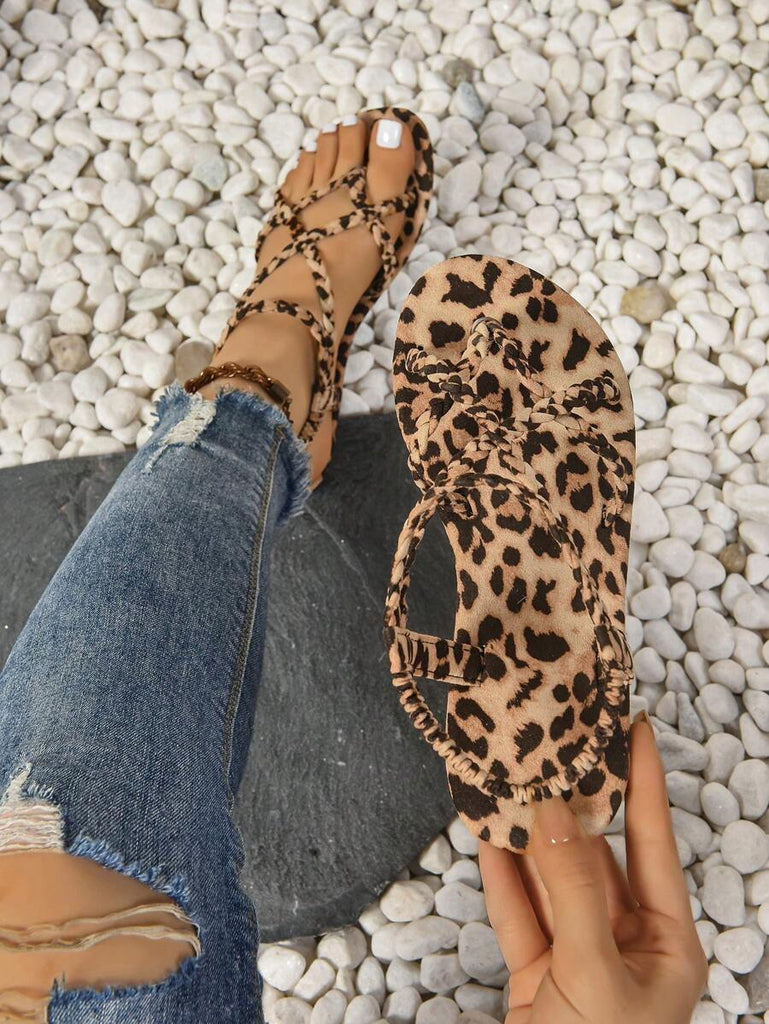Peep Toe Sexy Leopard Print Slim Heel 2025 Simple & Comfortable Fabric Flat Women Summer Sandals