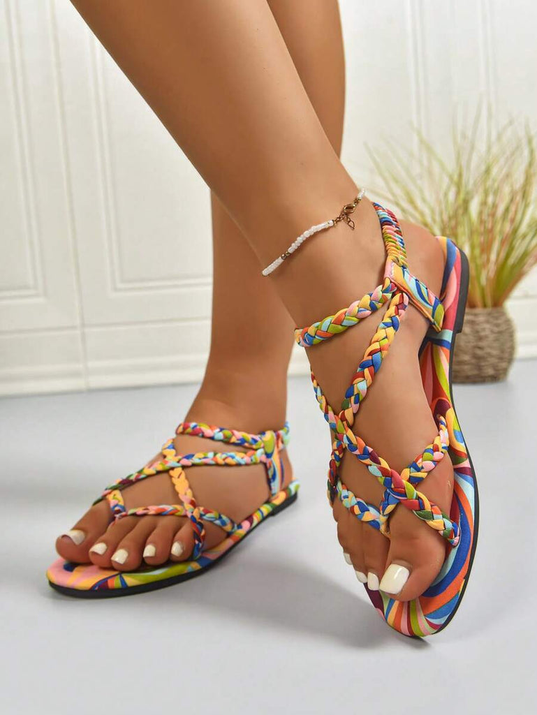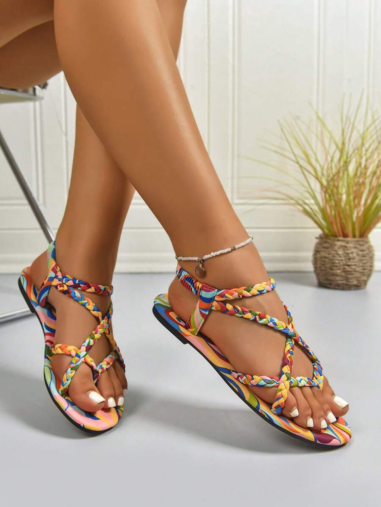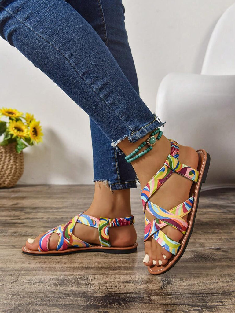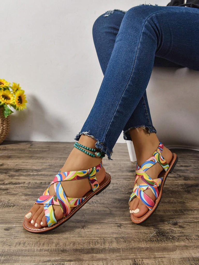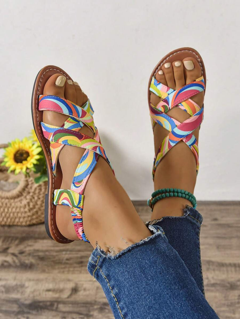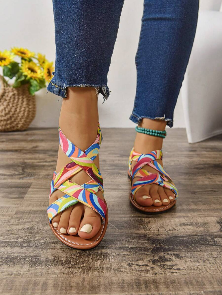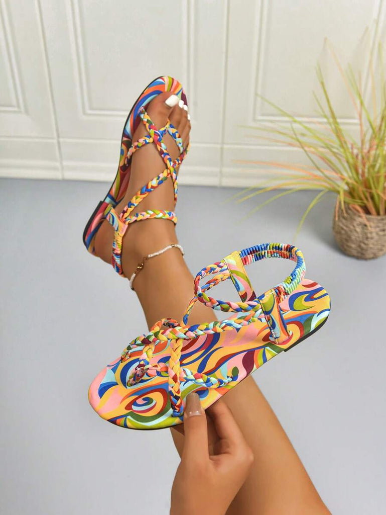 Peep Toe Sexy Leopard Print Slim Heel 2025 Simple & Comfortable Fabric Flat Women Summer Sandals