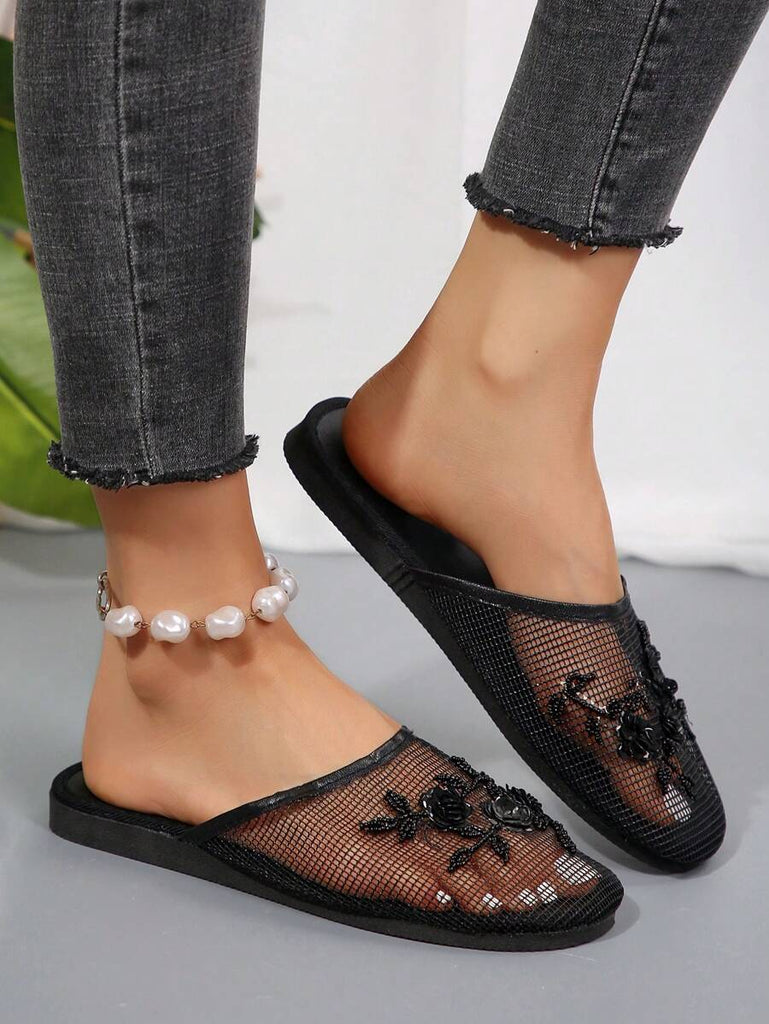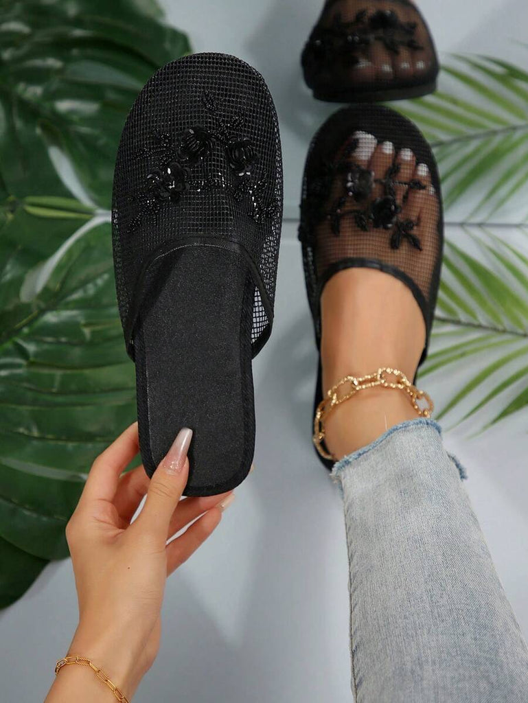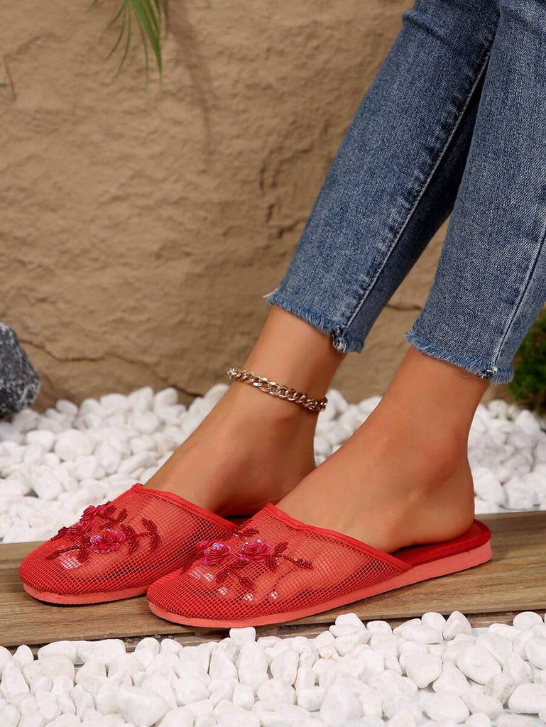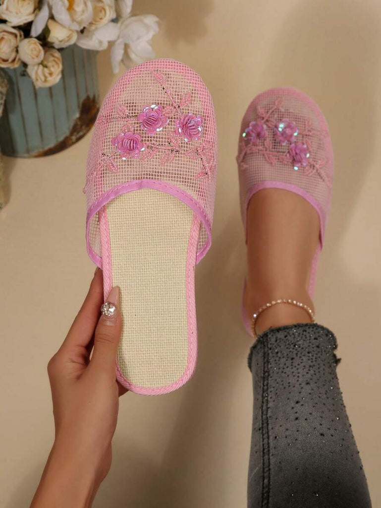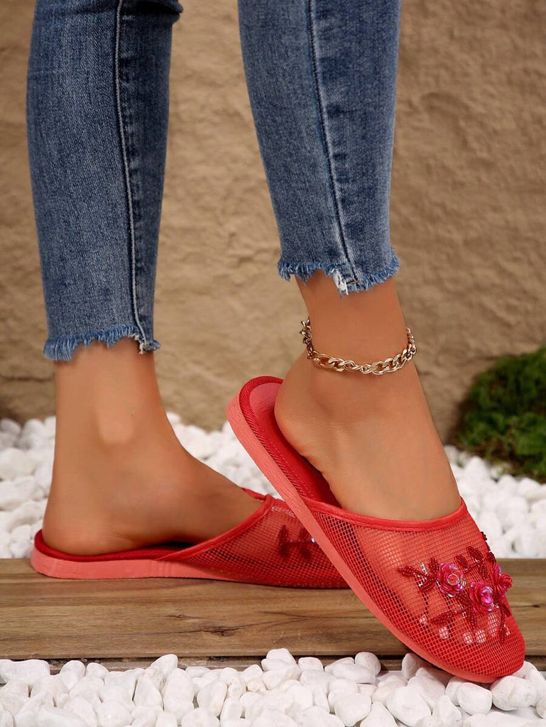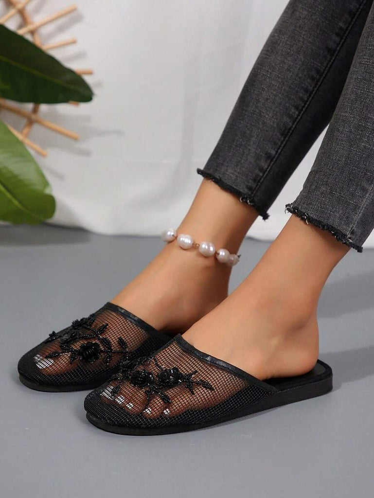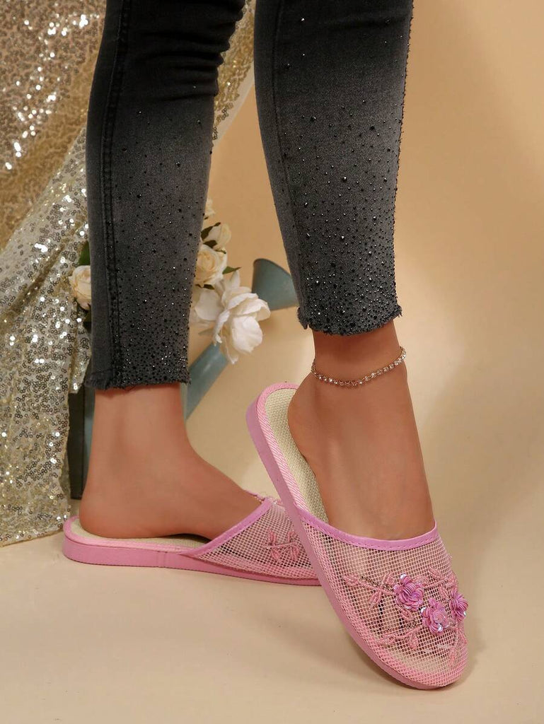 Women's Floral Design Breathable Slip-On Mule Slippers
