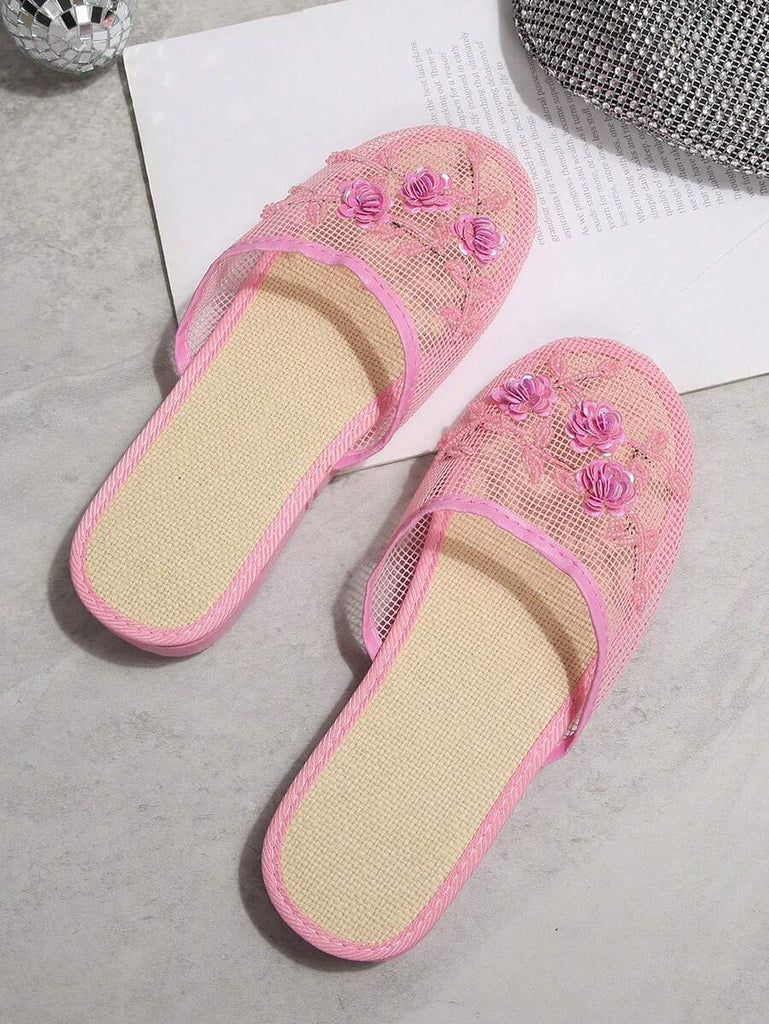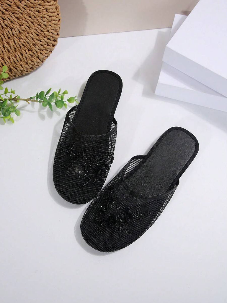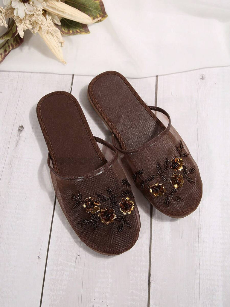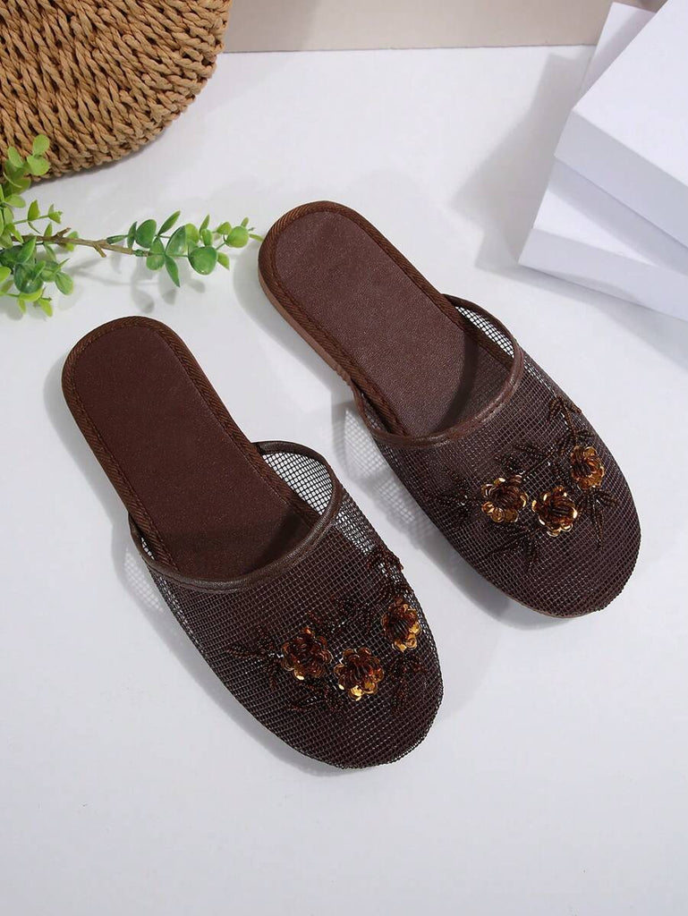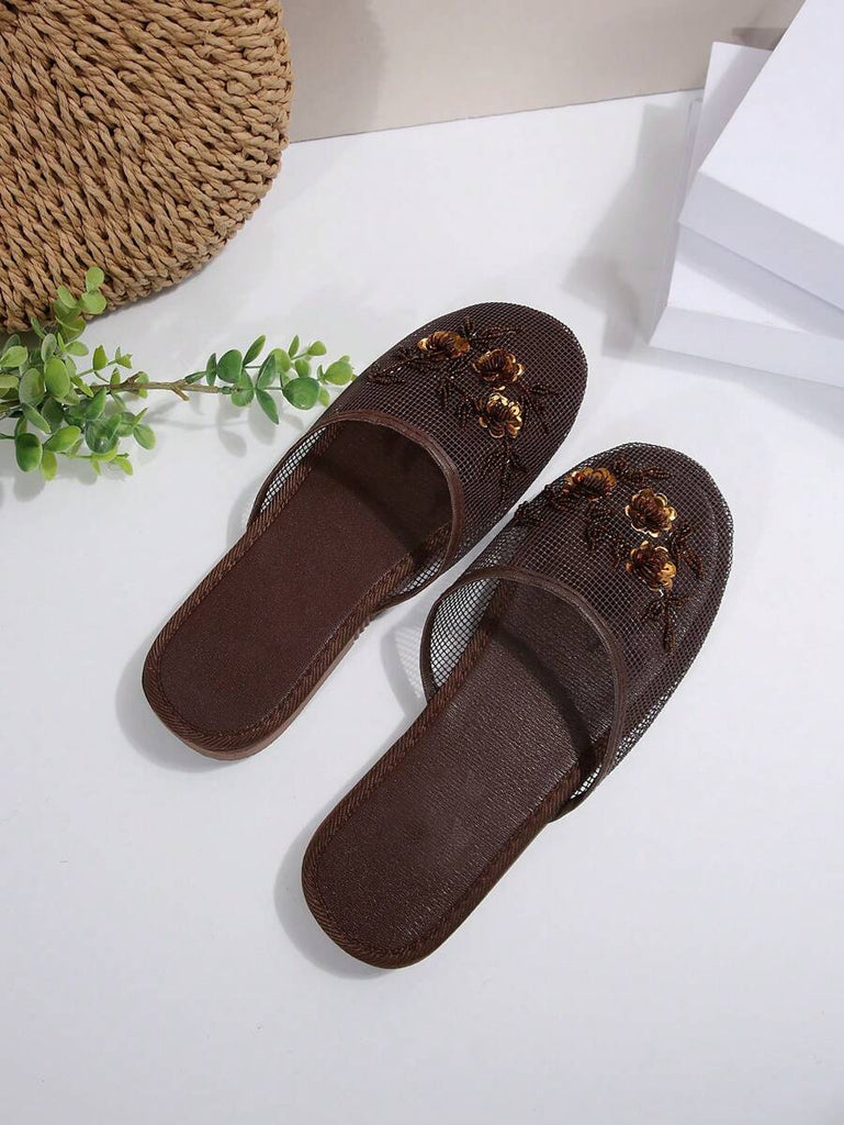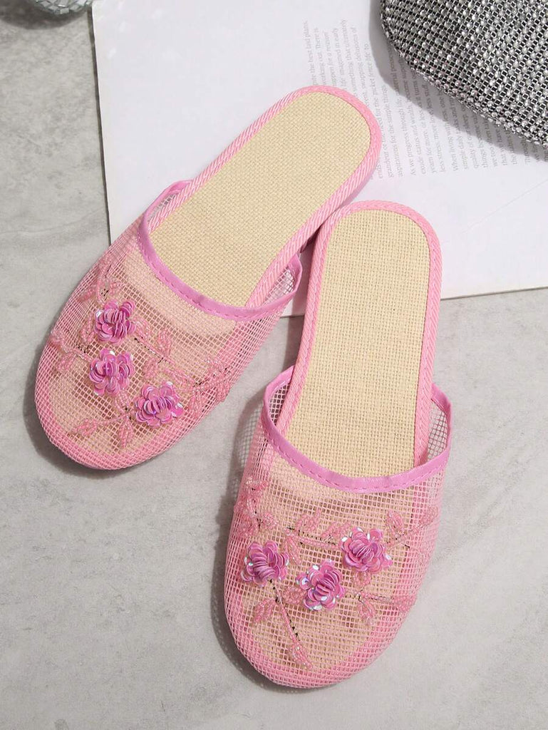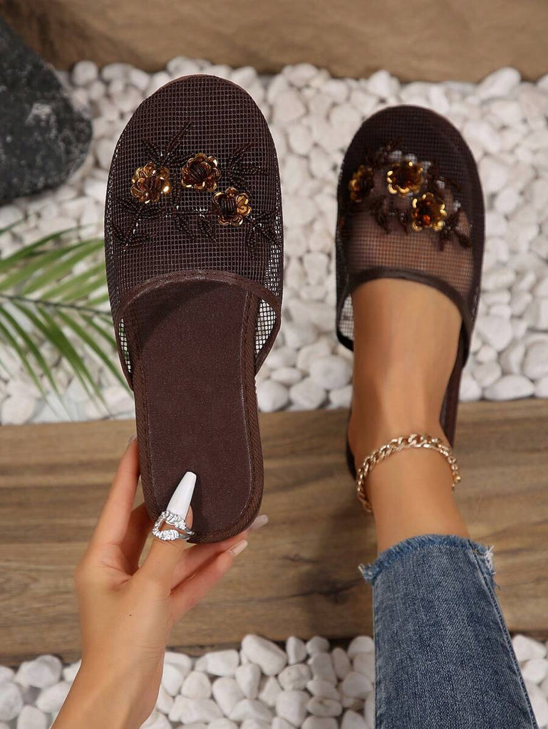 Women's Floral Design Breathable Slip-On Mule Slippers