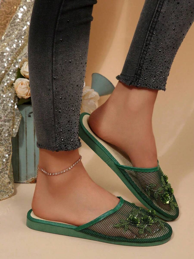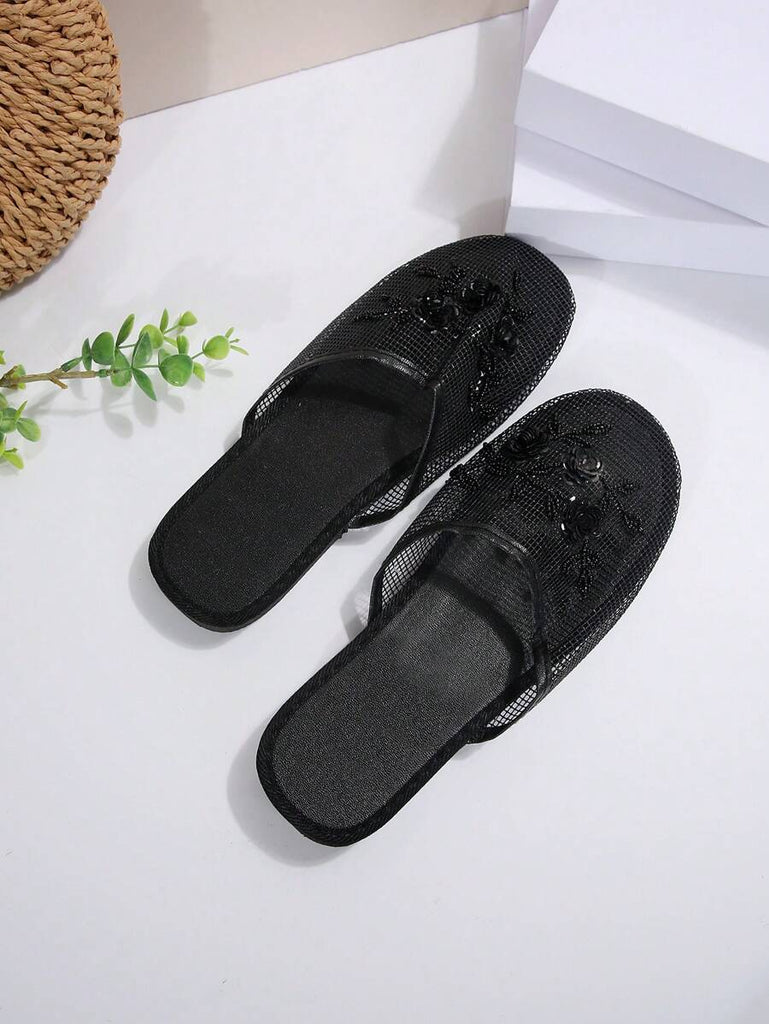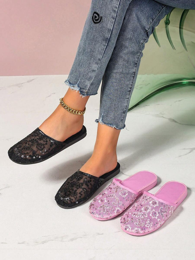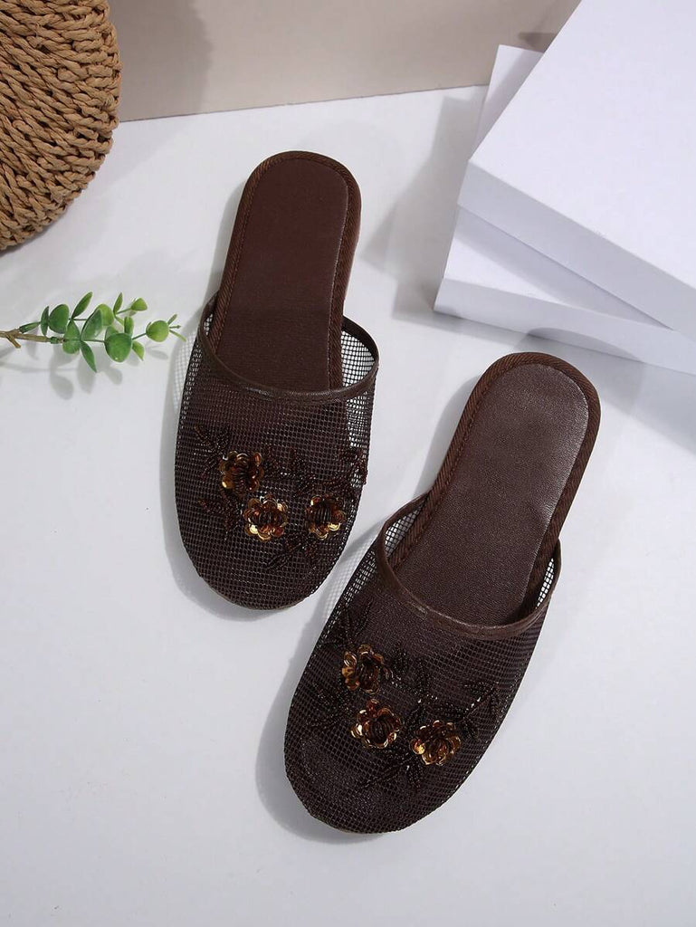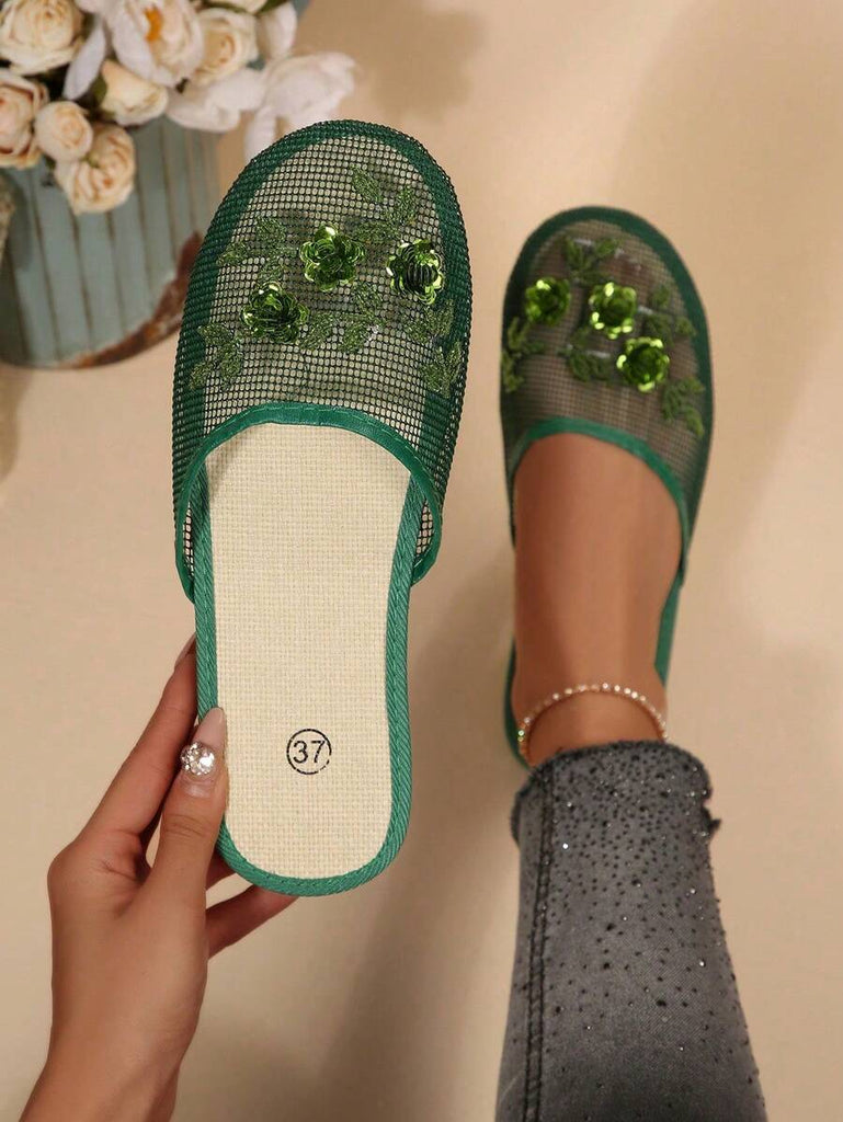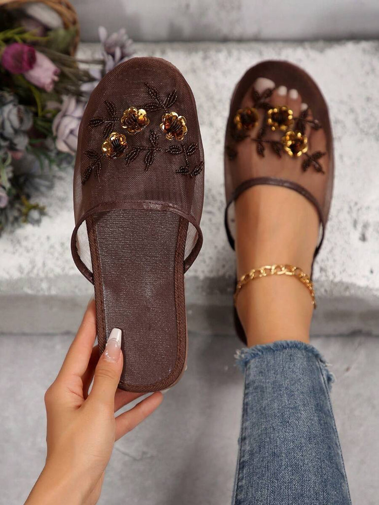Women's Floral Design Breathable Slip-On Mule Slippers