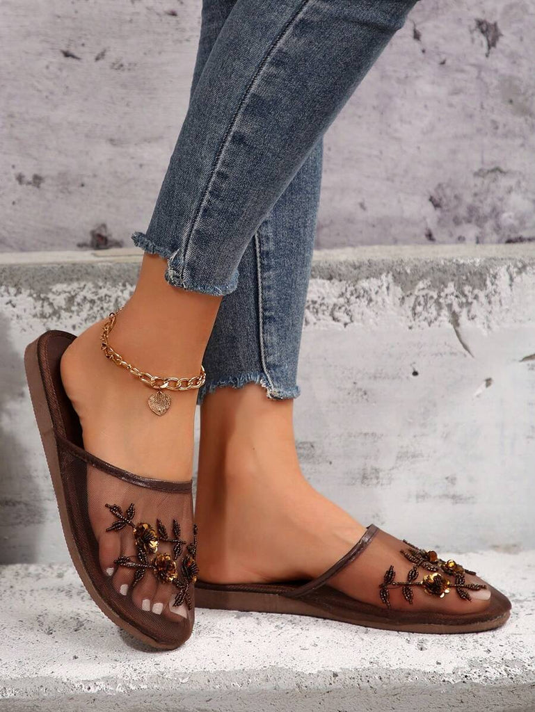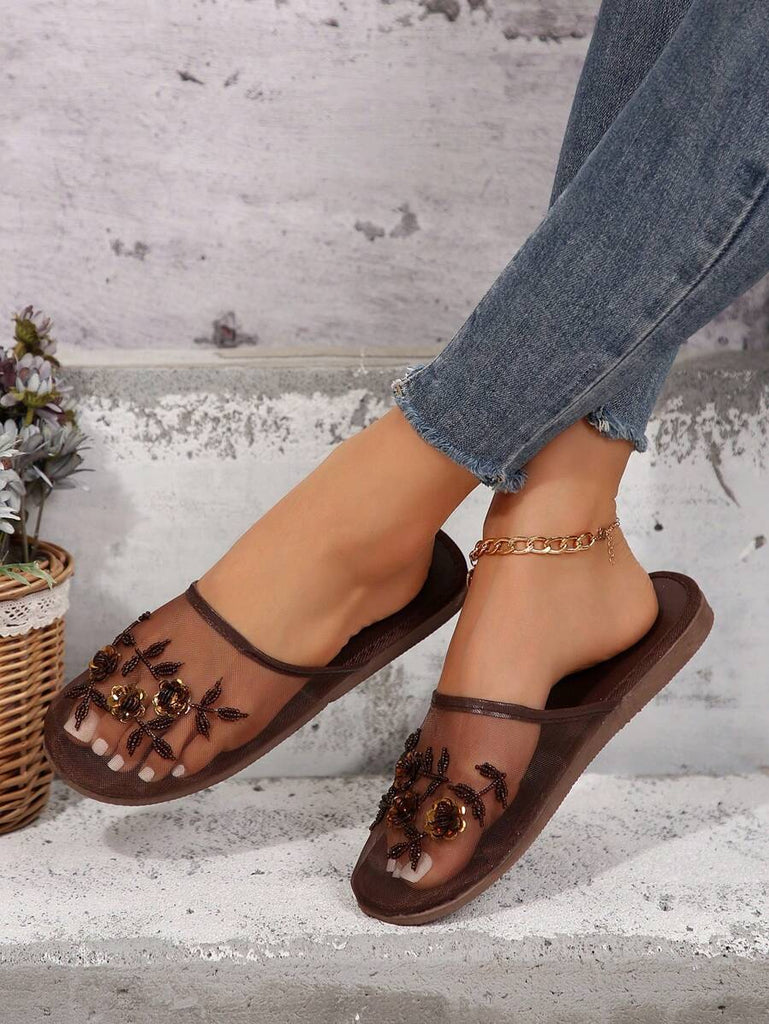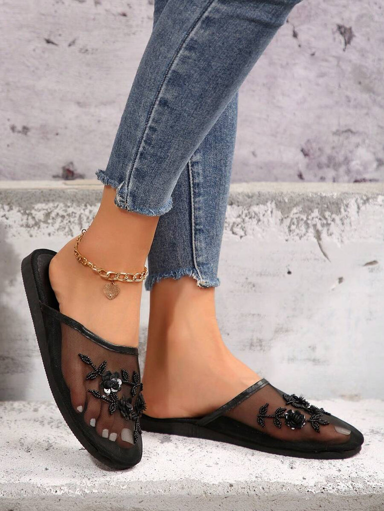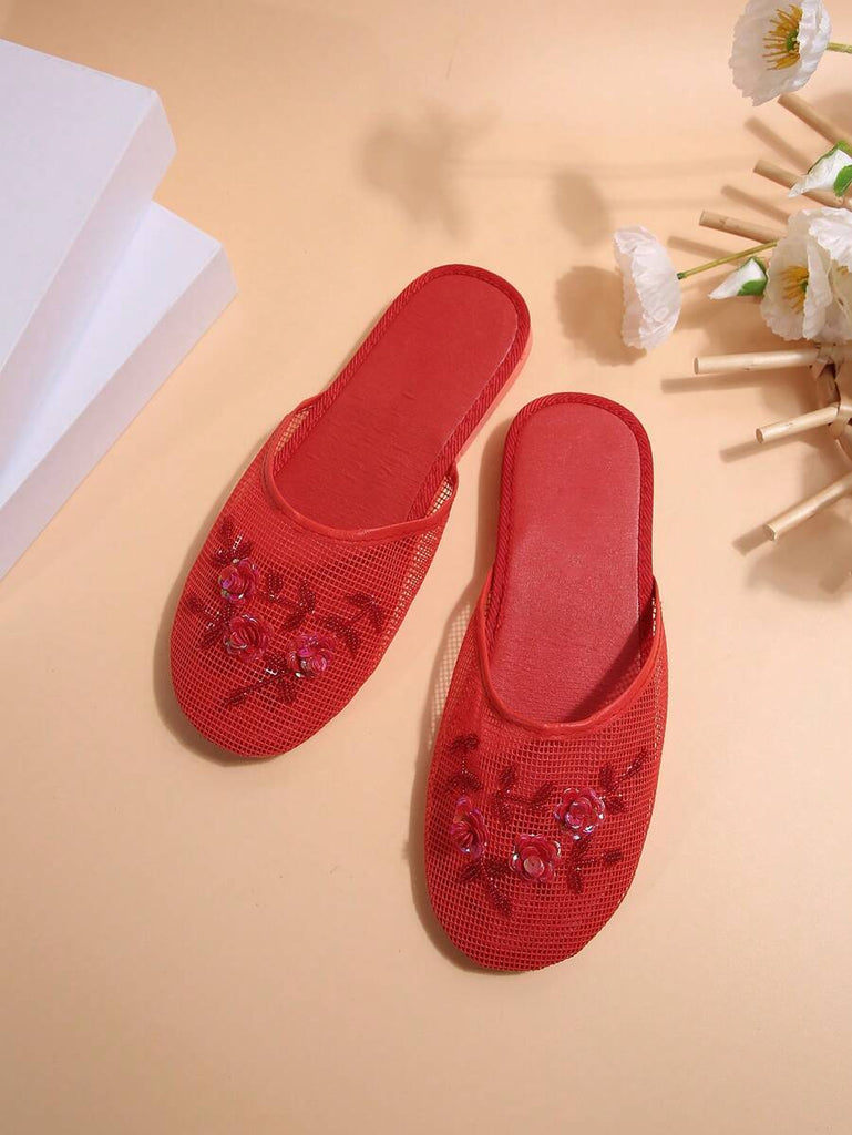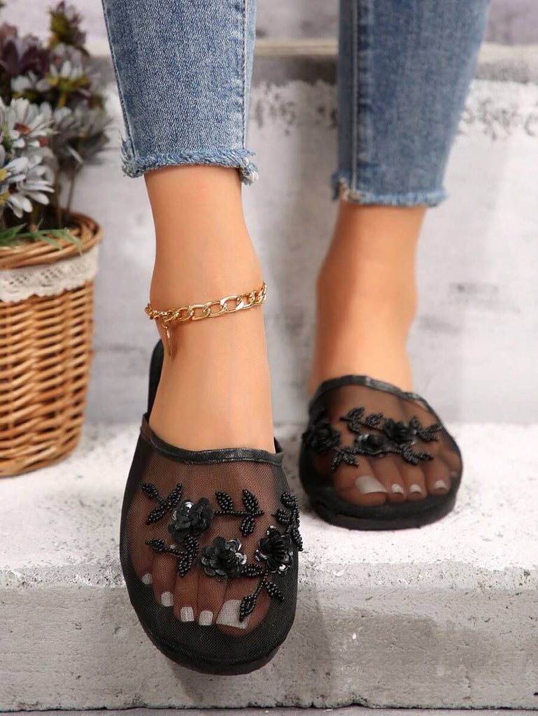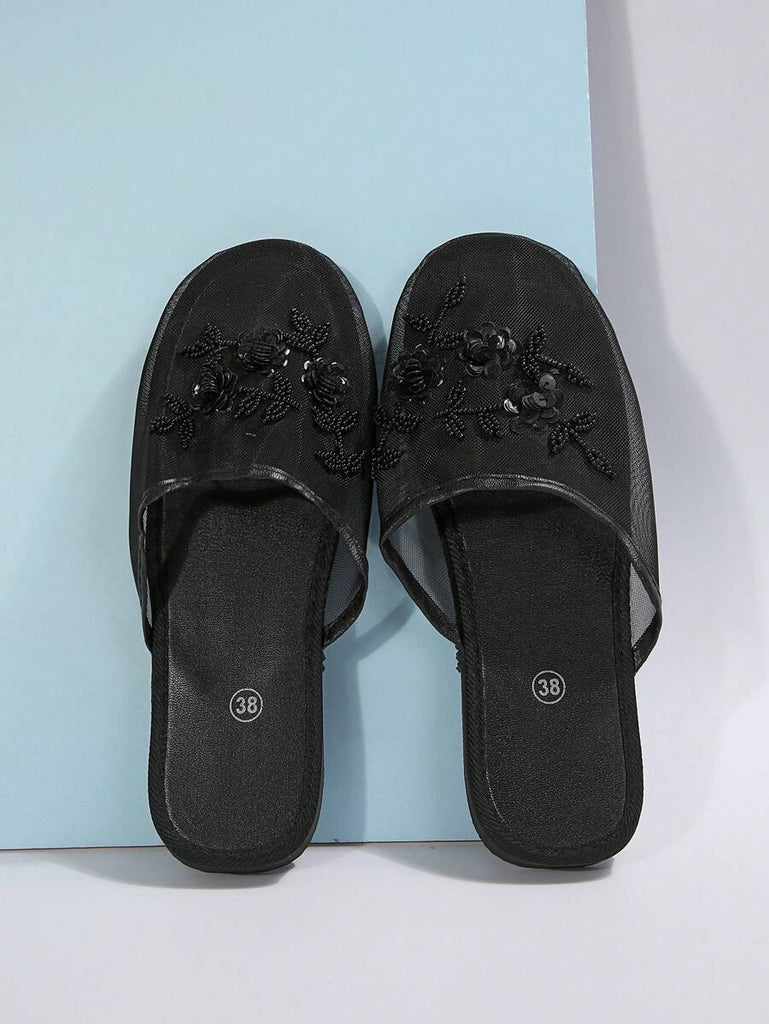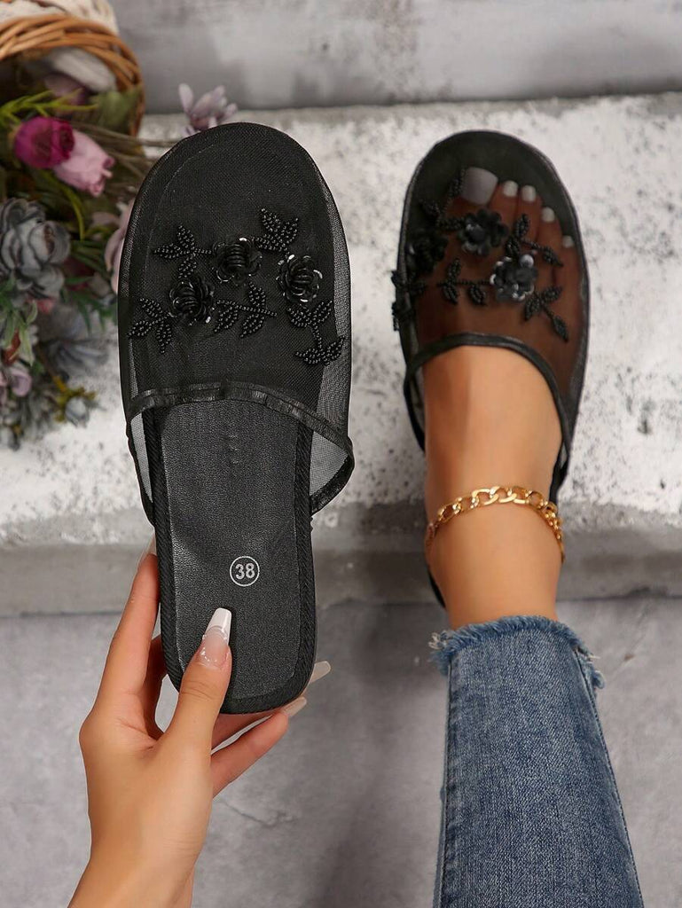 Women's Floral Design Breathable Slip-On Mule Slippers