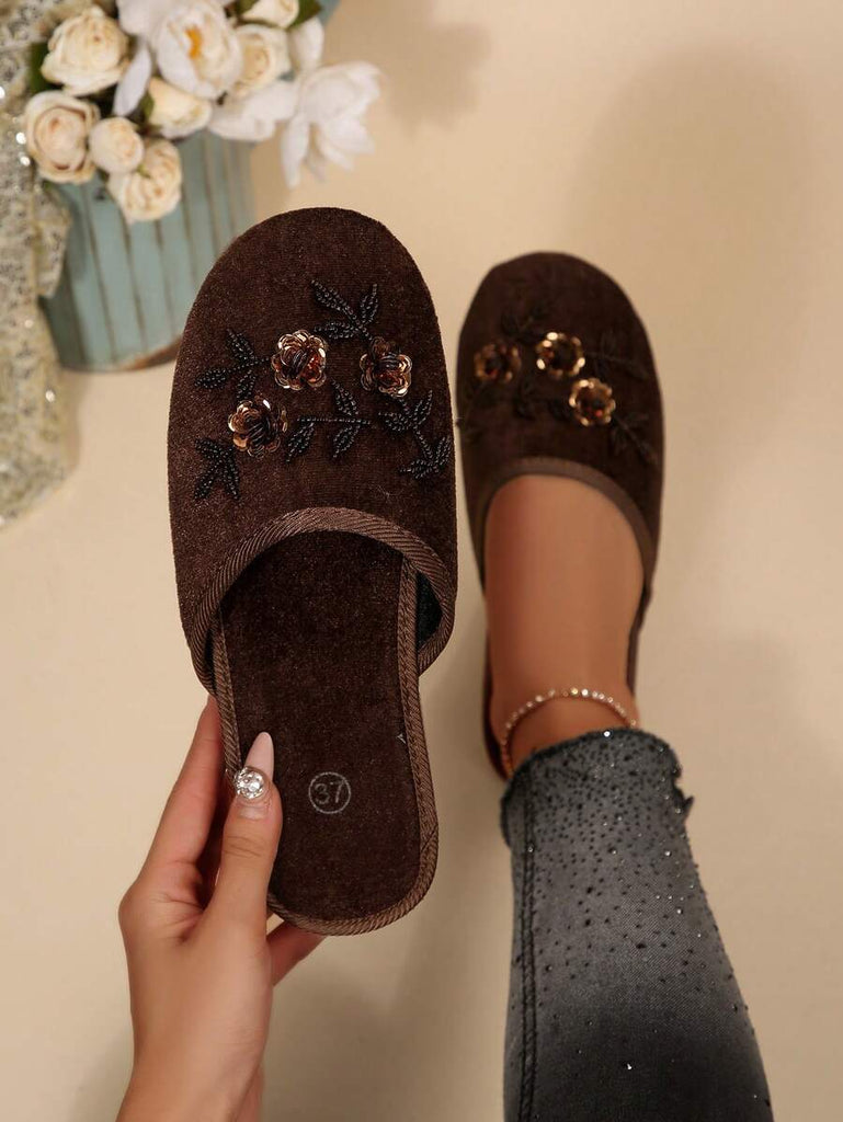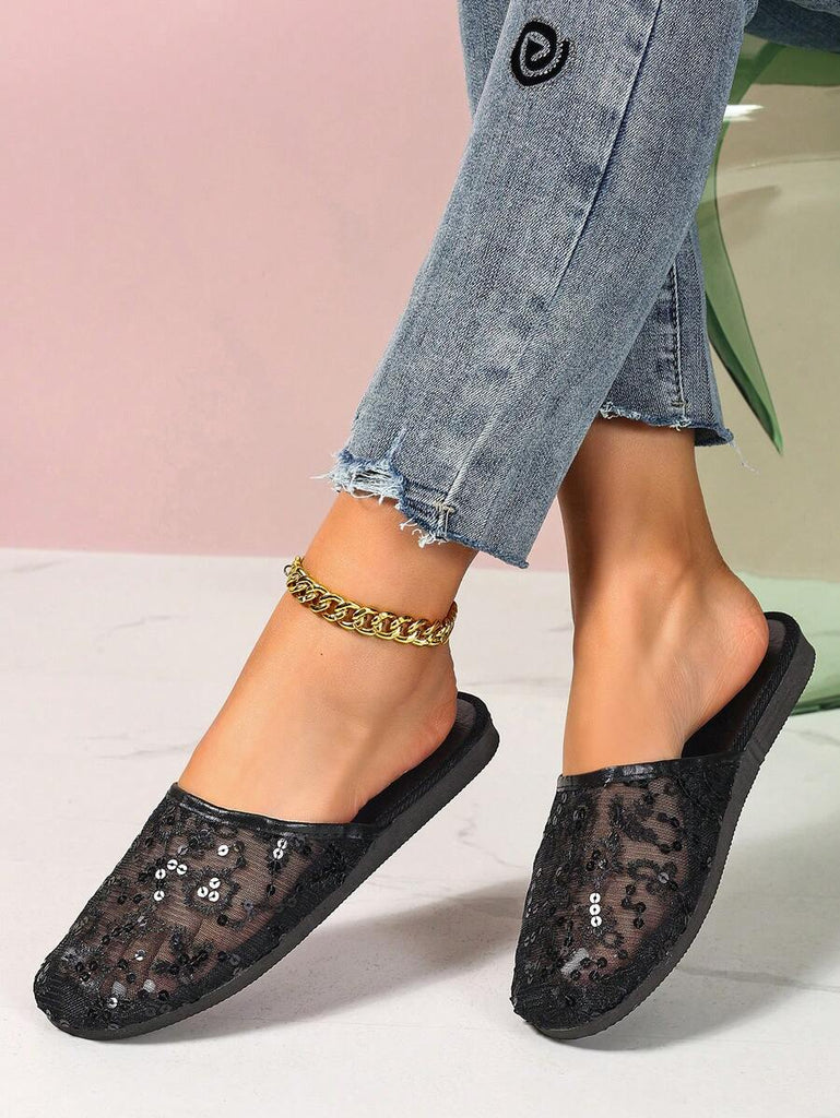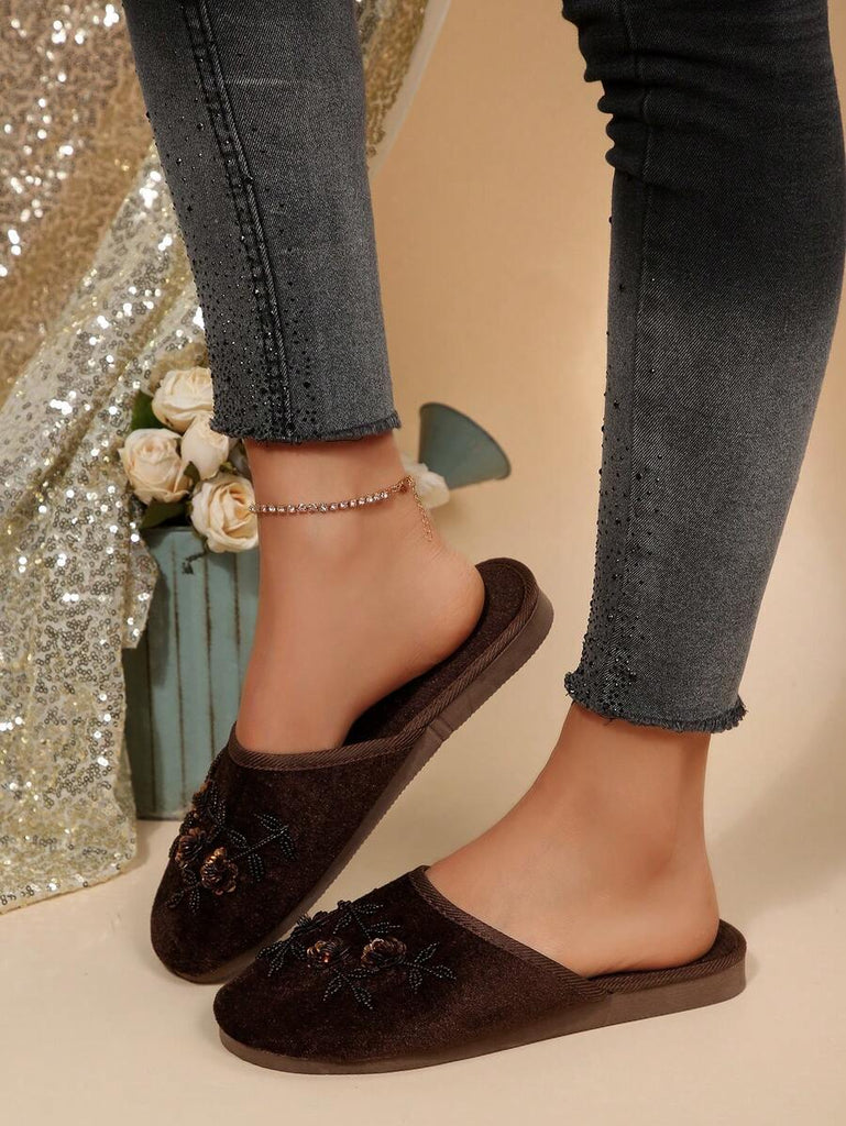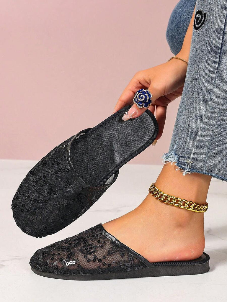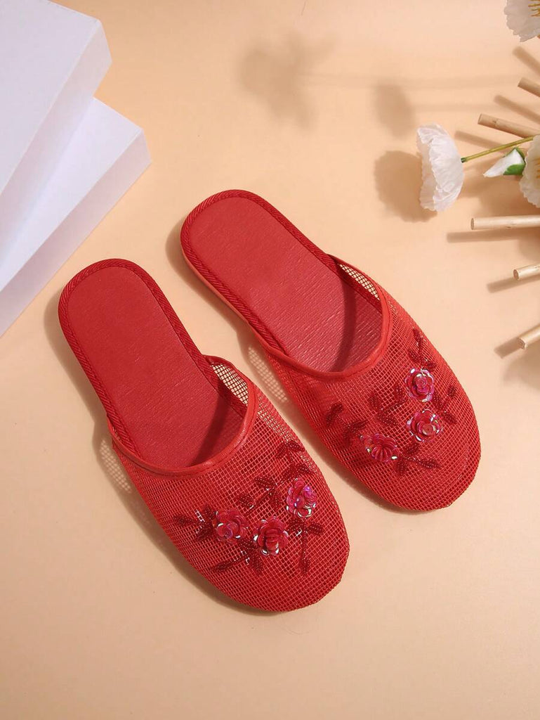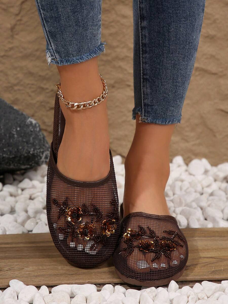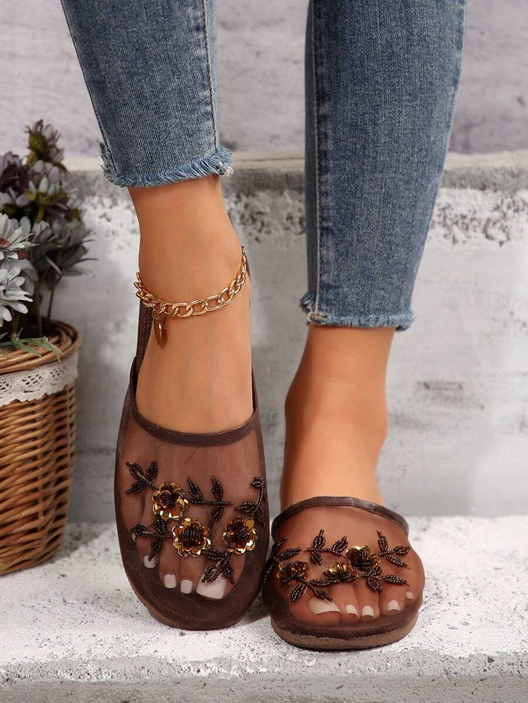 Women's Floral Design Breathable Slip-On Mule Slippers