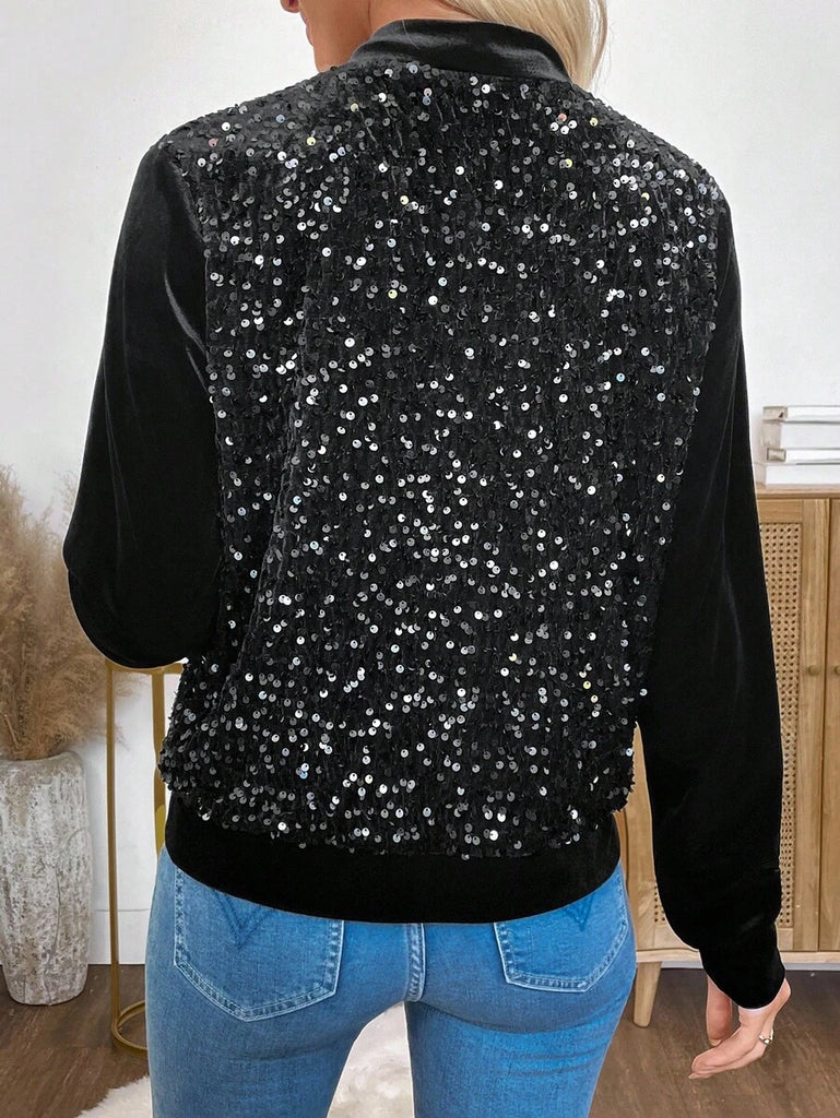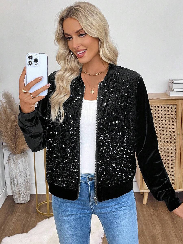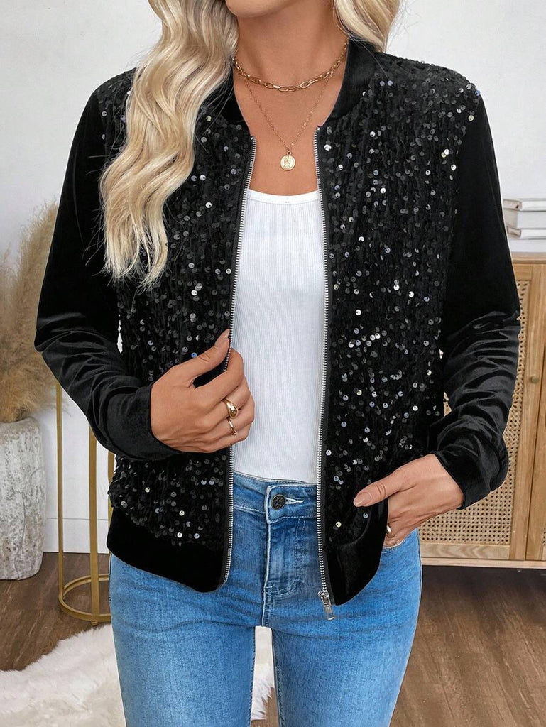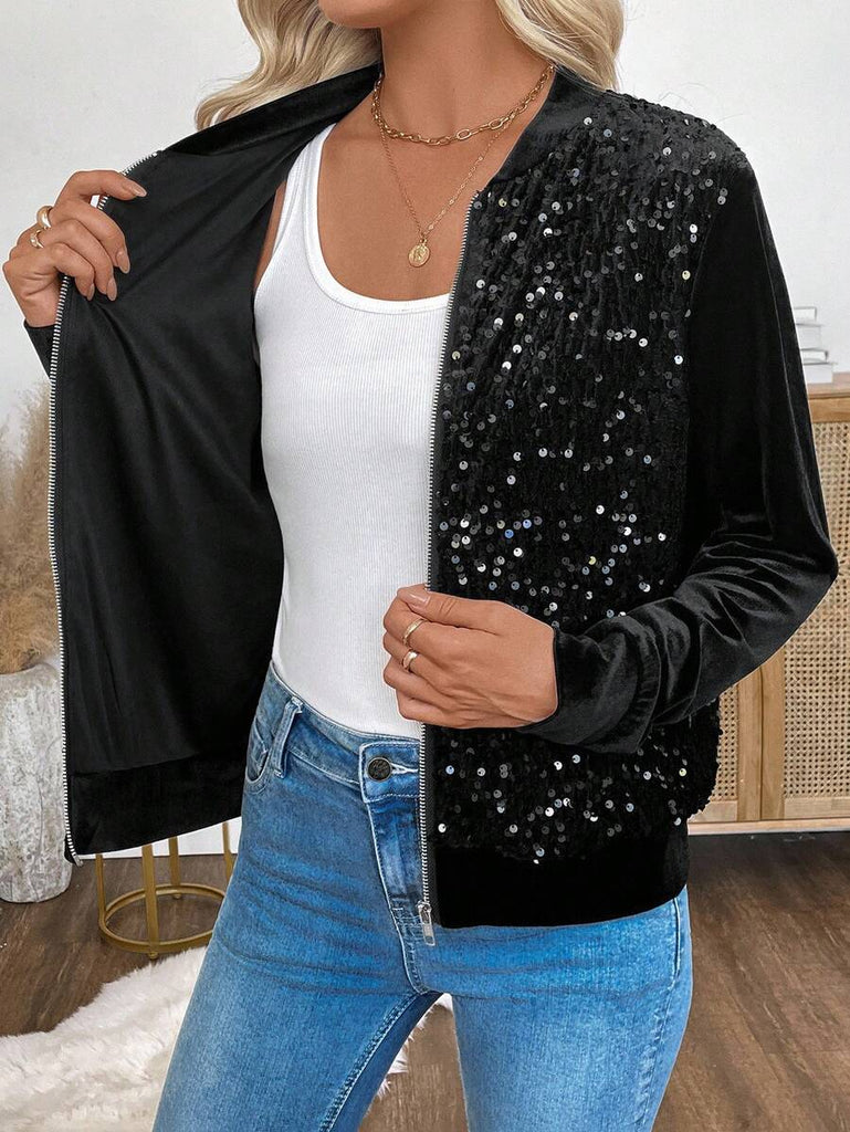 Women's Fashionable Commuter Sequin Patchwork Jacket