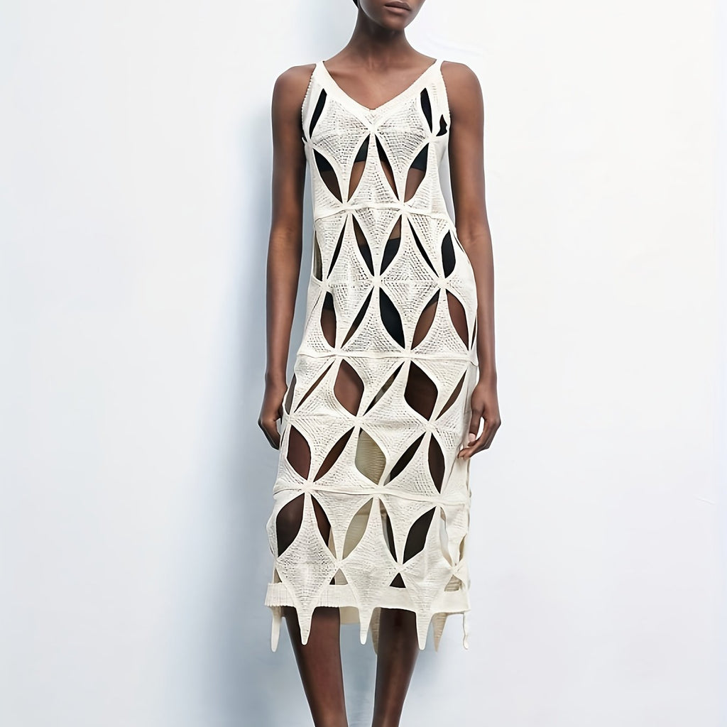 Women's Spring-Summer New Elegant Fashionable Apricot Hollow Dress