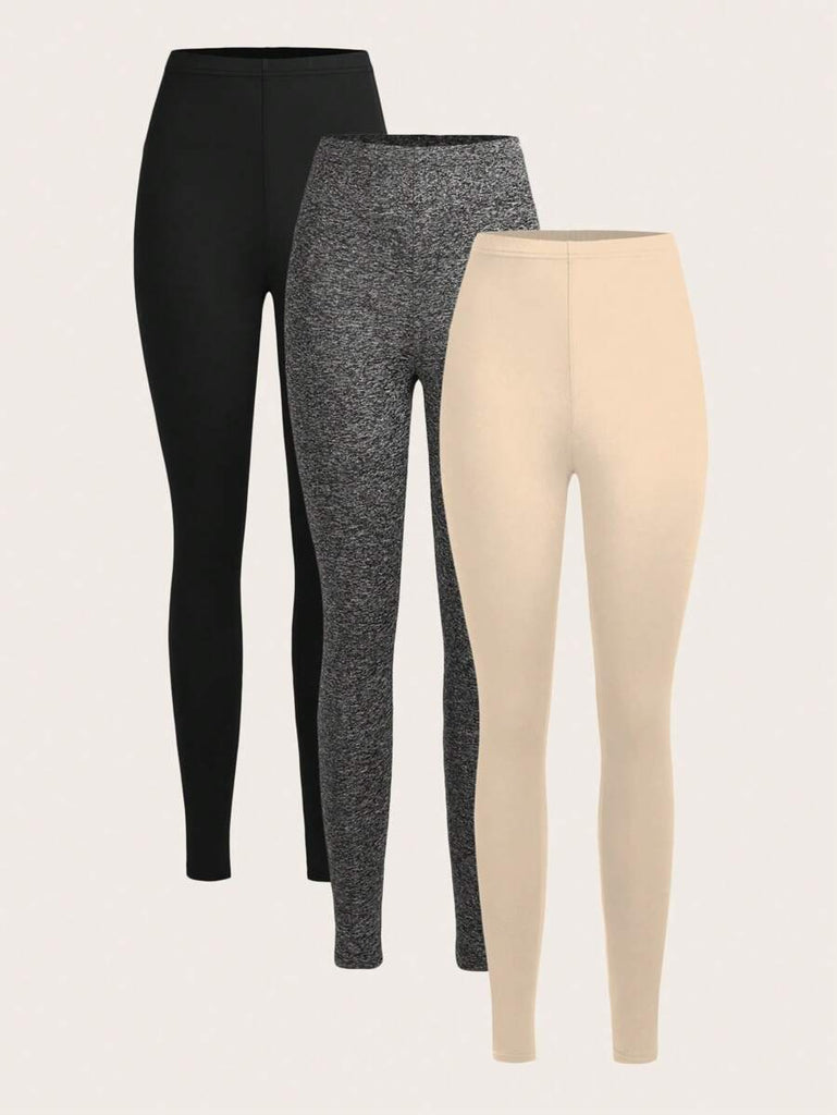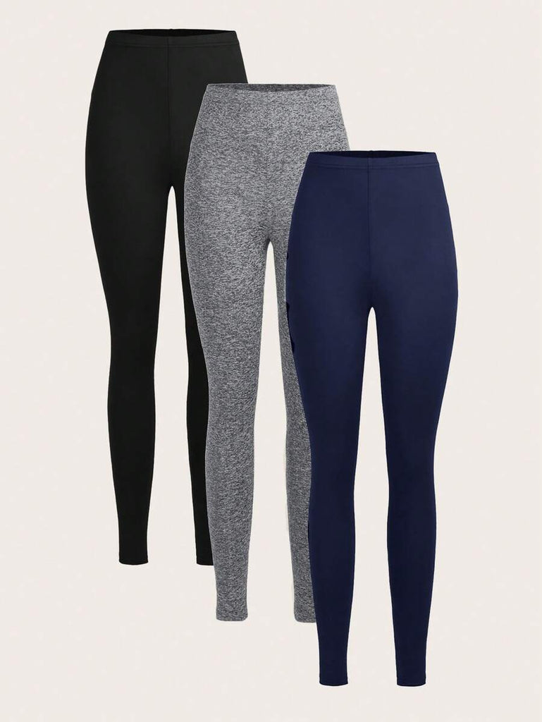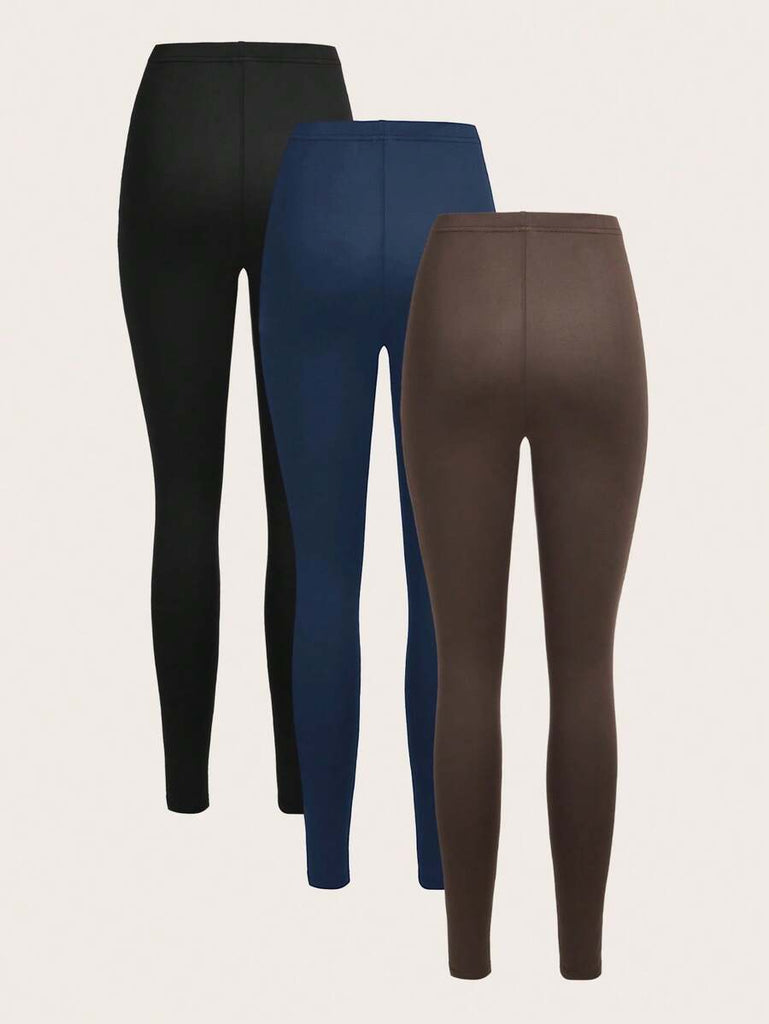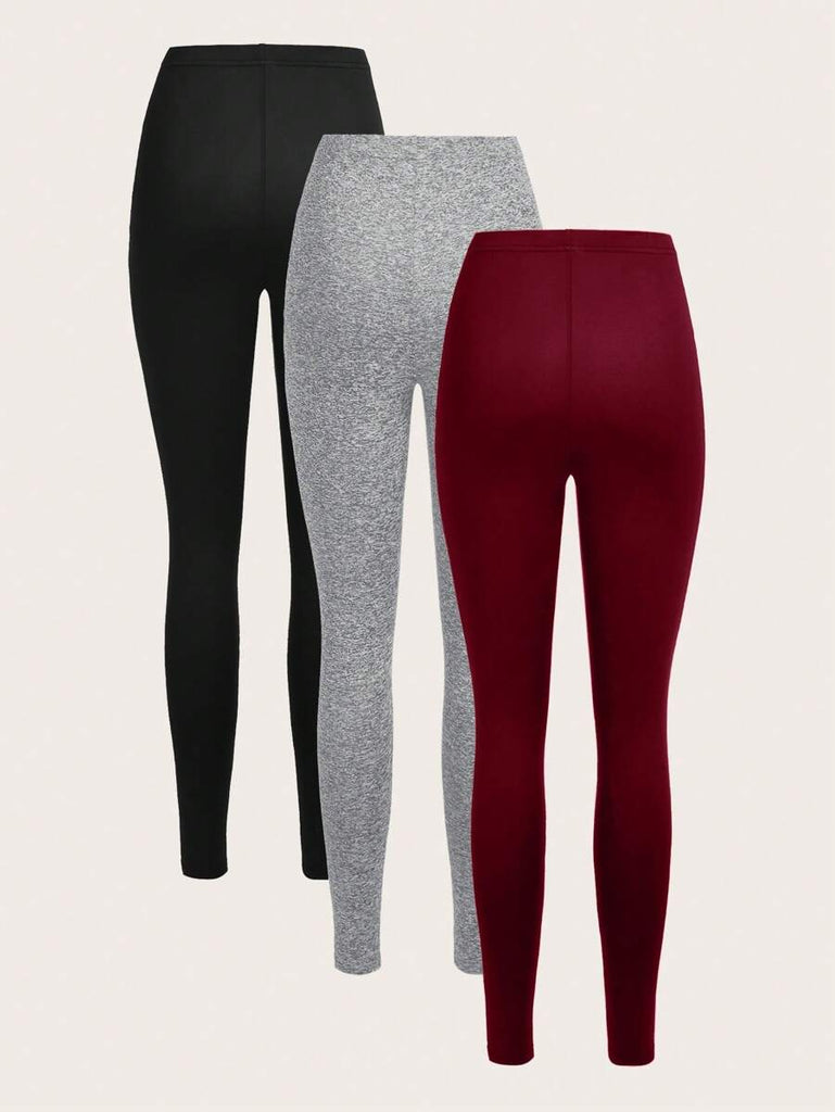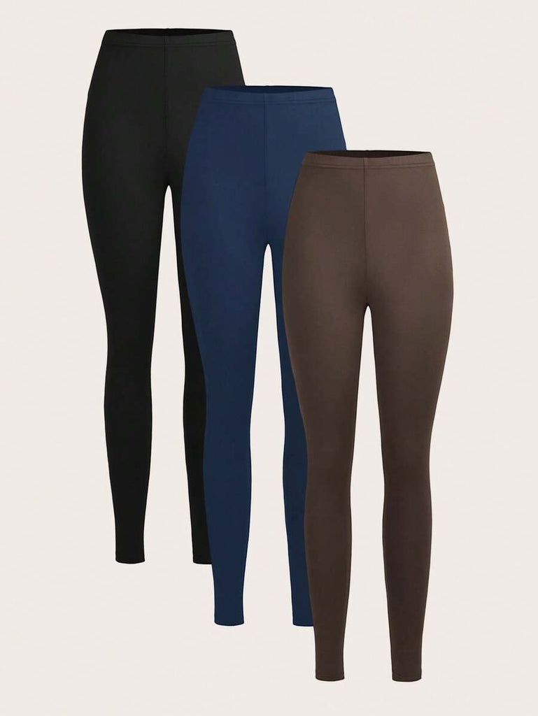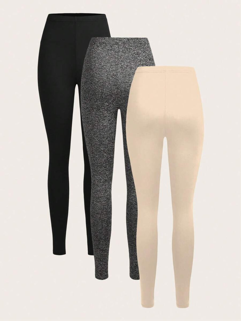 Women's 3pcs Solid Color Versatile Slim Fit Leggings