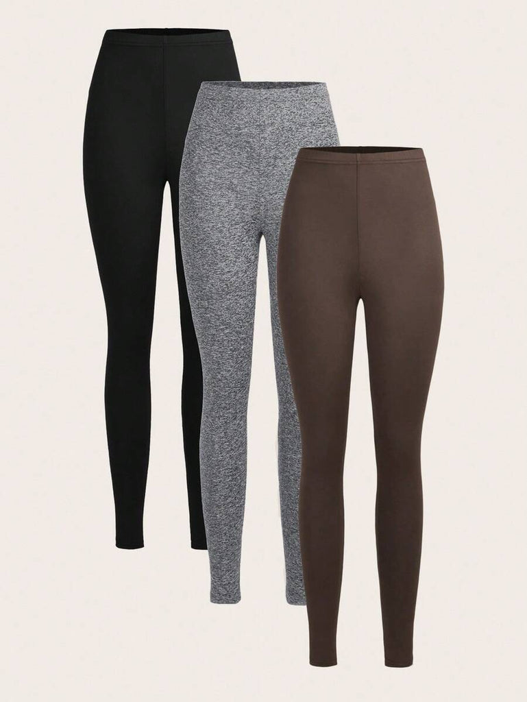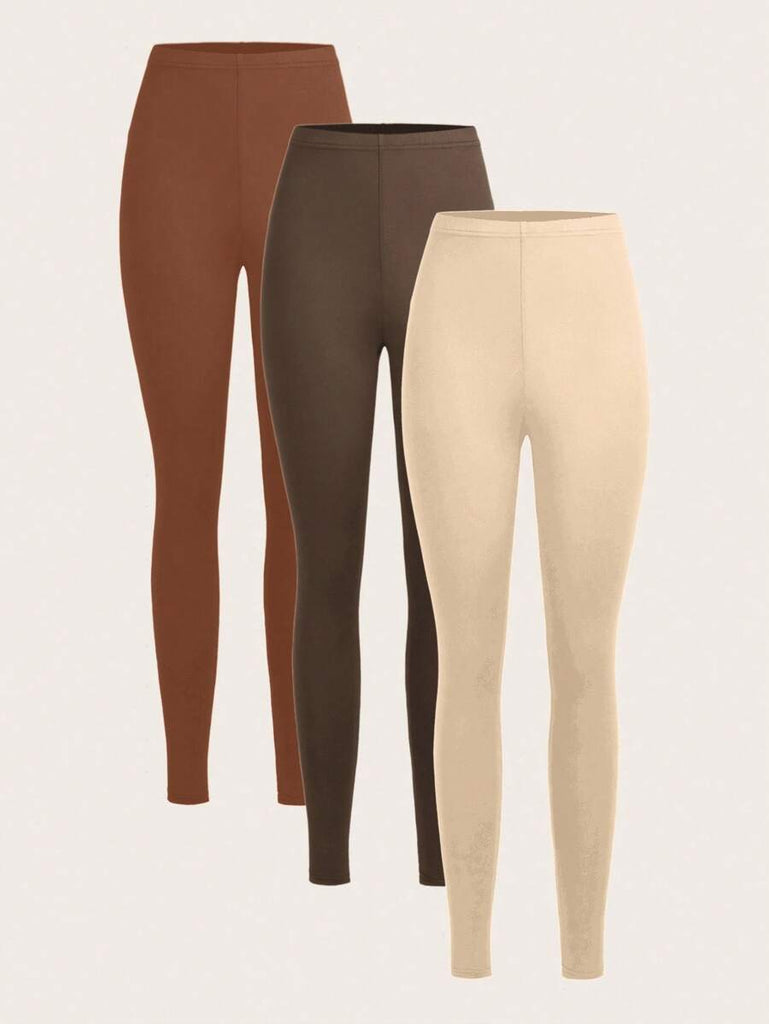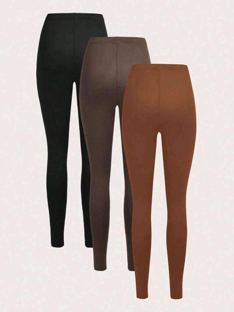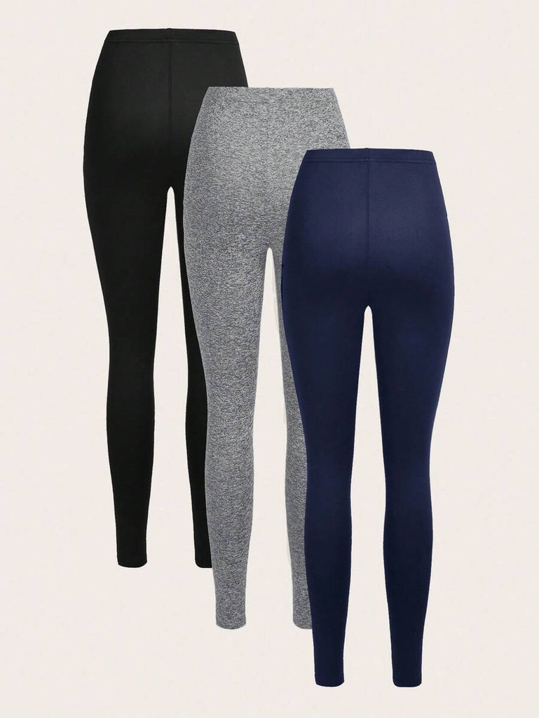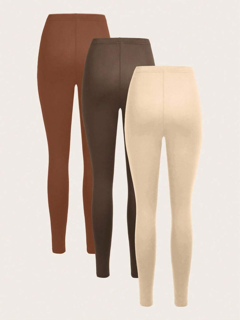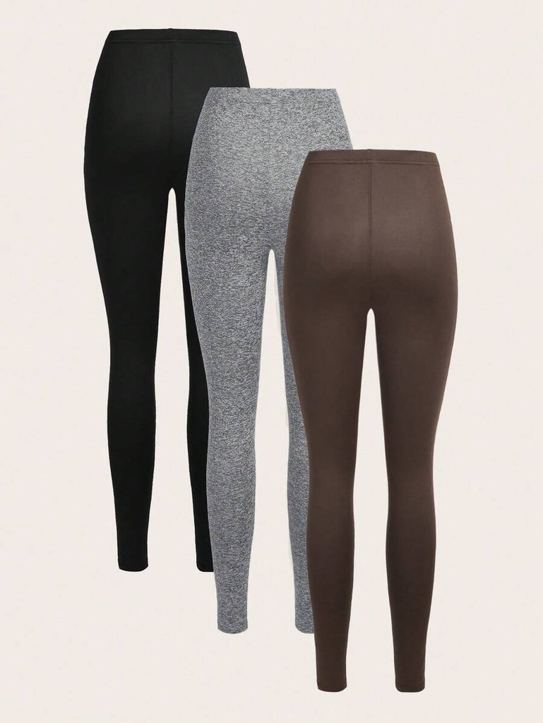 Women's 3pcs Solid Color Versatile Slim Fit Leggings
