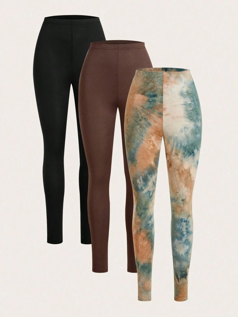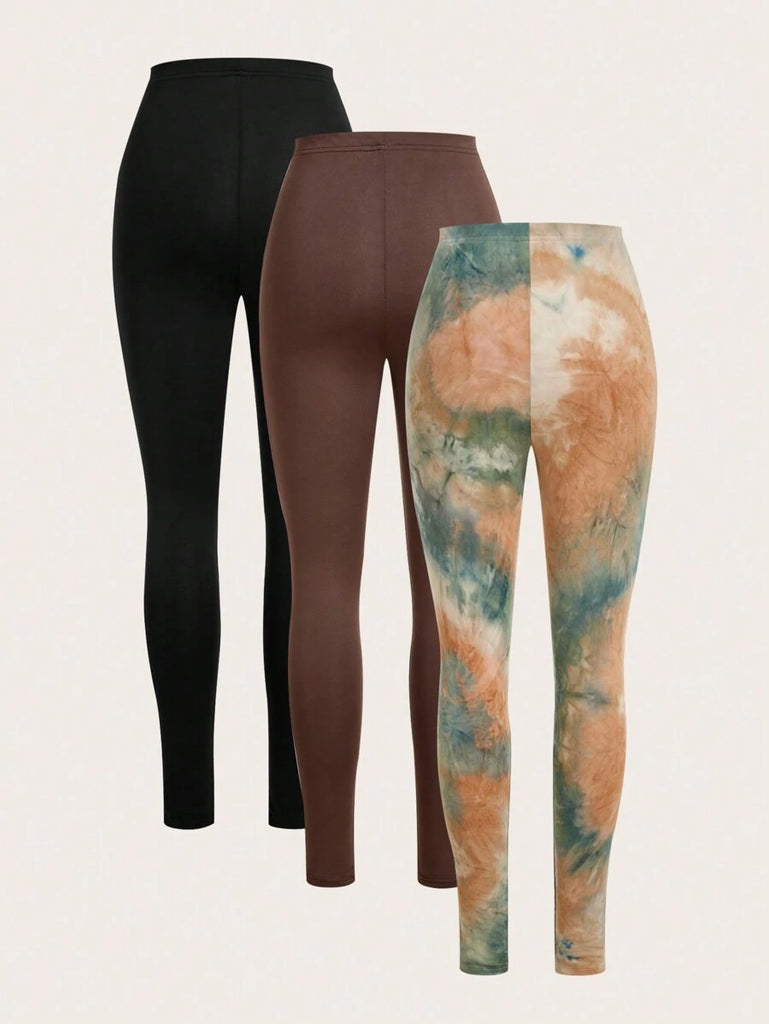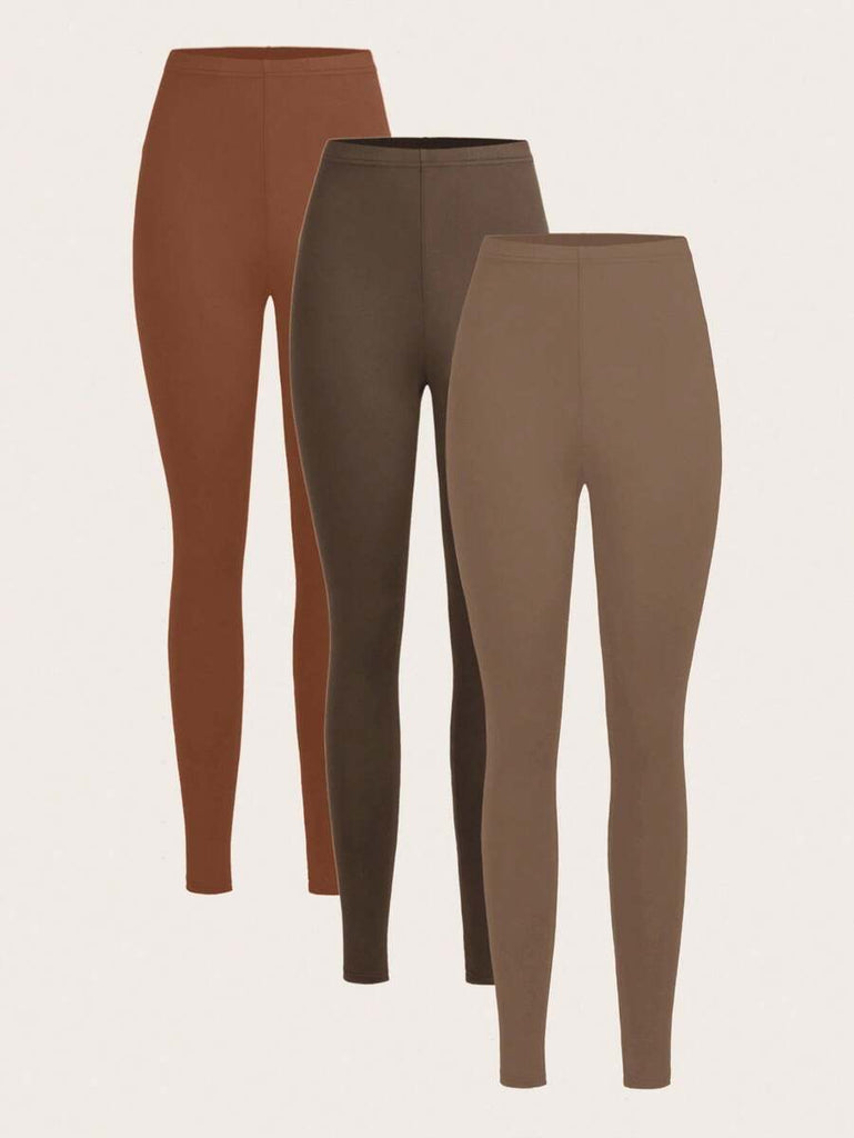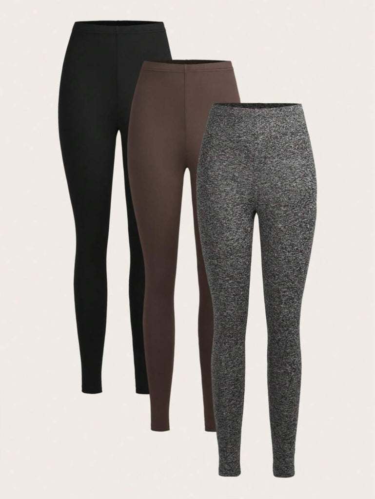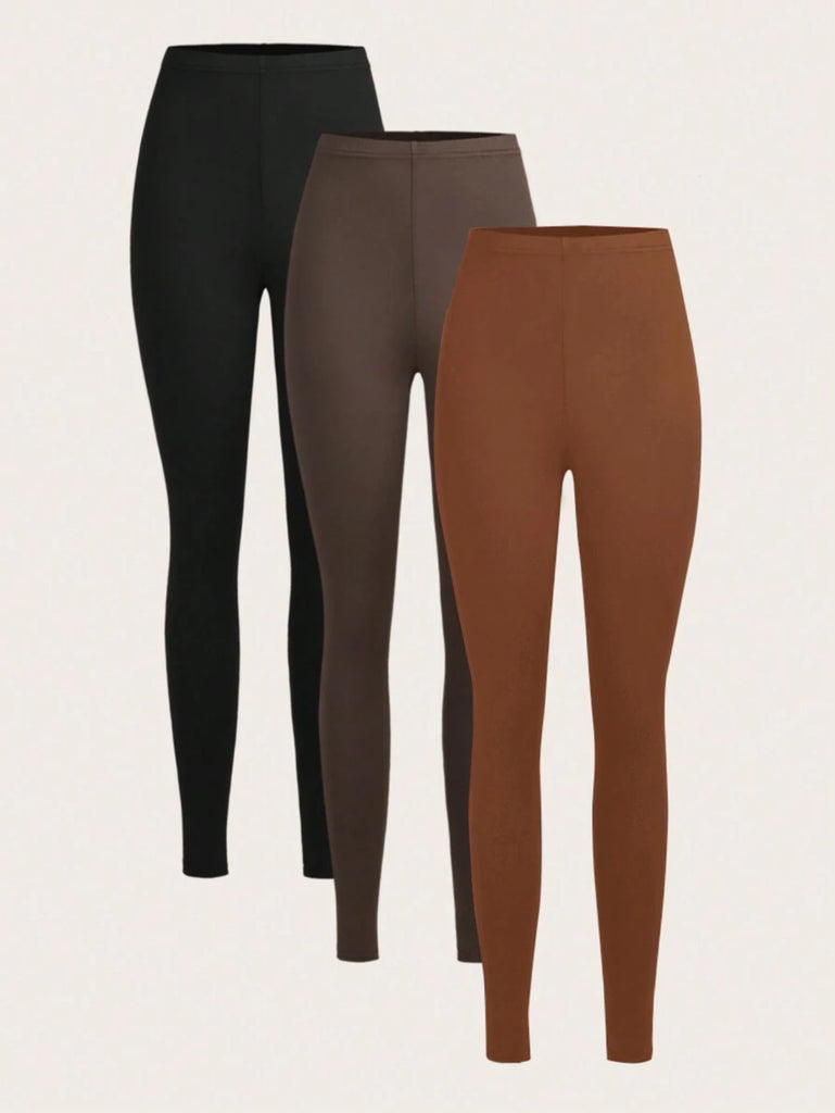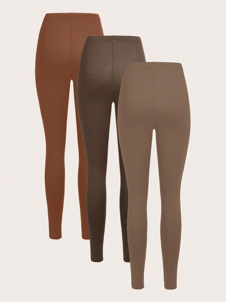 Women's 3pcs Solid Color Versatile Slim Fit Leggings