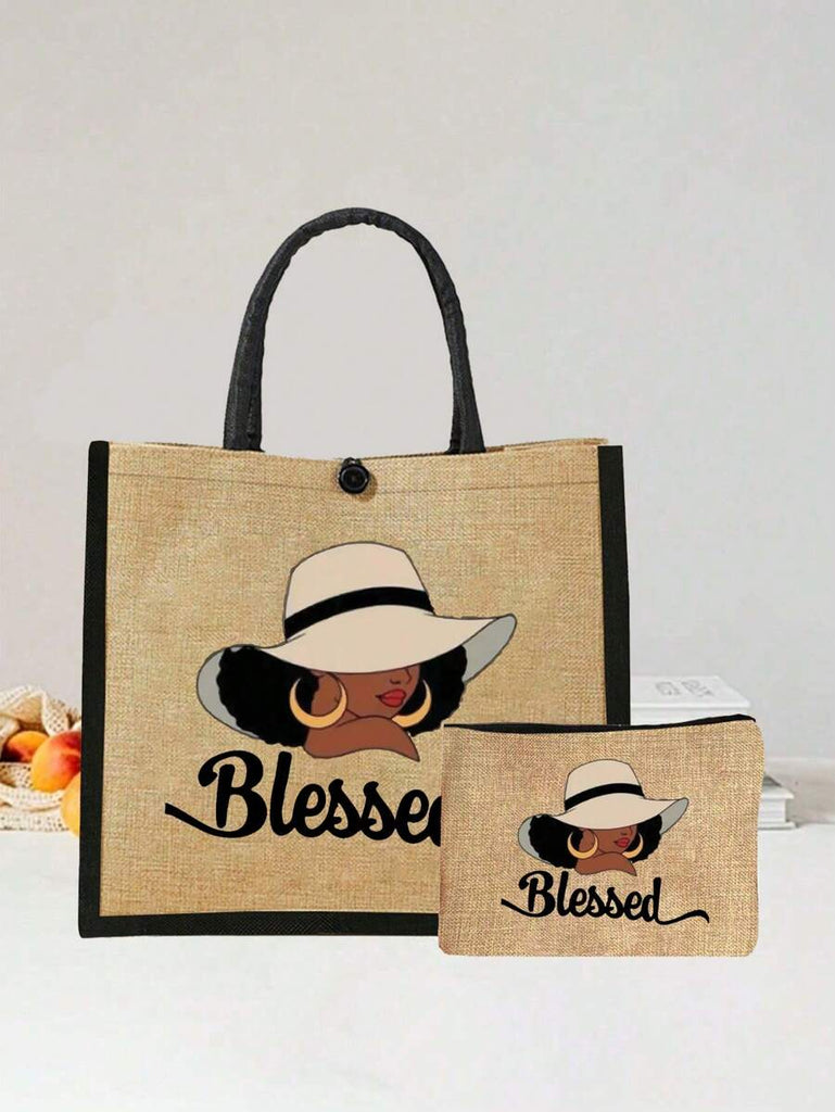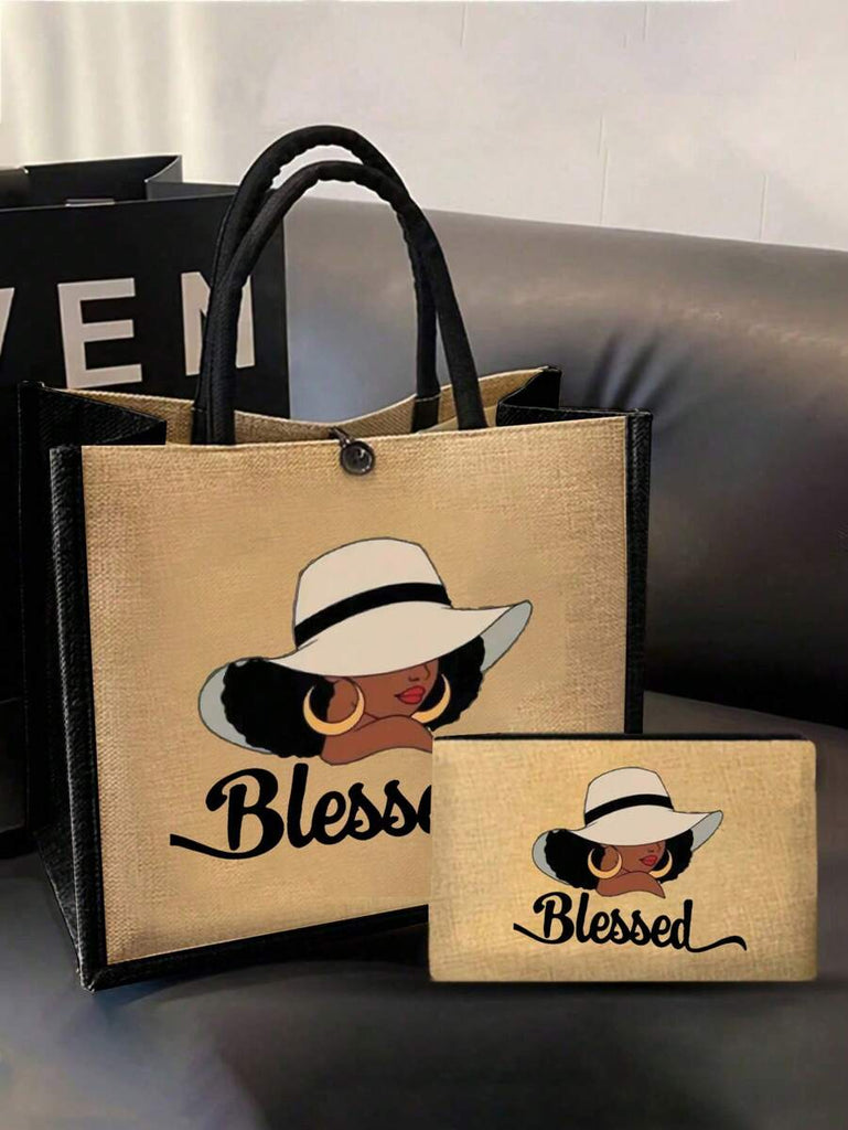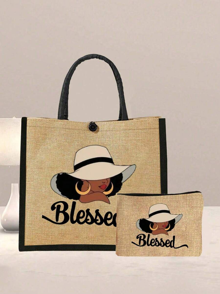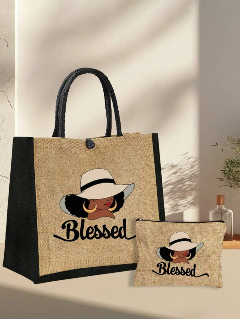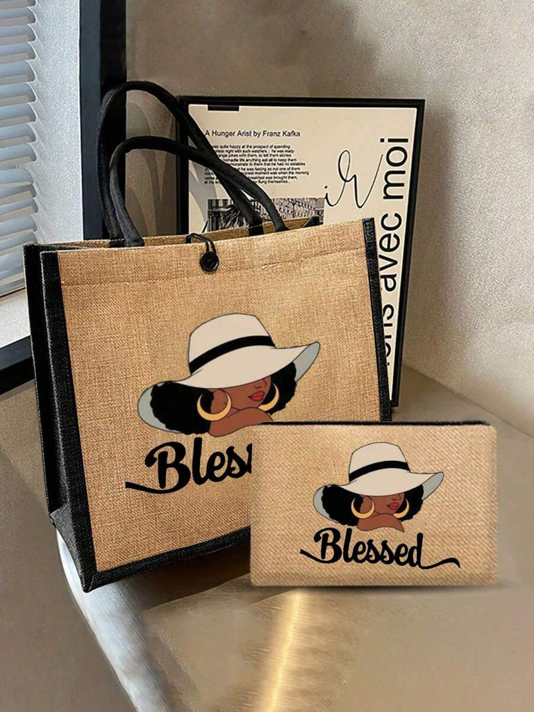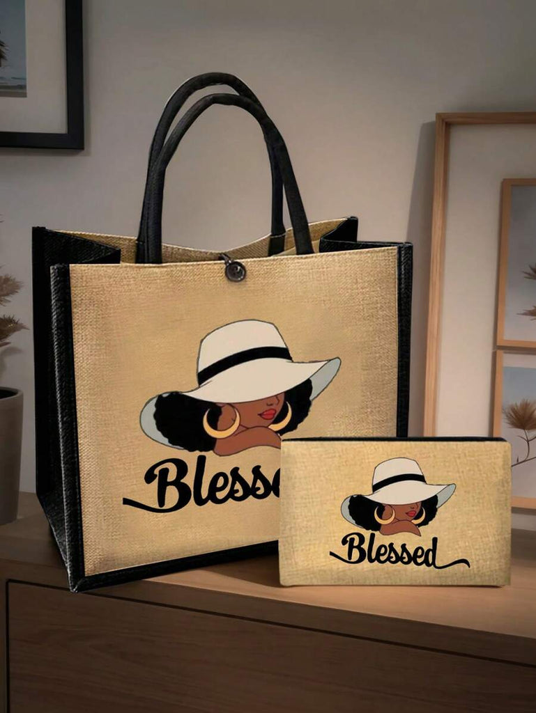 Lightweight Tote & Matching Makeup Bag - Water-Resistant, Easy-Clean Fabric With Multiple Pockets For Shopping, Travel, Beach,Teacher'S Thank You Gift, Women'S Linen Large Capacity Handbag., Best Teacher Appreciation Gift, Best Teacher Gift