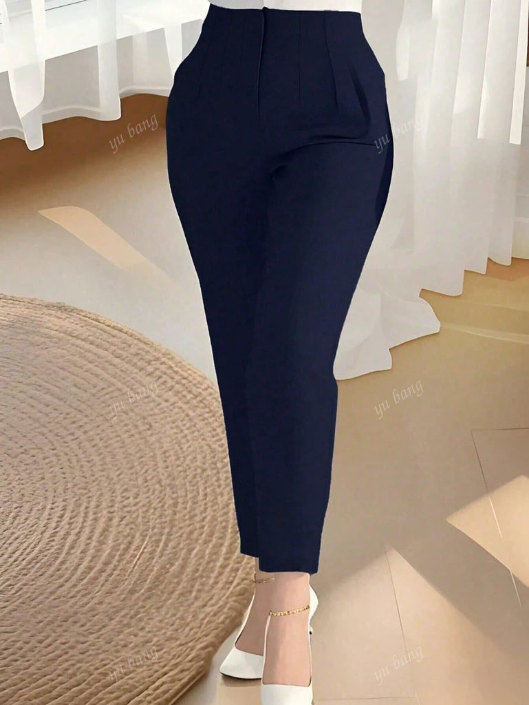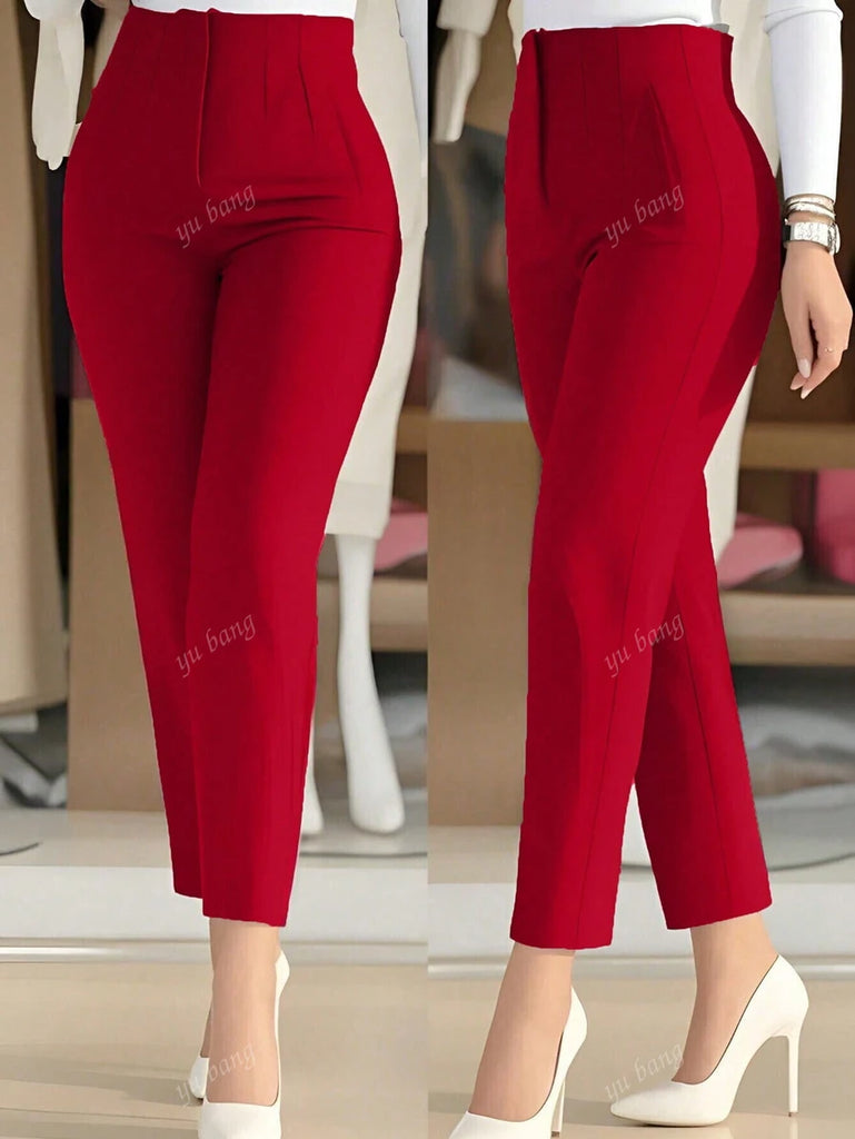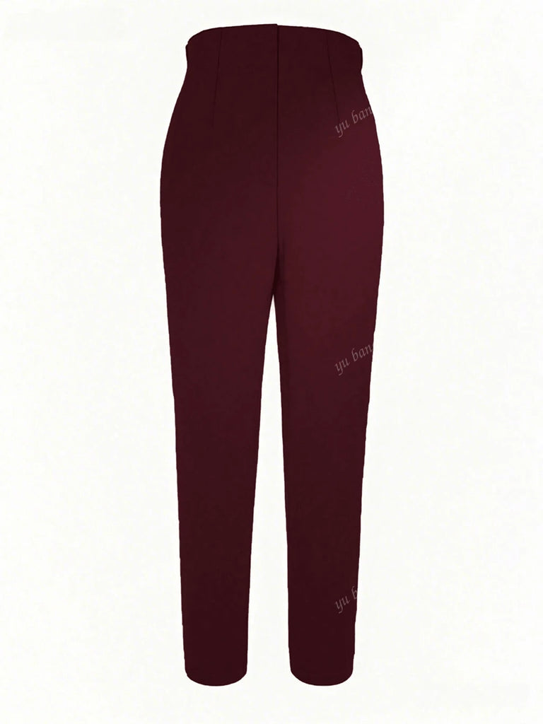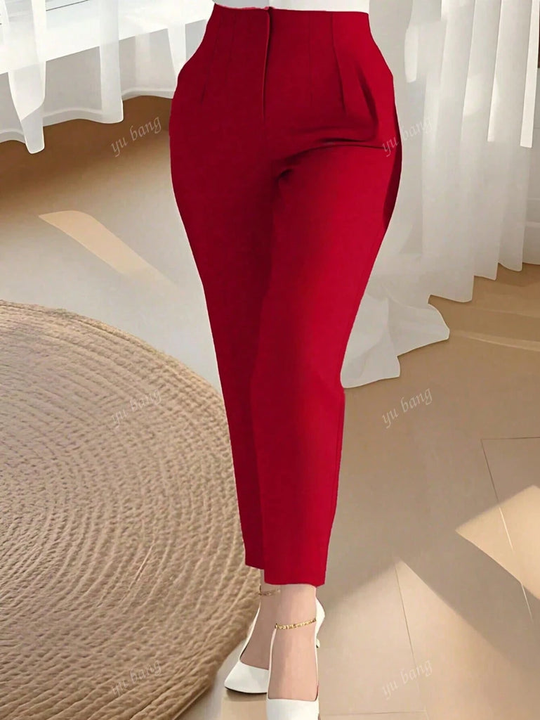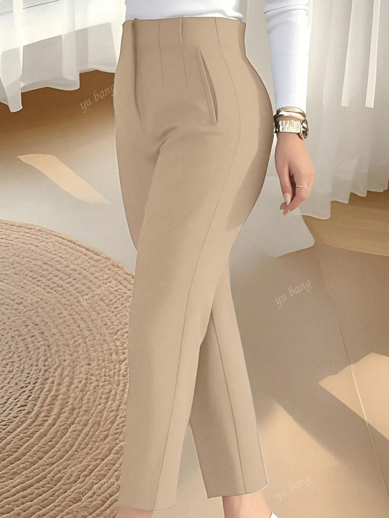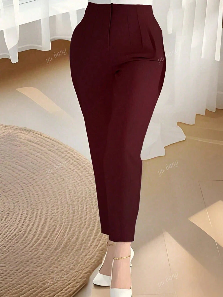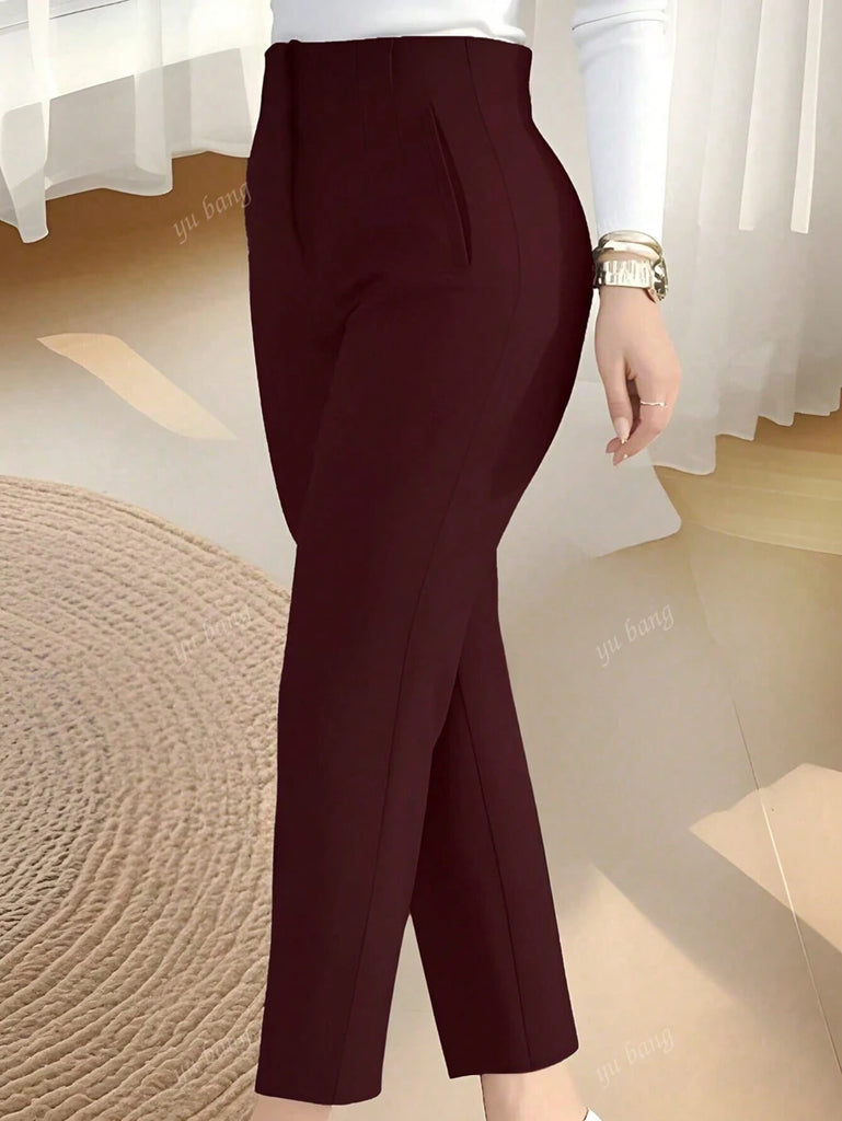 Casual Solid Color Waist Cinching Slim Fit Cropped Work Pants