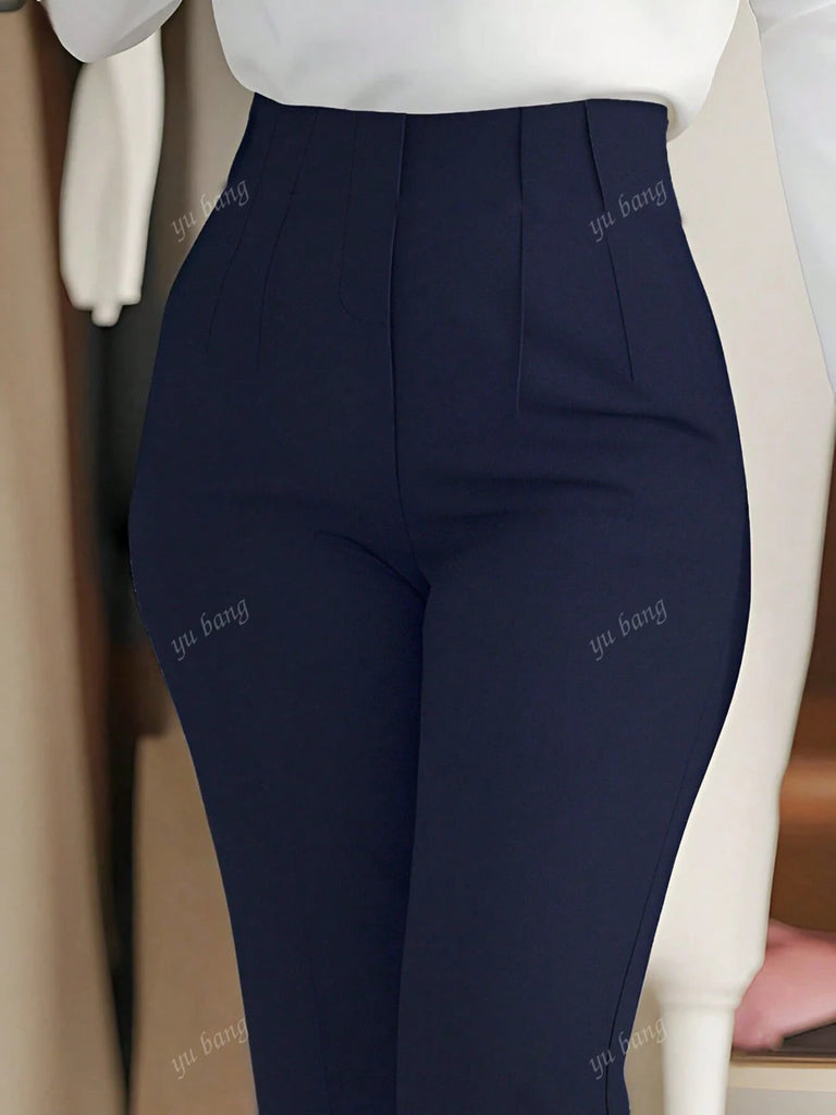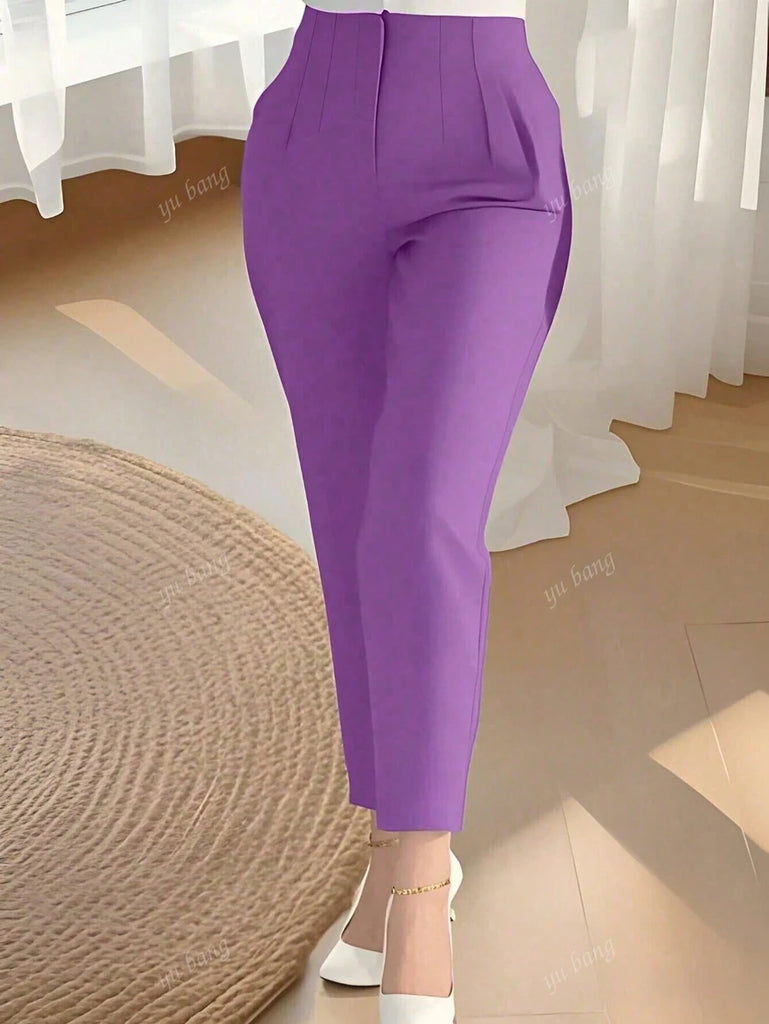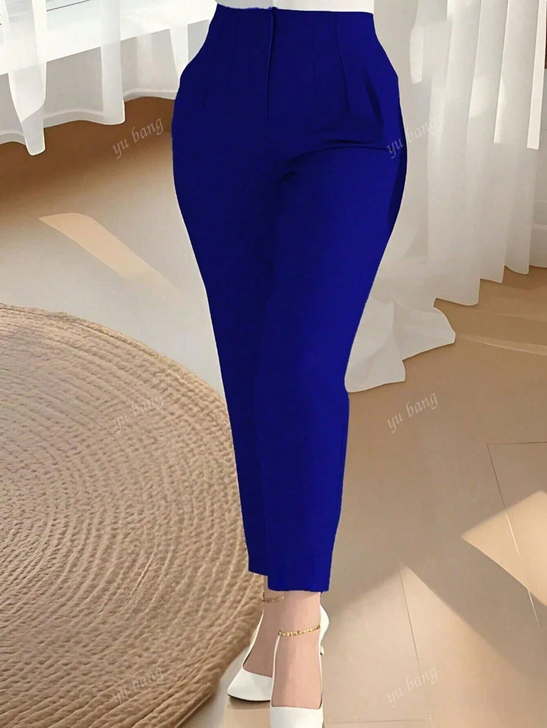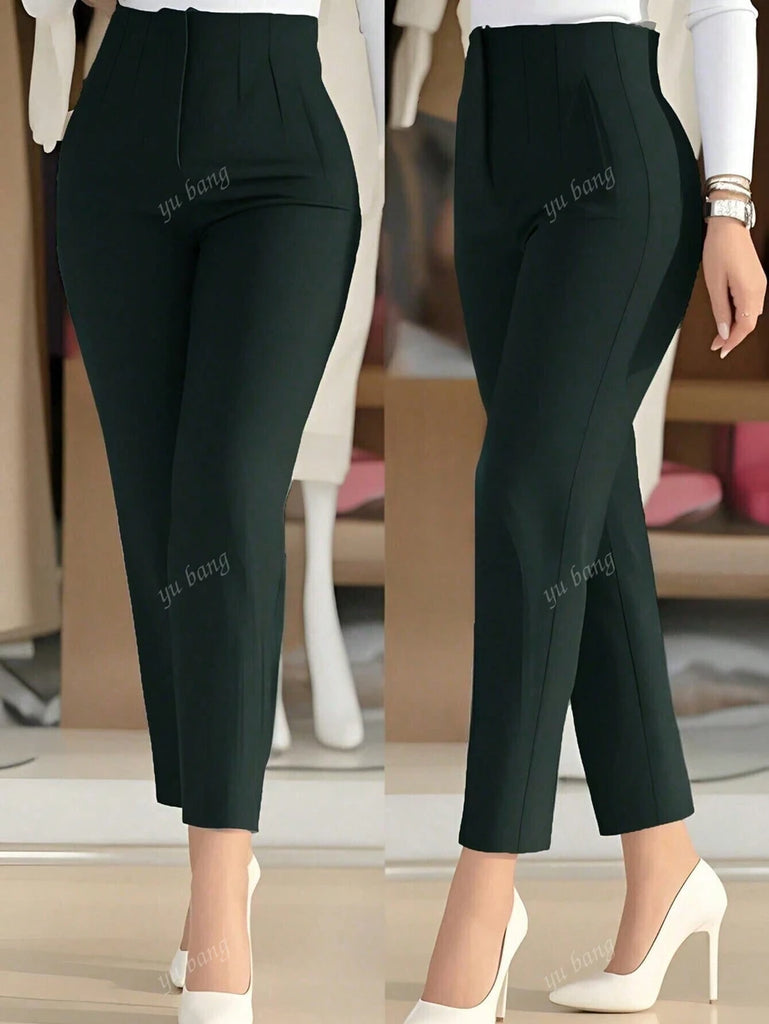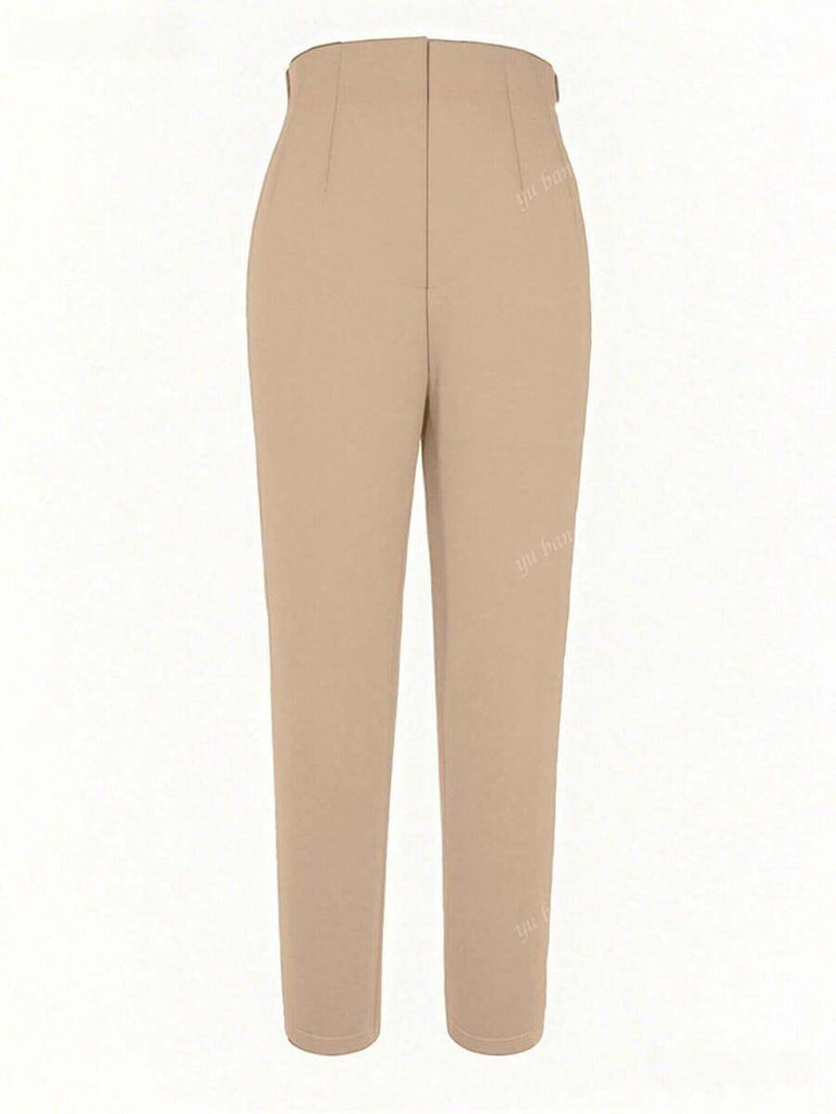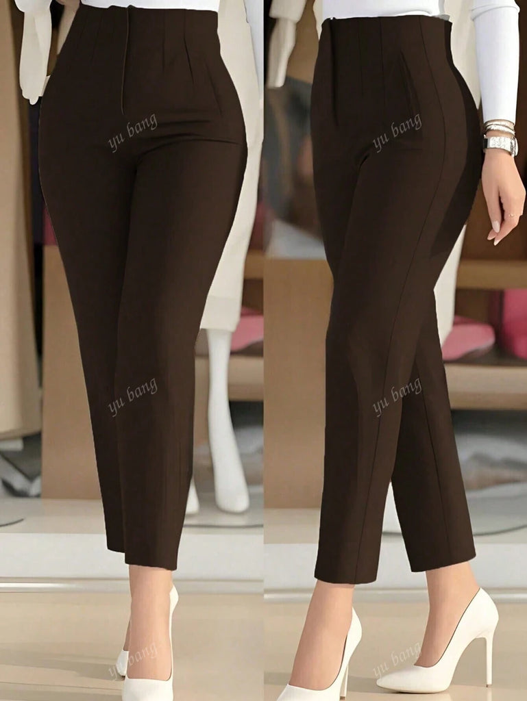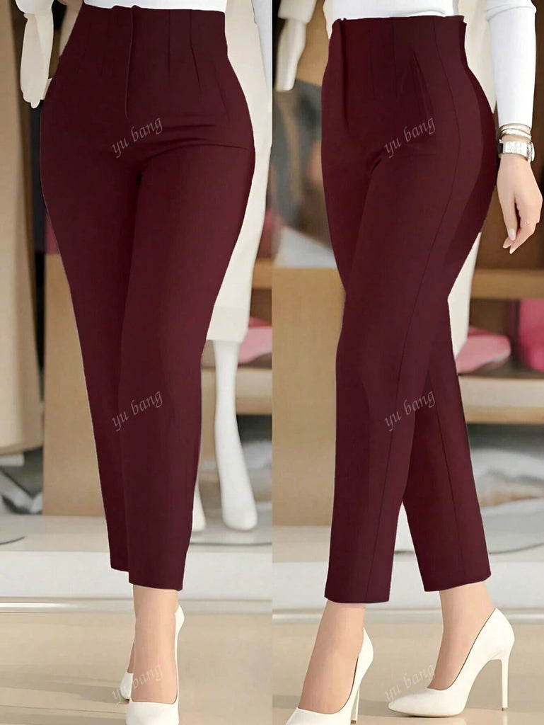 Casual Solid Color Waist Cinching Slim Fit Cropped Work Pants