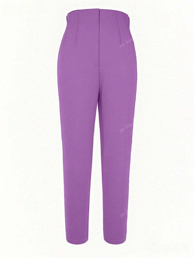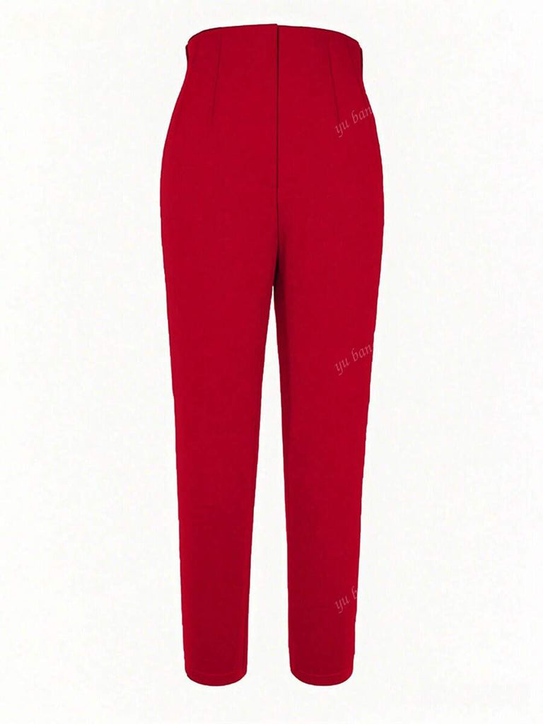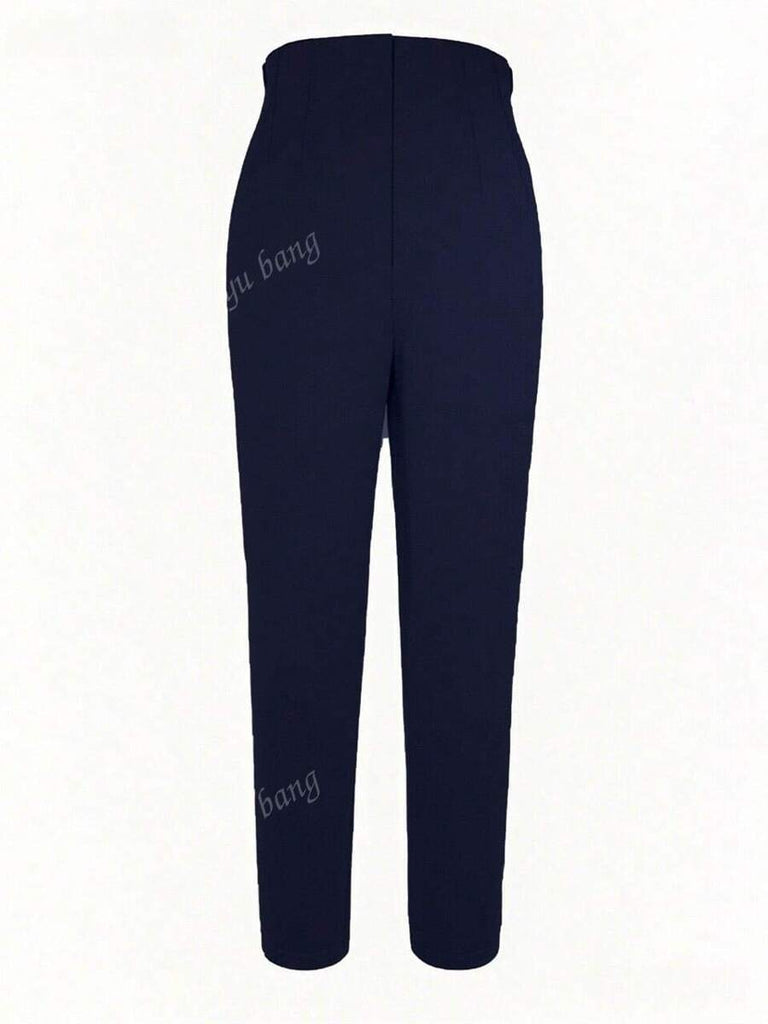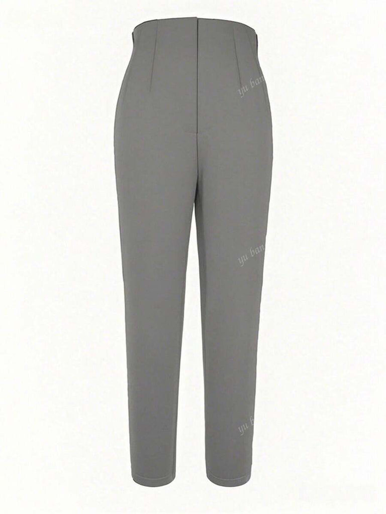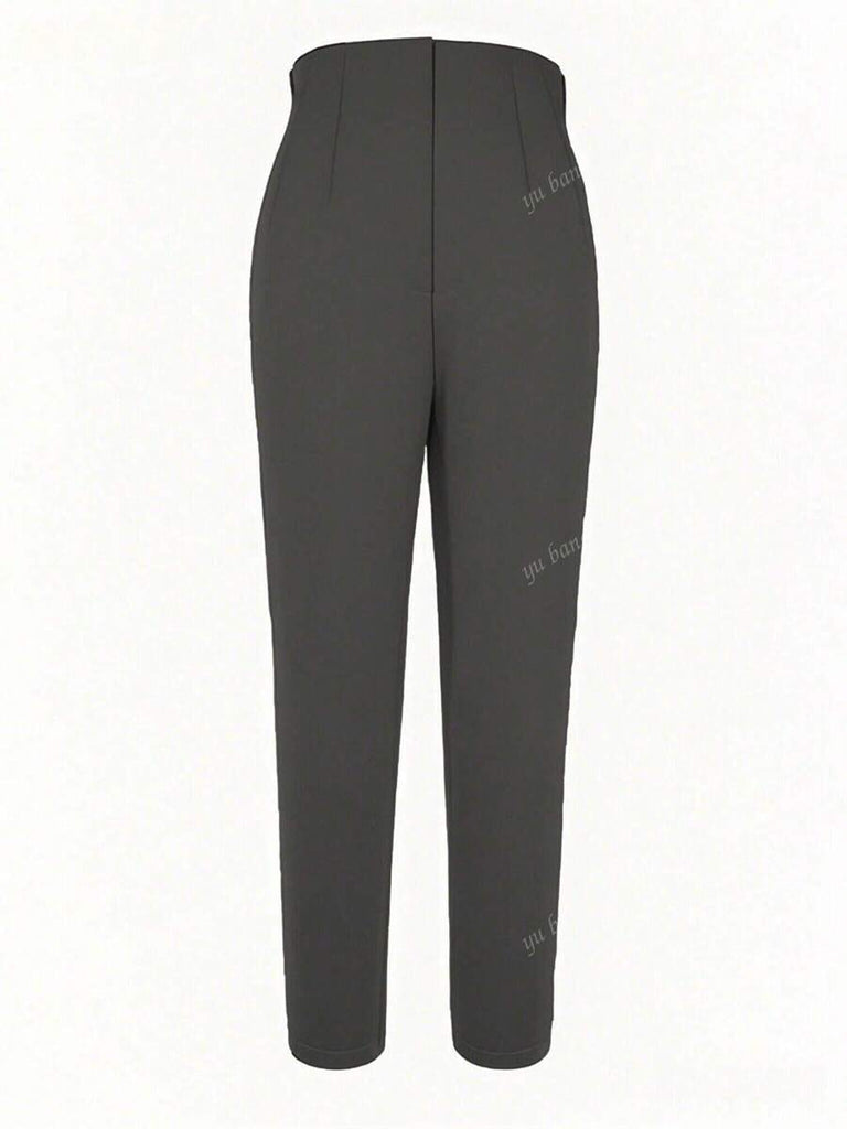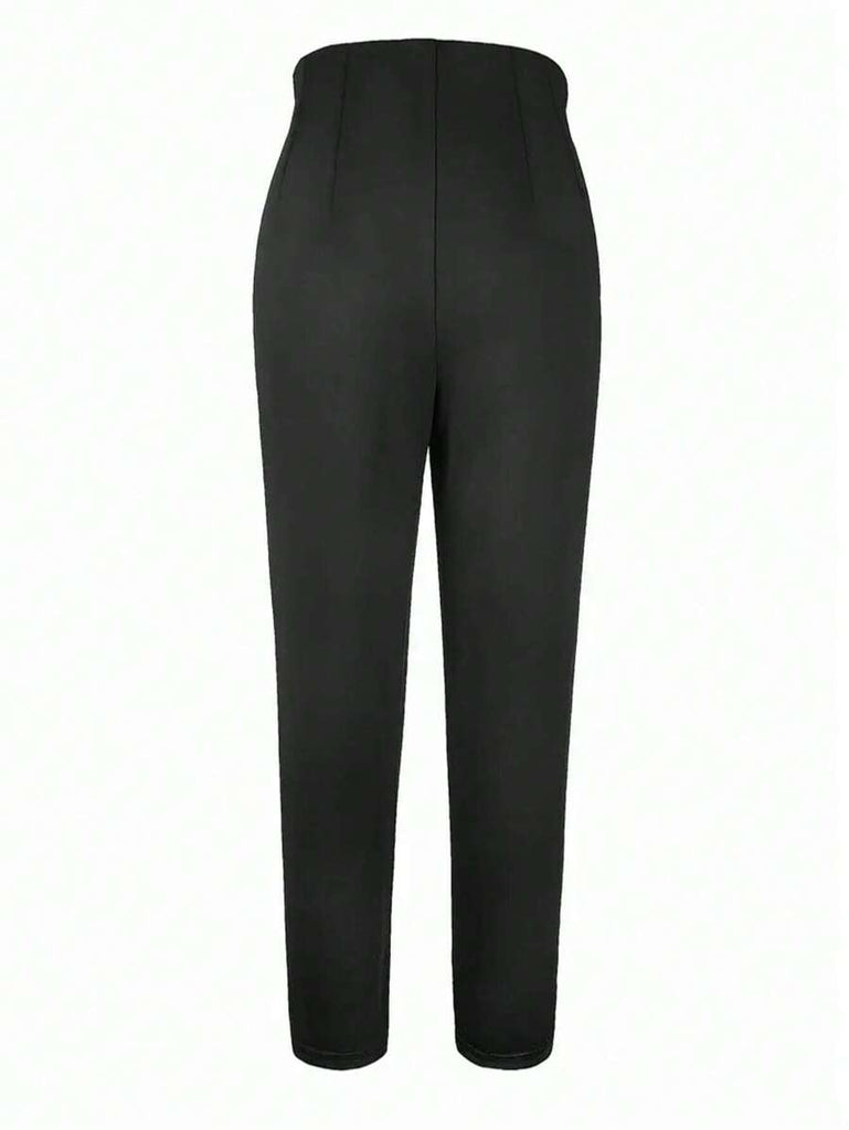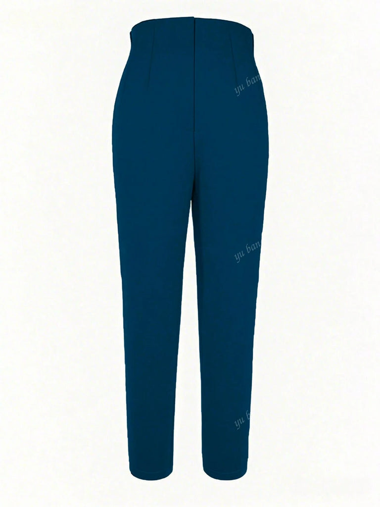 Casual Solid Color Waist Cinching Slim Fit Cropped Work Pants