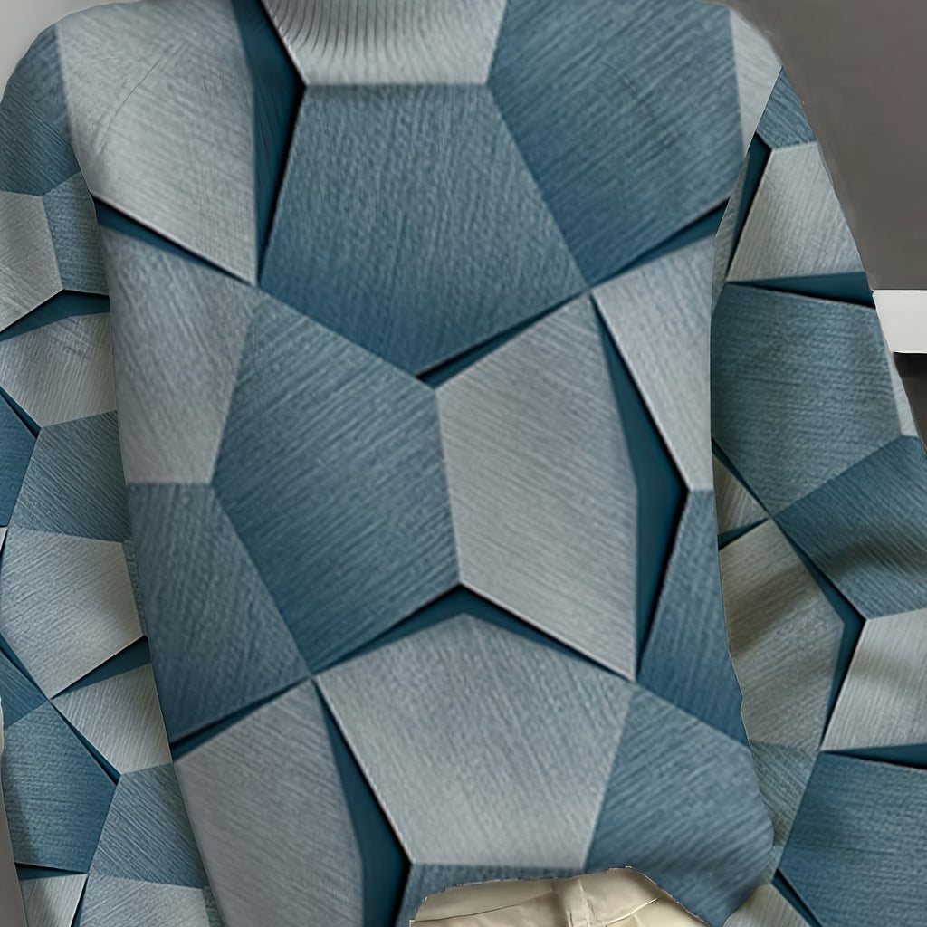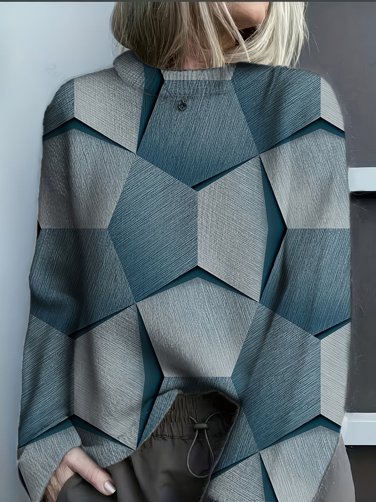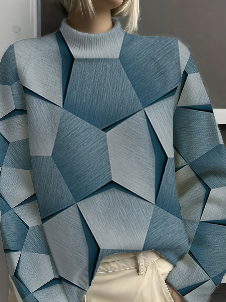 Circle Circle Women's 3D Print High Neck Sweater - Thick Full-Print Design, Unique Patterns, Versatile for All Seasons from Casual to Formal Wear, 3-D Layered Look Trendy Top with Durable Material Must Have, Cropped Sweaters for Women, Colourfull Loose S