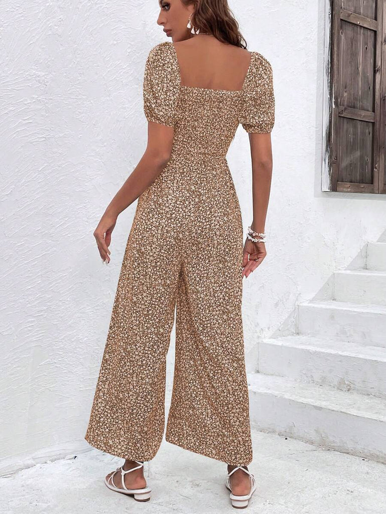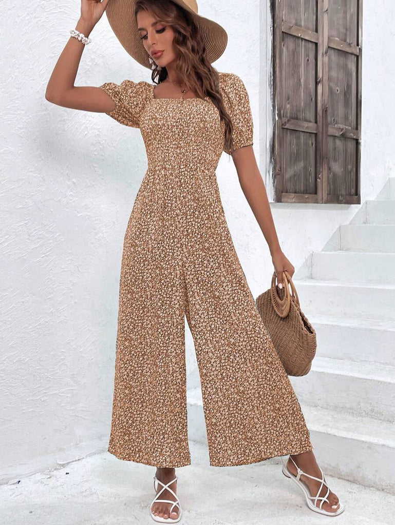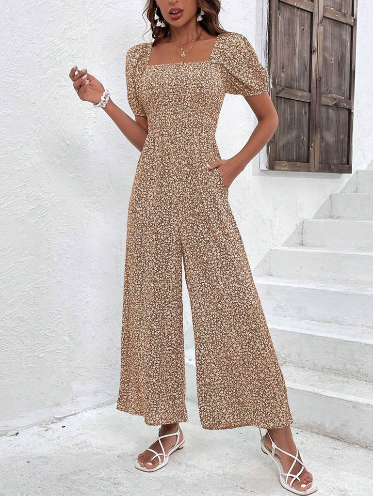 Clasi Women's Jumpsuit With Short Sleeves, Square Neck, Minimalist And Fashionable Design, Suitable For Summer