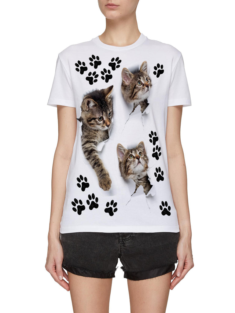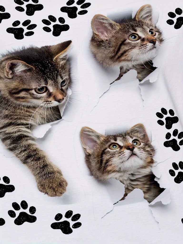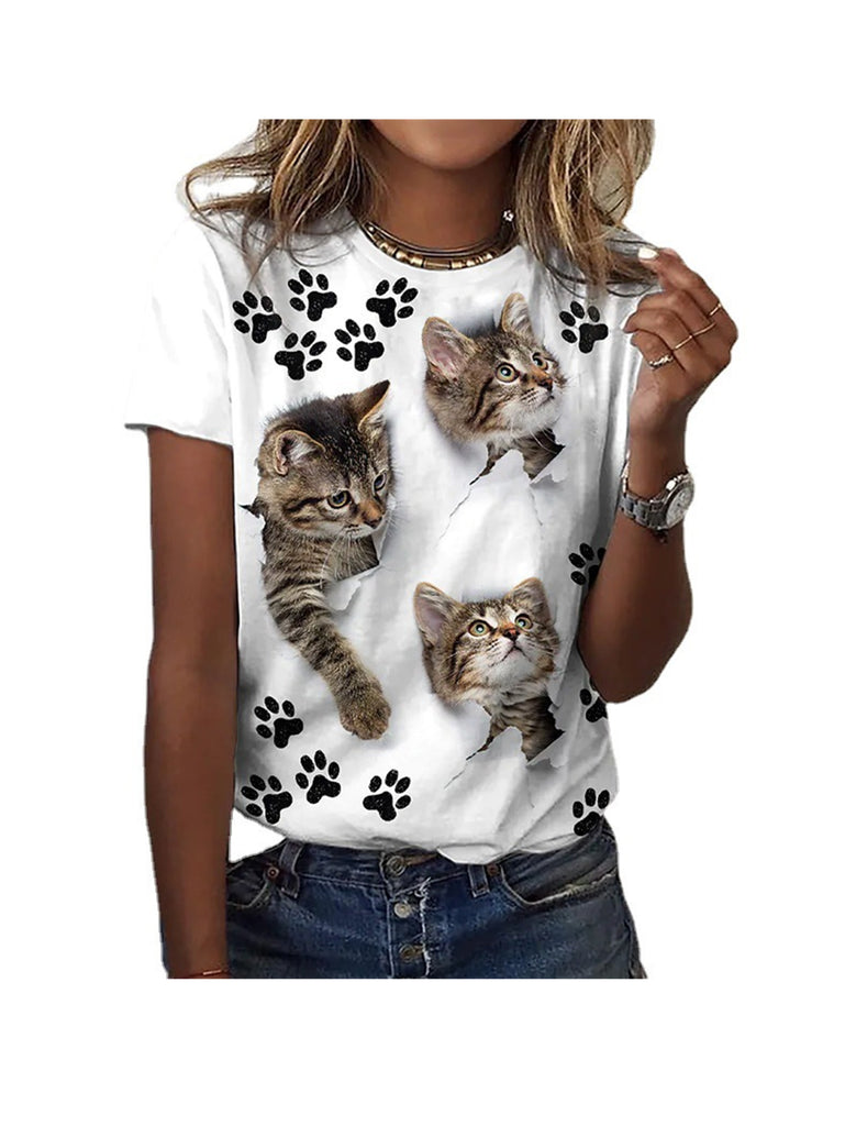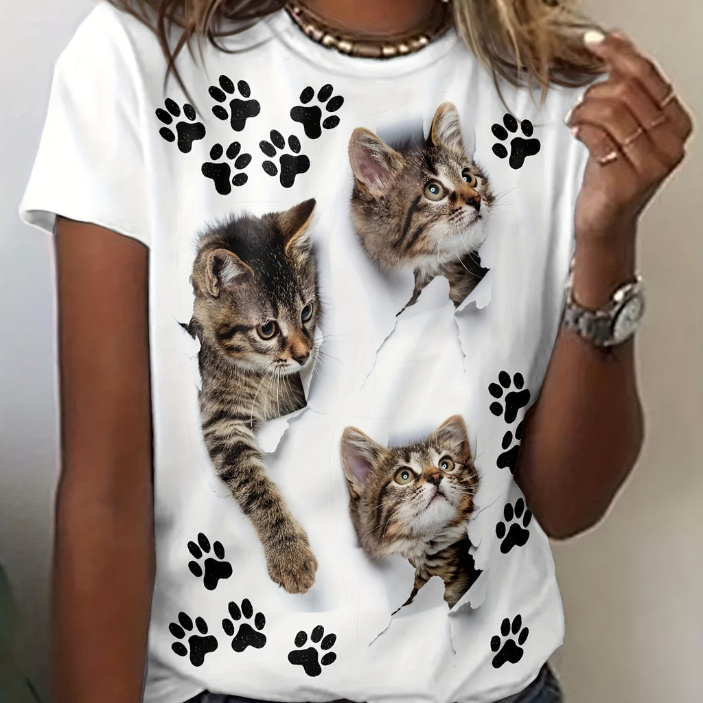 Cute Cat Paw Print T-Shirt, Casual Crew Neck Short Sleeve T-Shirt For Spring & Summer, Women's Clothing